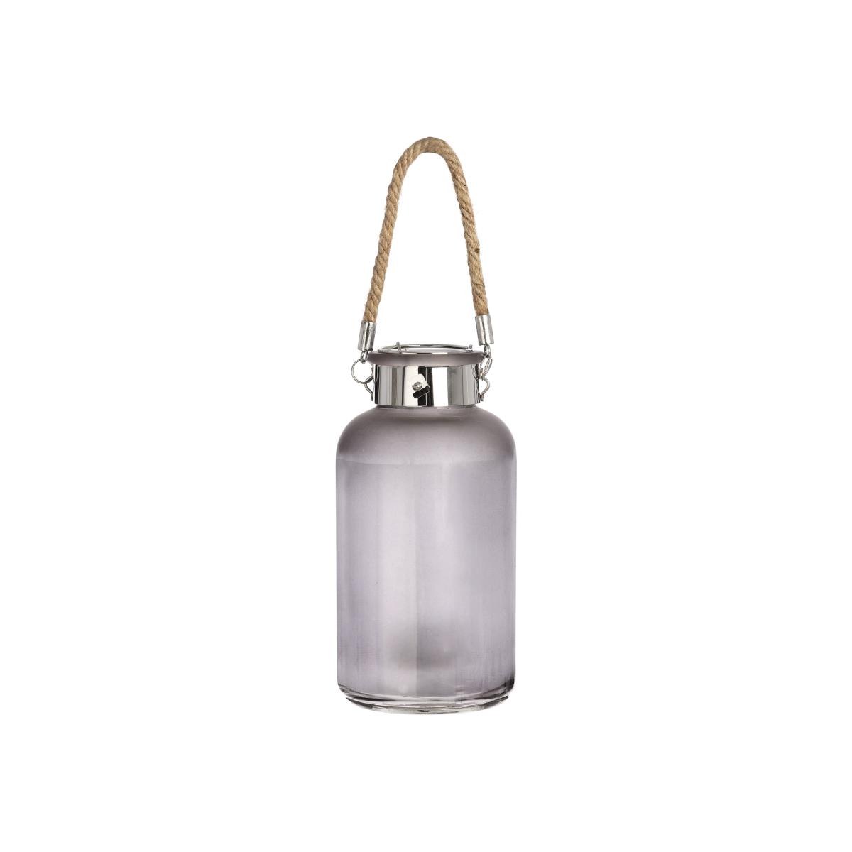 Stylish Decor Frosted Glass Lantern with Rope Detail - Grey
