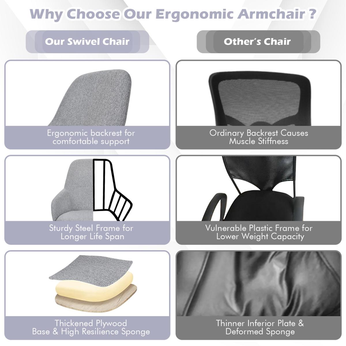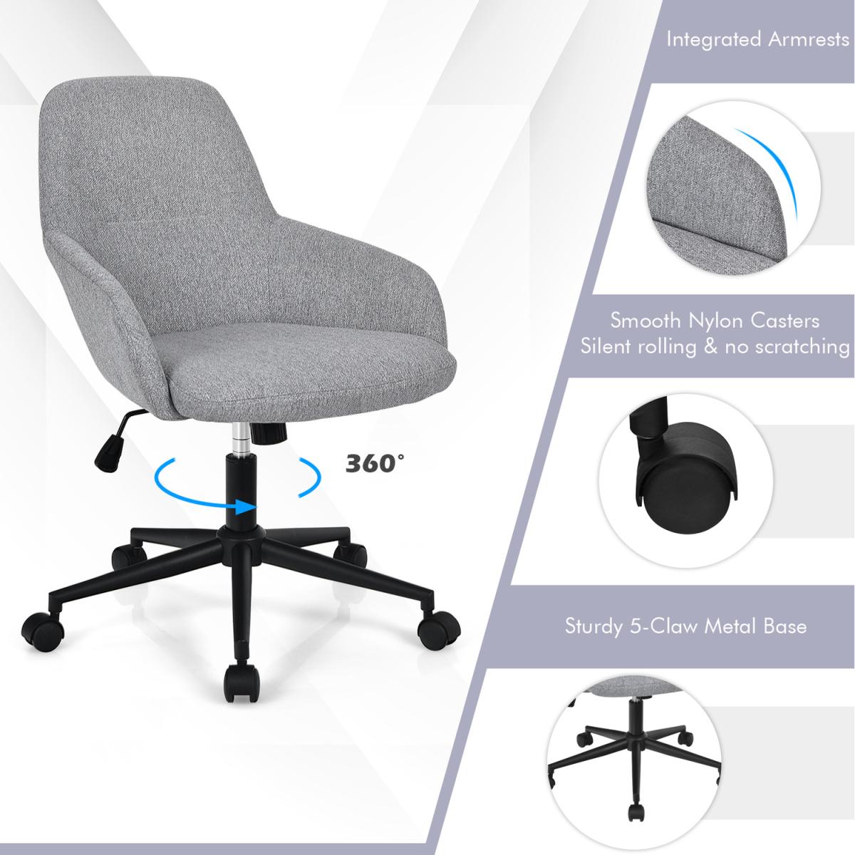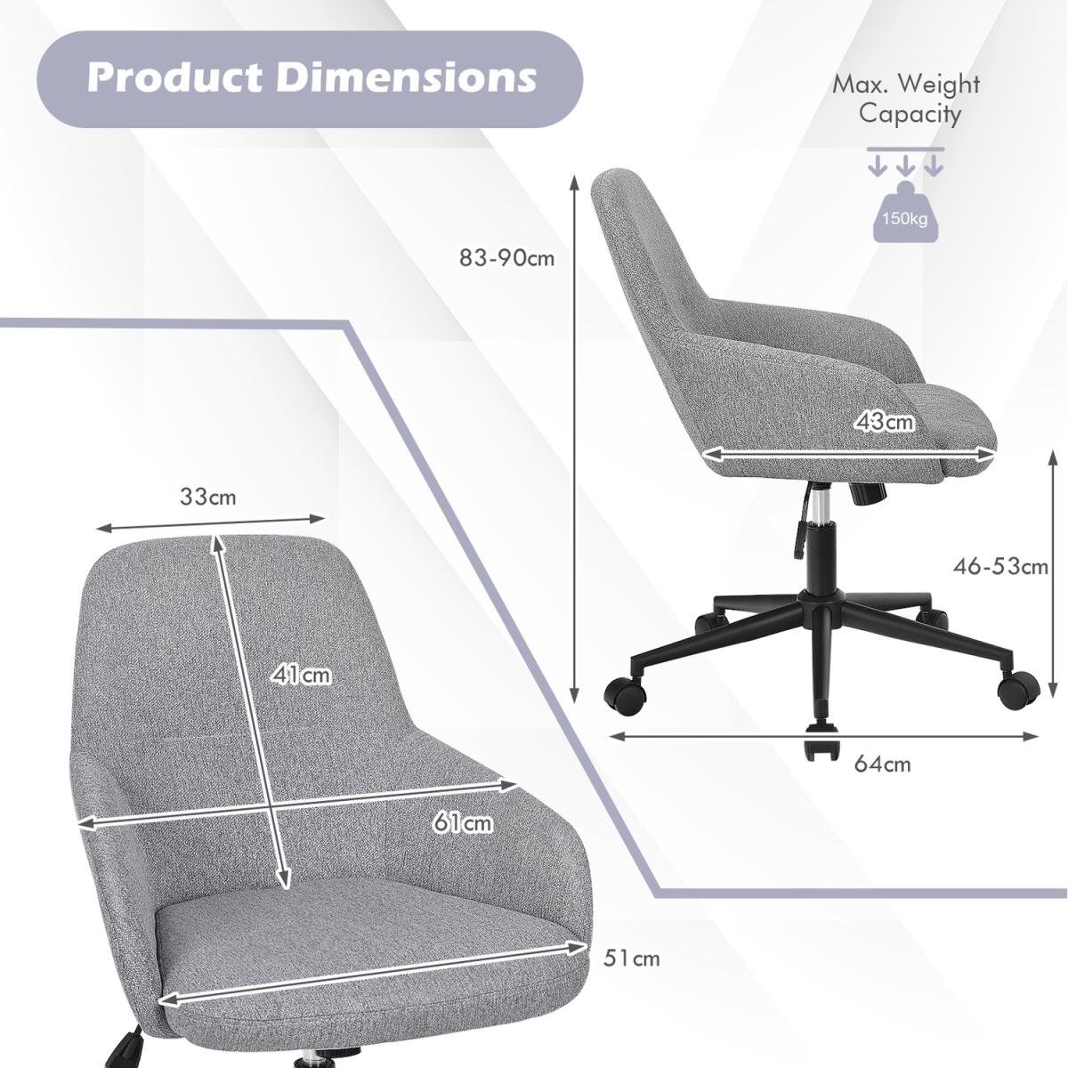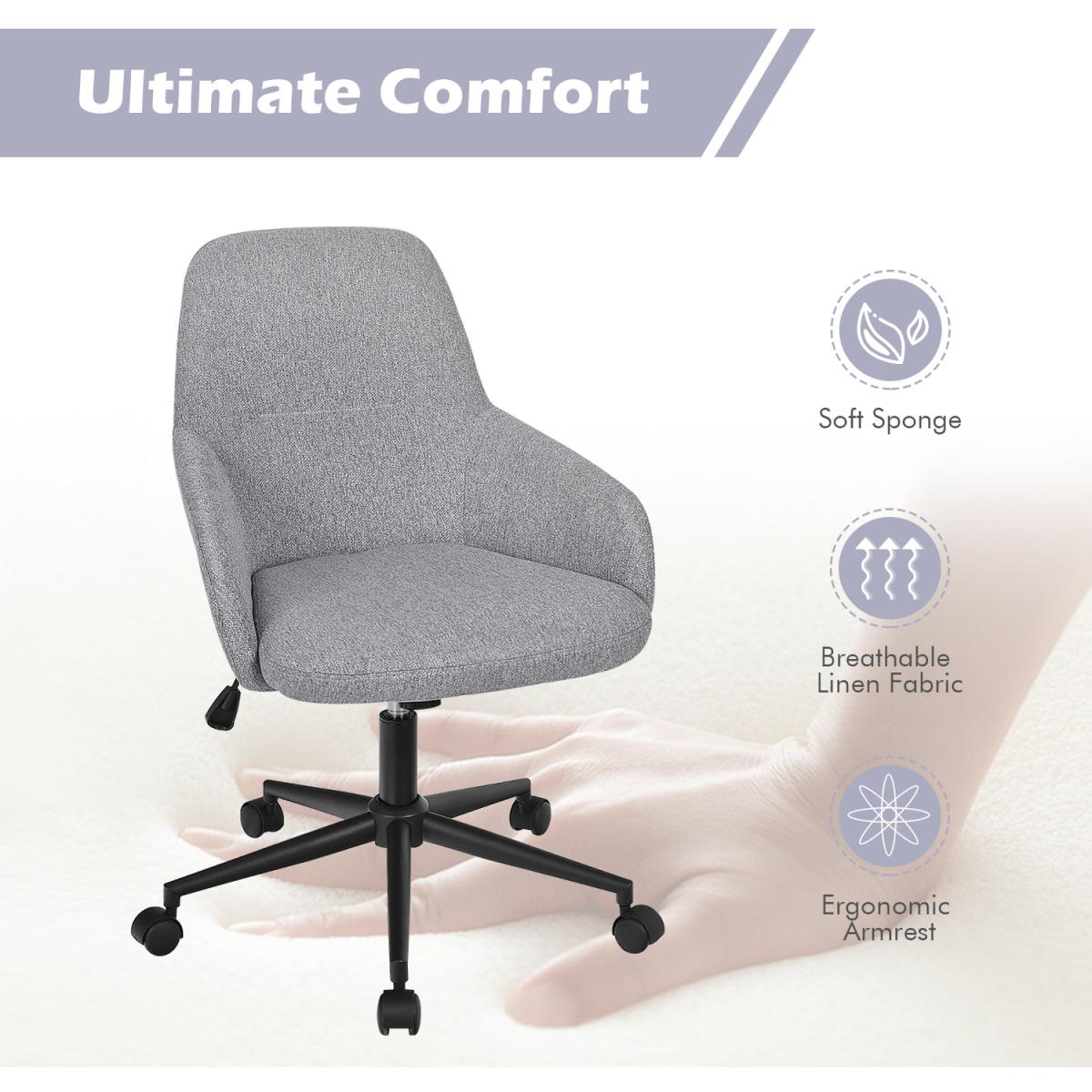 Still looking for a stylish and versatile leisure chair for your home and office? Our chair will suit you perfectly. It combines modern style with ergonomic design, which is suitable for working, reading, make up, etc. The reclining backrest perfectly conforms to your body curve while the seat height can be adjusted easily based on your needs and preference. Moreover, soft sponge padded seat and breathable linen fabric help you alleviate back fatigue after sedentary working. The smooth rolling wheels make the movement quieter and easier from one place to another. All in all, this multifunctional office chair is an ideal choice for you.