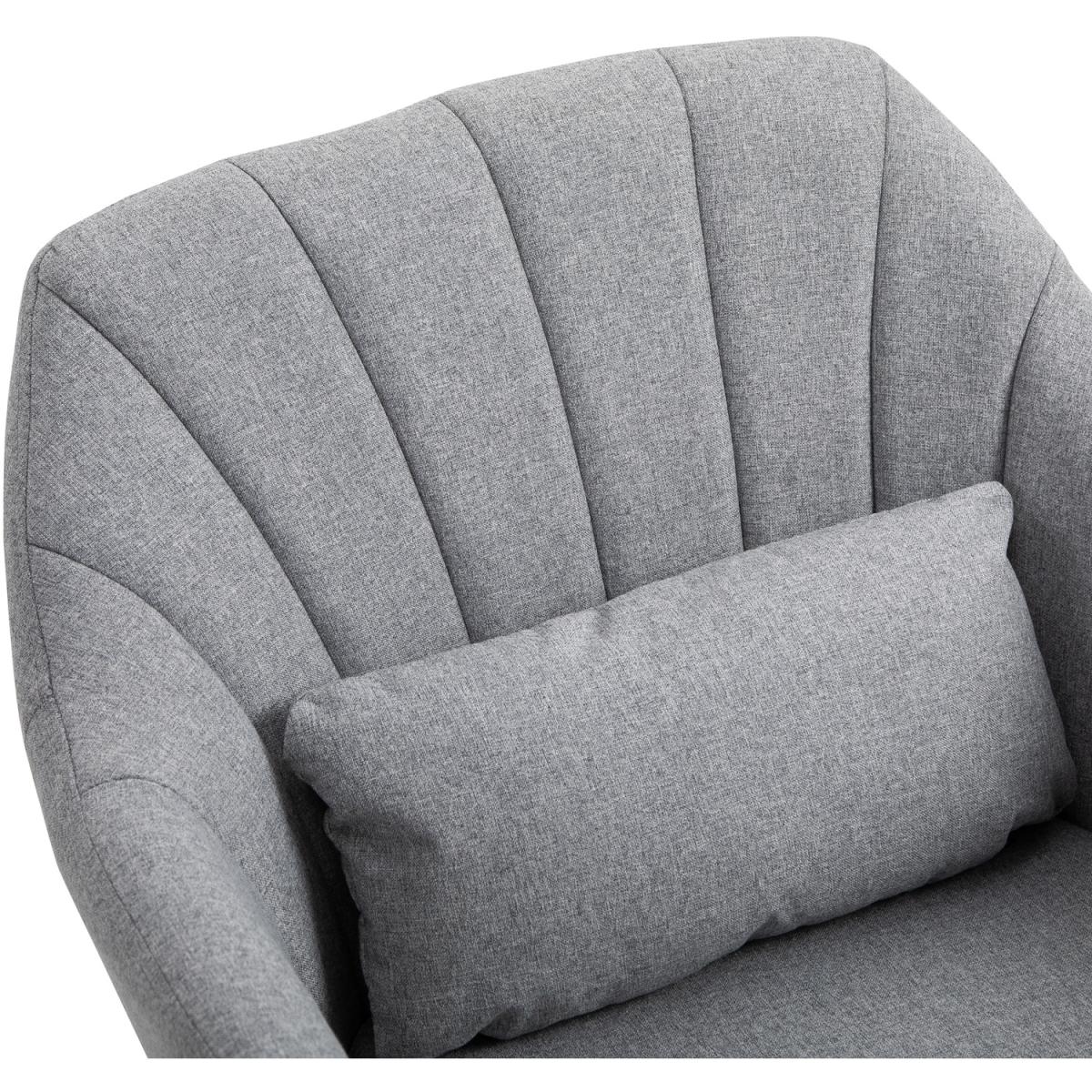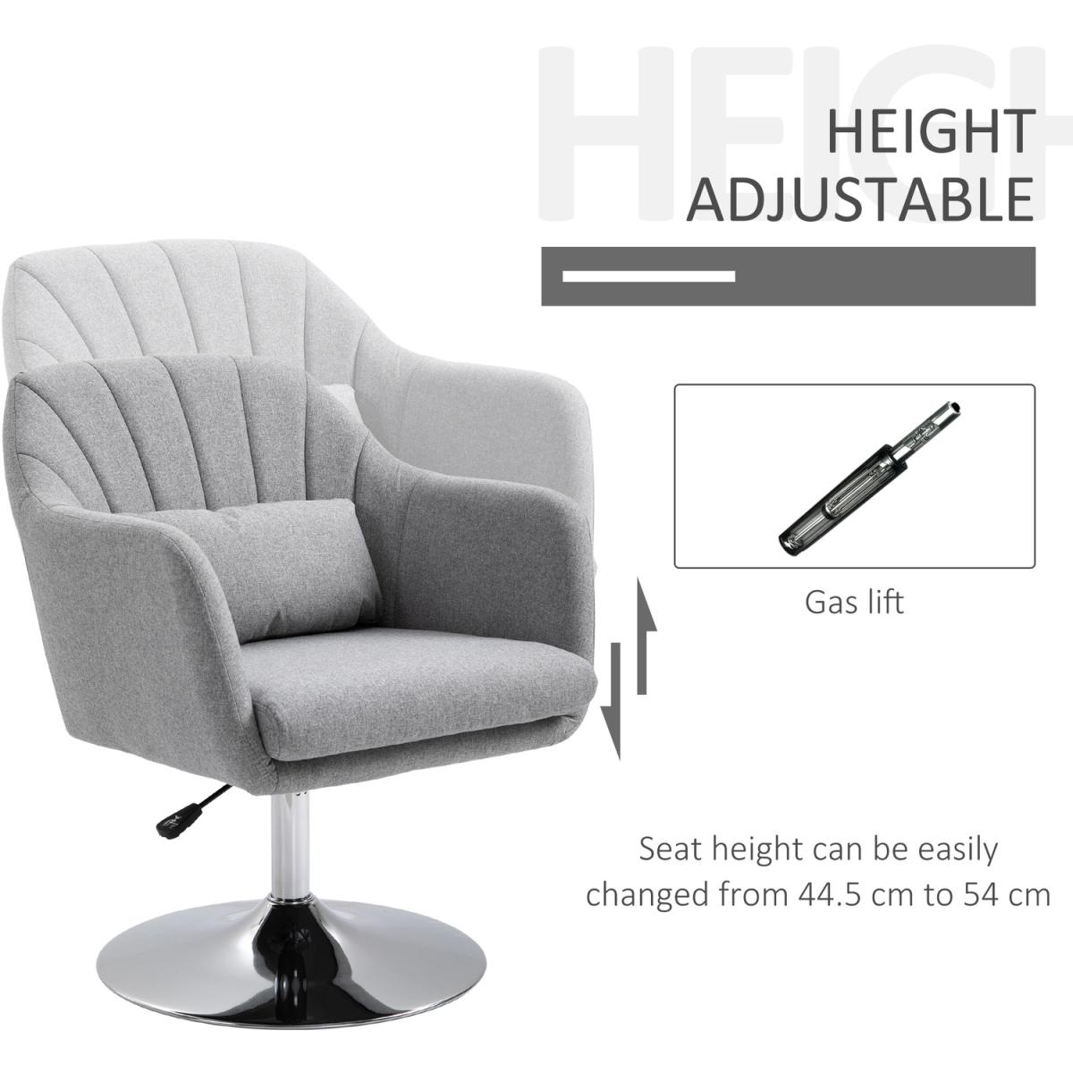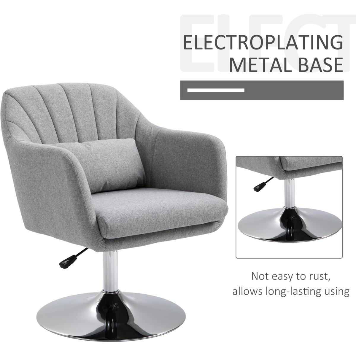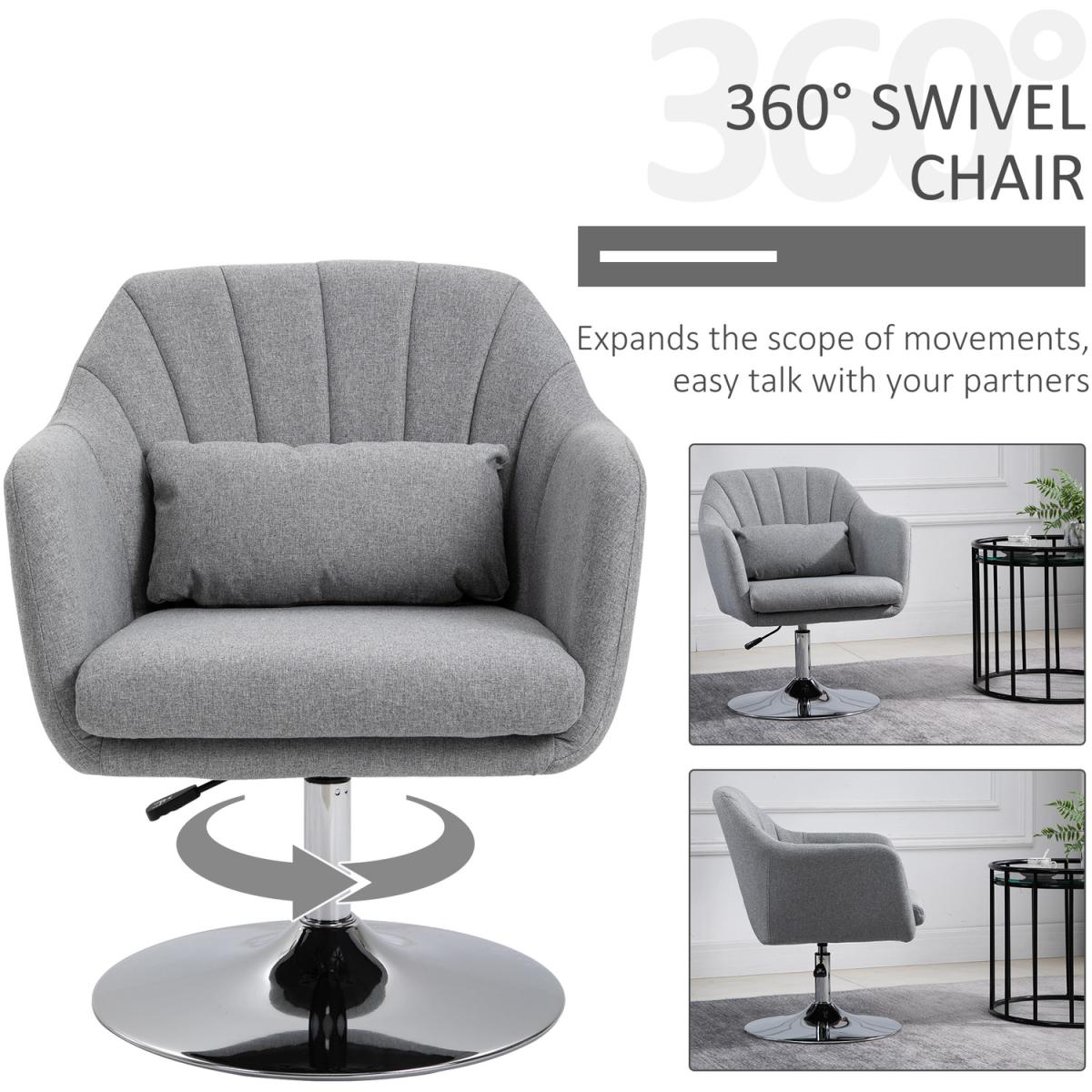 Make those all-important relaxation times at home better than ever before, thanks to this on-trend swivel chair from HOMCOM. The seat is formed into a retro tub design, which provides plenty of room to sit, with a high back and armrests to offer support whilst in use. The whole frame is made from steel, making it very strong and durable for prolonged everyday use, with the large round base ensuring the seat keeps balanced and upright. Filled with a sponge for comfort, it is wrapped in linen for a smooth feel and easy maintenance and comes with a seat cushion and small back cushion to finish.