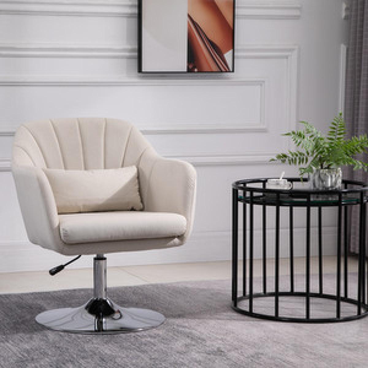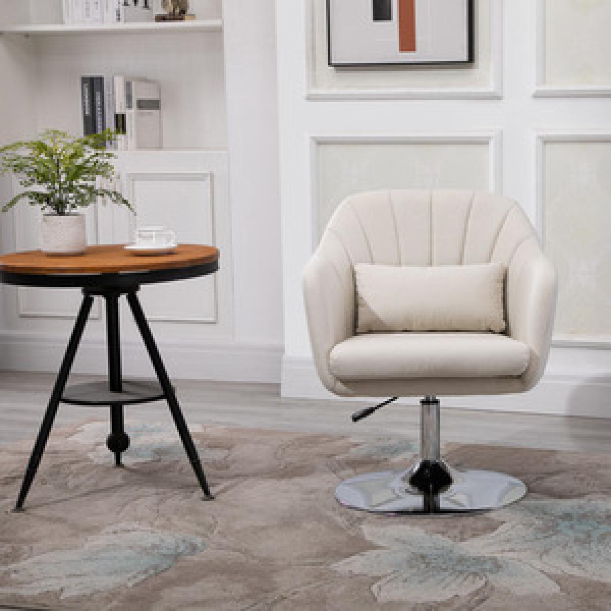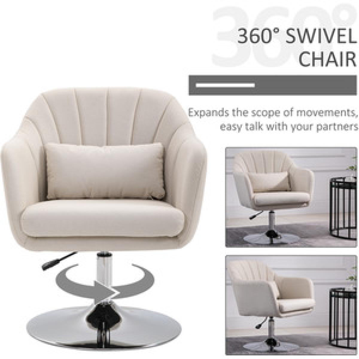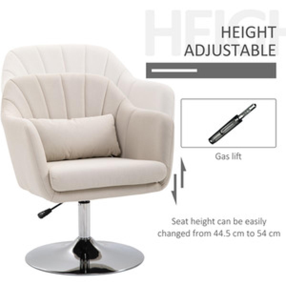 Make those all-important relaxation times at home better than ever before, thanks to this on-trend swivel chair from HOMCOM. The seat is formed into a retro tub design, which provides plenty of room to sit, with a high back and armrests to offer support whilst in use. The whole frame is made from steel, making it very strong and durable for prolonged everyday use, with the large round base ensuring the seat keeps balanced and upright. Filled with a sponge for comfort, it is wrapped in linen for a smooth feel and easy maintenance and comes with a seat cushion and small back cushion to finish.