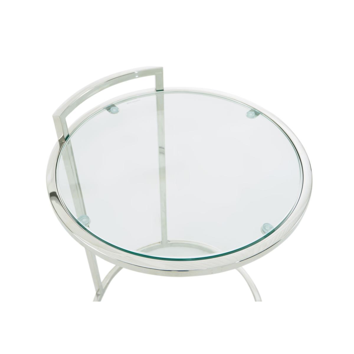 Simply and elegantly designed glass and steel lamp table. Light enough to move with ease. Stylish in both classic and contemporary interiors. Sometimes the simplest designs are the most beautiful and the most useful too – and the Stylo lamp table is all of these things. Its circular, clear tempered glass top sits within an elegant polished stainless-steel base, which echoes the shape of the table top perfectly. This seamlessly finished side table is light and easy to move and can slide with ease to sit over most sofa seats, so it’s perfect for those drinks and snacks while you’re socialising or relaxing.
