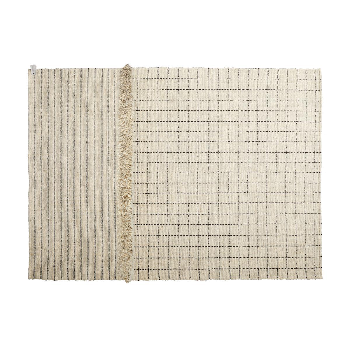 Handicraft in a new context. Handcrafted in Colombia, the Subas rug combines the art of knotting and hand-weaving on a single surface, offering various textures and patterns: relief, check, stripe effects. This rug is made with 100% natural sheep’s wool. The master weaver who heads the team from the small workshop in the Suba district (a region of Bogota in Colombia) comes from the Boyaca province. For generations, this family has used sheep's wool and combined different techniques on a single manual loom, thereby perpetuating traditional ancestral know-how. The nuances of the wool’s colours offer rich, natural patterns. Created by the German designer Sebastian Herkner, the Subas rug combines handcrafted techniques and contemporary geometric shapes for an effect that’s both authentic and modern. The Cabuya rug is part of the Sala project, born from a journey to Colombia by designer Sebastian Herkner. Concerned with bringing originality and authenticity to his creations, he met local craftspeople who have managed to preserve and pass on real expertise and traditional production methods over the centuries. With each rug being unique, there may be slight variations in size and colour.