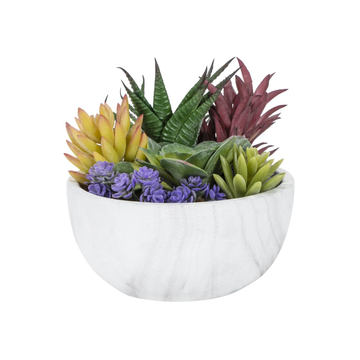 With a vibrant array of artificial plants, this Succulent Garden in Marble Pot is a great way to life and colour your living space. Set in a white marble effect pot, this charming and realistic display will blend seamlessly with an array of modern and minimalistic themes.