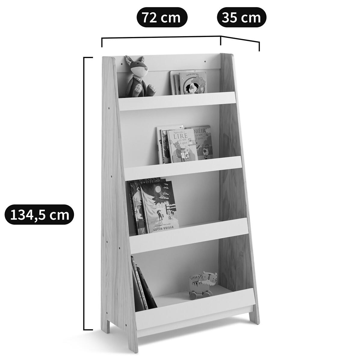The Sueno bookcase is an ideal piece of furniture for children. Very practical, its 4 compartments allow you to store and display your child's favourite books, at their height and within easy reach.. Perfect for allowing your little ones to organise and read by themselves. Product Details • In MDF and pine, FSC® wood • Varnish and water-based paint • 4 compartments. Quality Info • Conforms to current safety standards. Dimensions • Width: 72cm • Height: 134.5cm • Depth: 35cmDelivery:. Assembly required. Available for home delivery. Note! Please check that all access points are large enough to accommodate your delivery (doors, stairs, lifts). • WOOD FROM SUSTAINABLY MANAGED FORESTS. FSC® certified wood comes from forests that are environmentally, socially and economically well managed. Dimensions and weight of parcel1 parcel • L72 x H134.5 x D35cm. 14.5kg