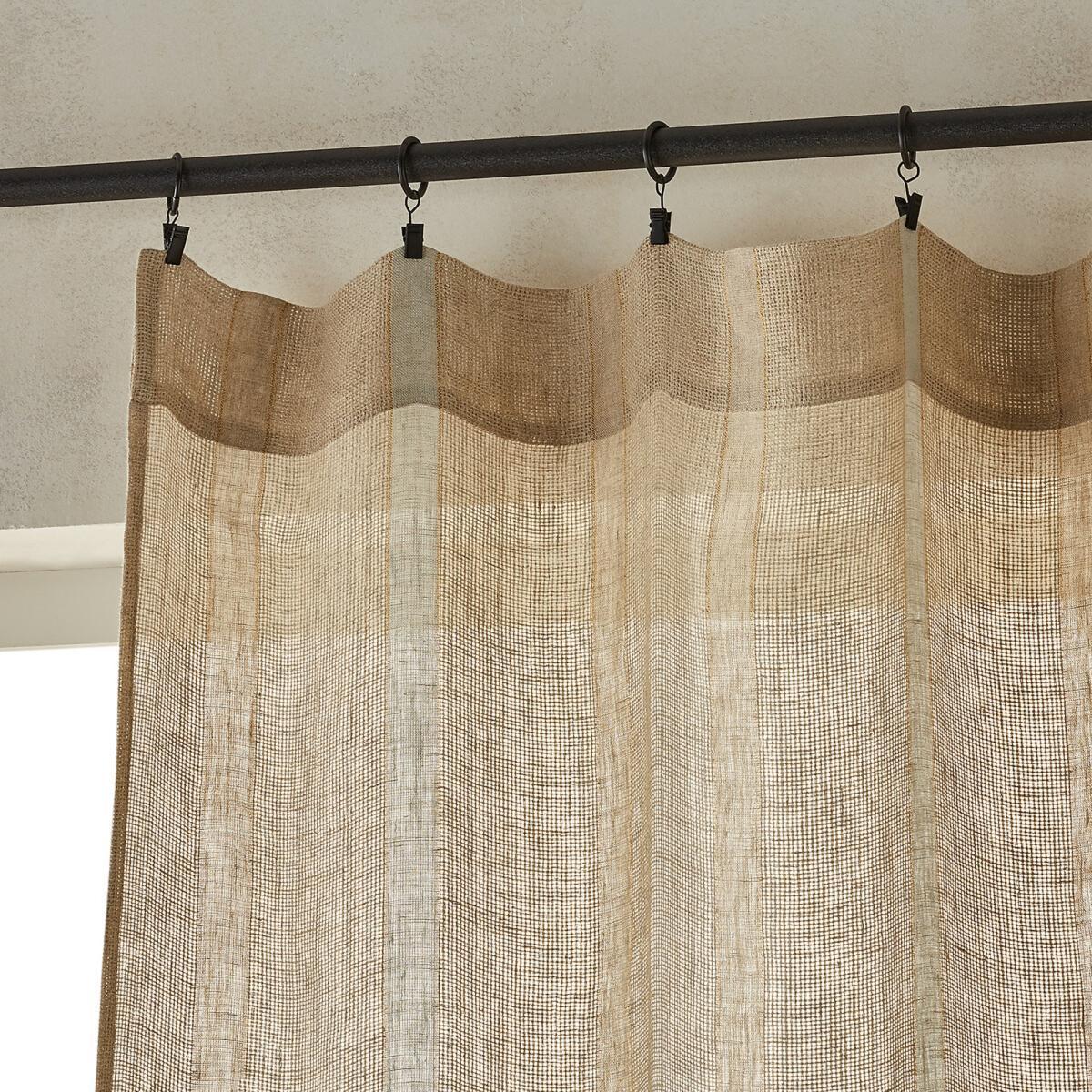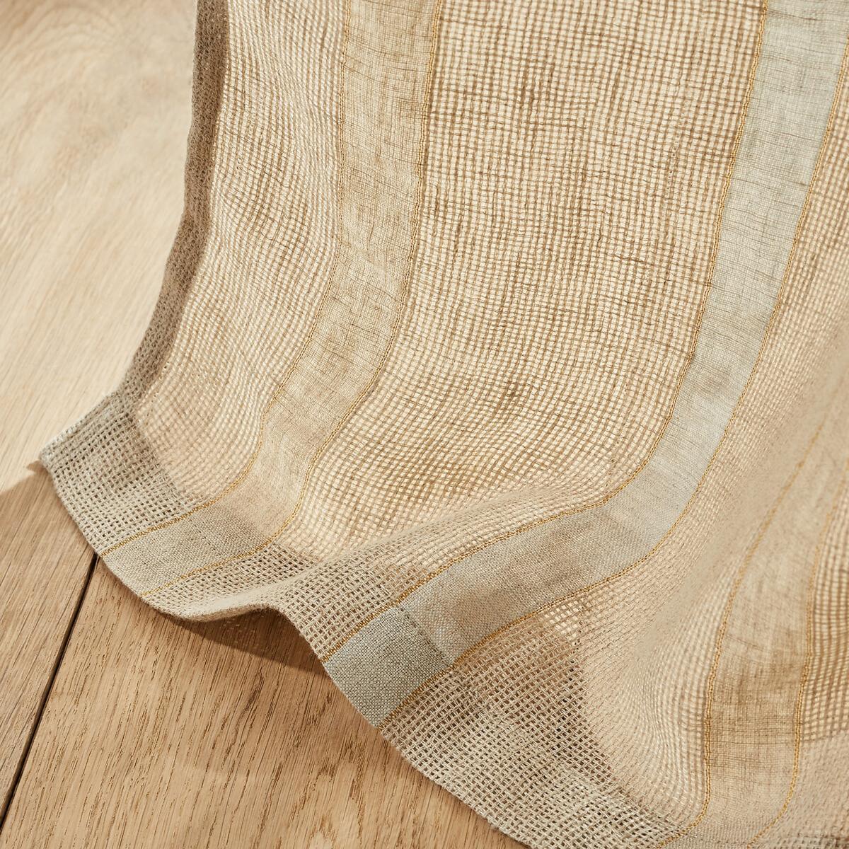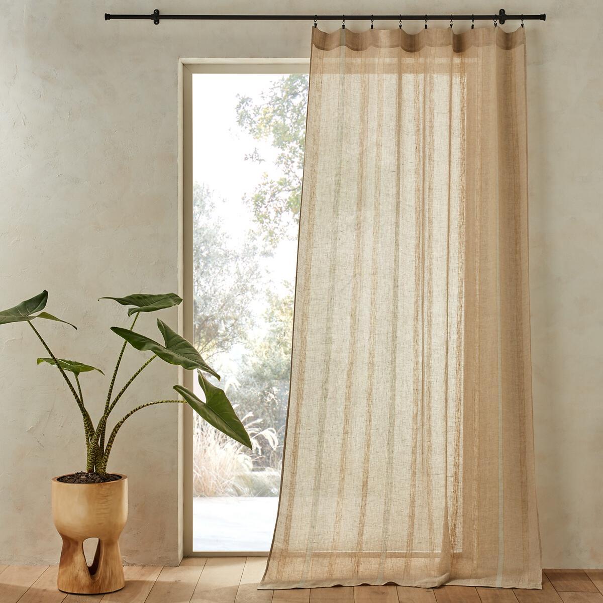 The Sueno sheer curtain in pure linen is woven with subtle vertical lines of celadon and gold.
