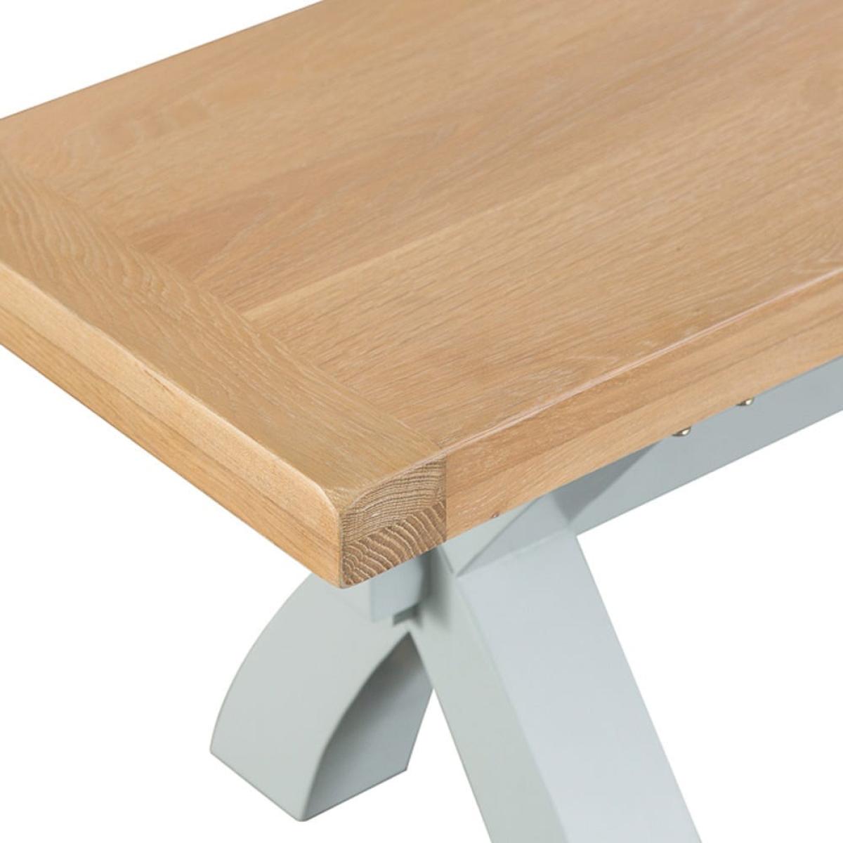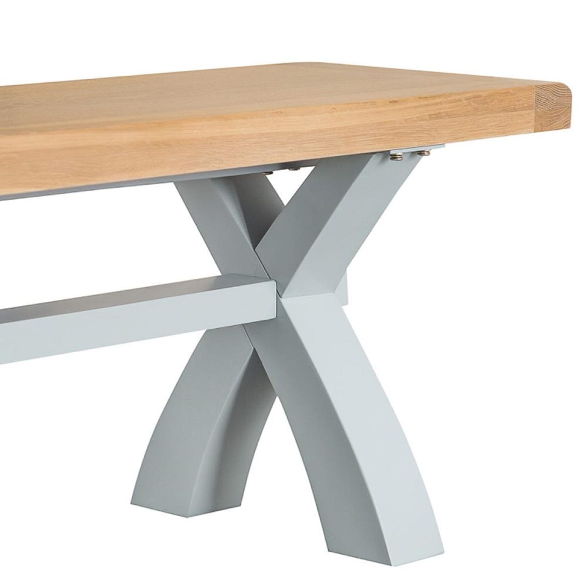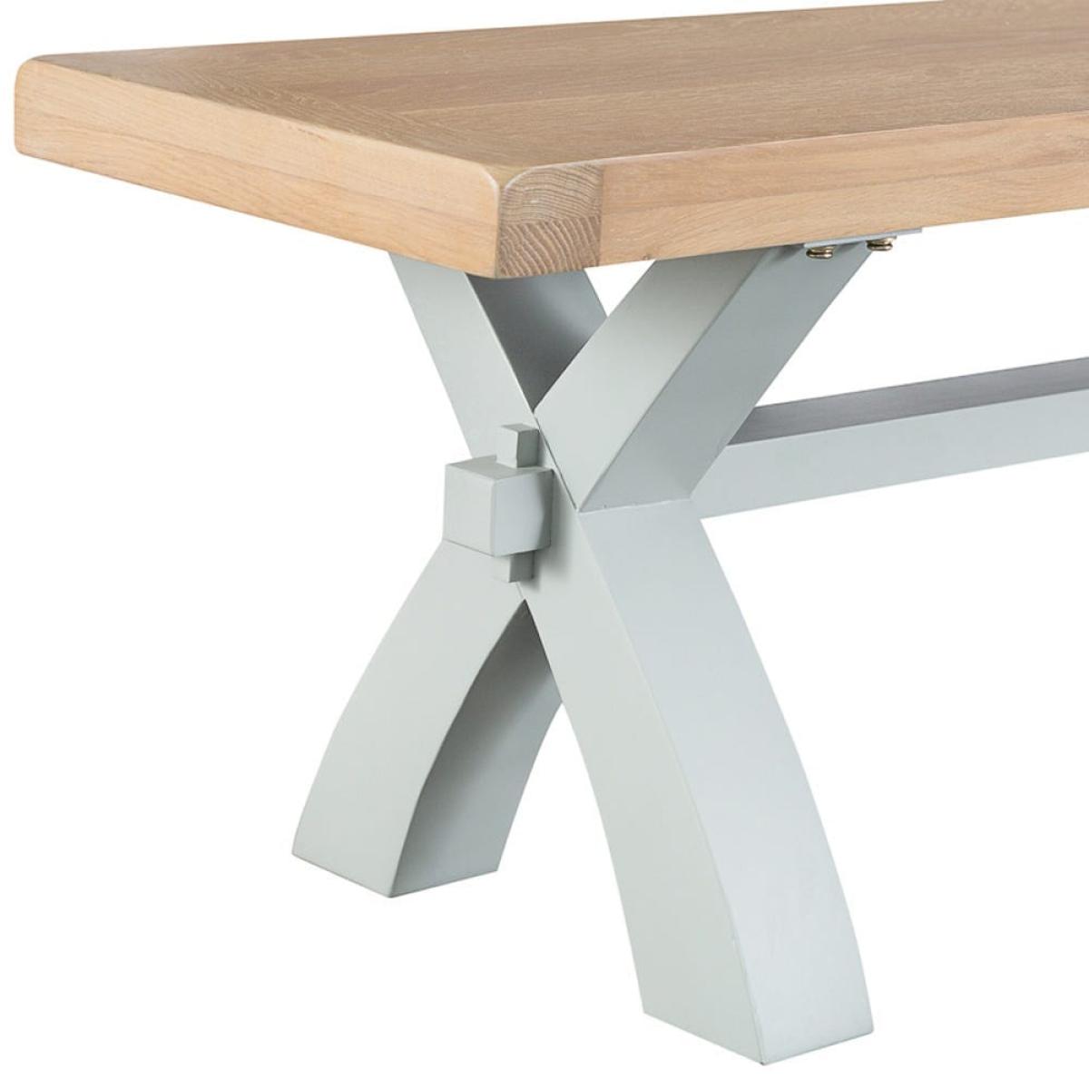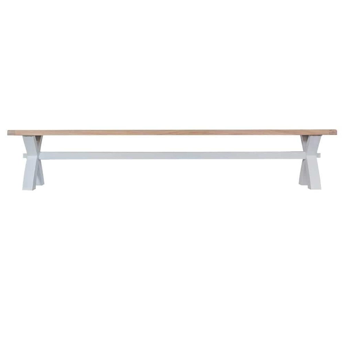 Room for one more? It’s time to scooch down and cosy up with this Suffolk grey painted oak large cross bench. This delightfully laid-back seat is perfect for high days, holidays and everything in between. At 2. 5m long, it can accommodate six or so guests, and it fits perfectly alongside our Suffolk grey extending dining table. The cross-style legs and long oak seat have a traditional rustic feel reminiscent of a farmhouse kitchen. Our ultra-modern pale grey hue updates the old-school silhouette for a timeless combination to suit any dining space. With a bench this splendid, you’ll be hankering after a pair.