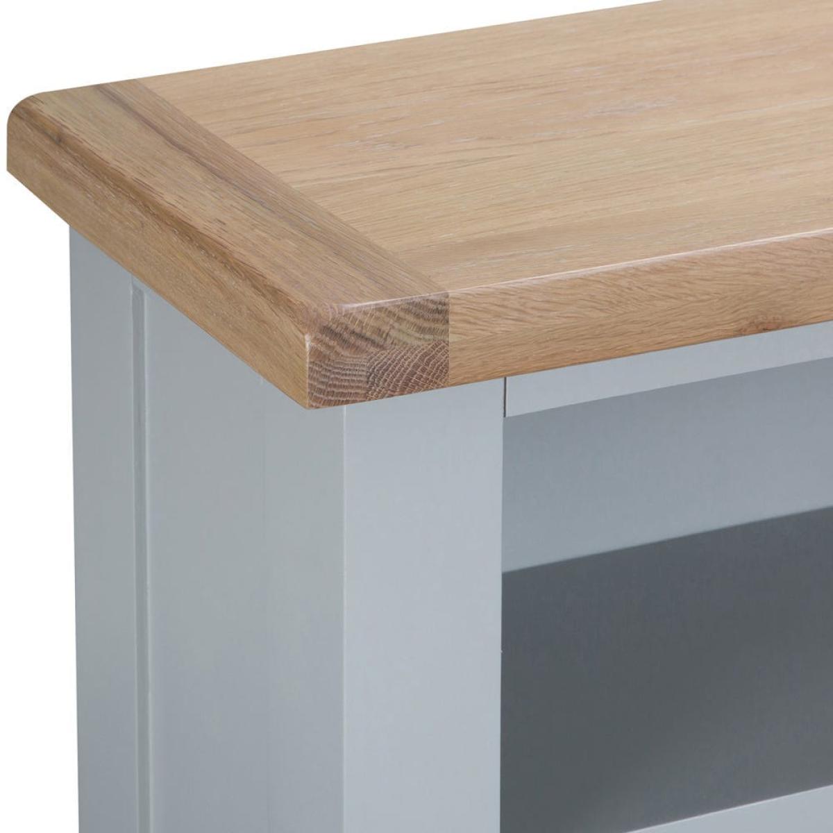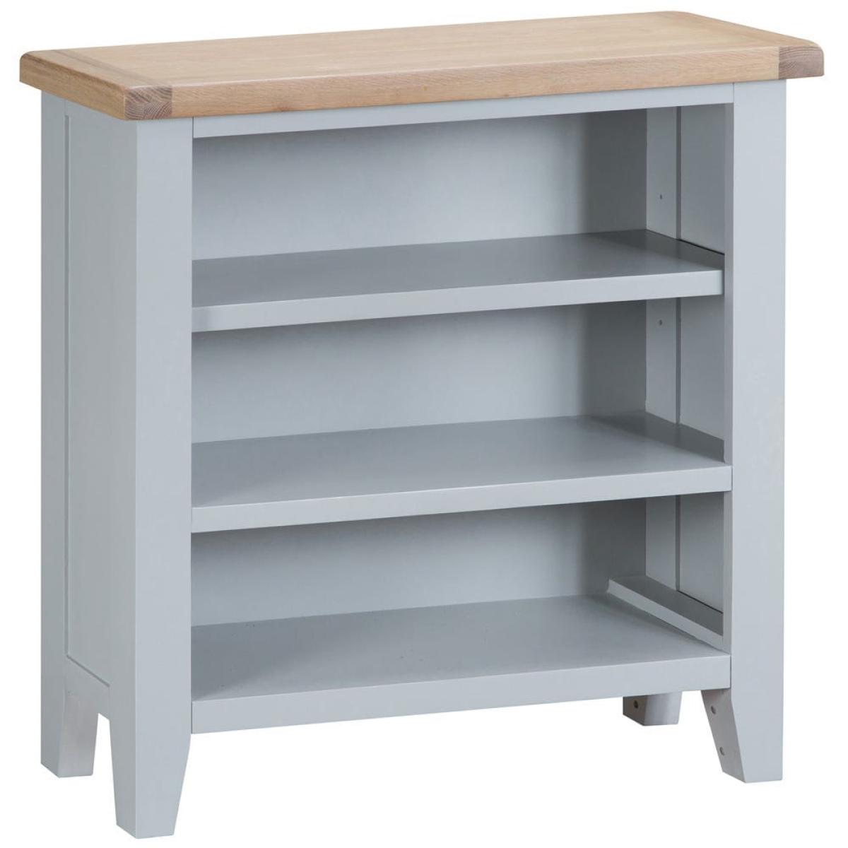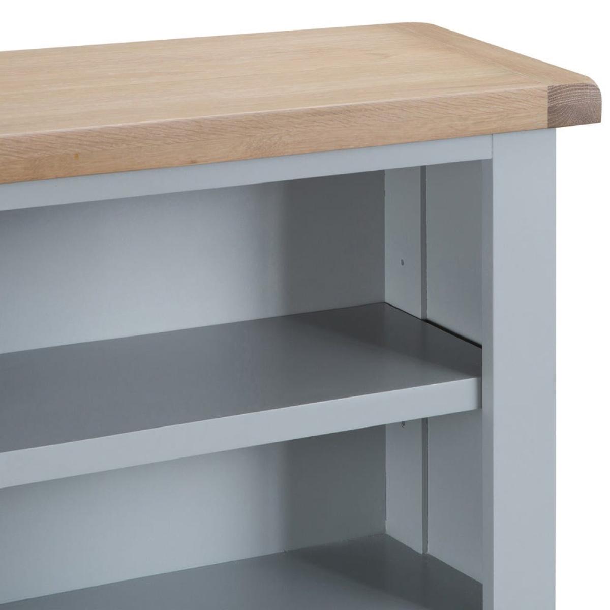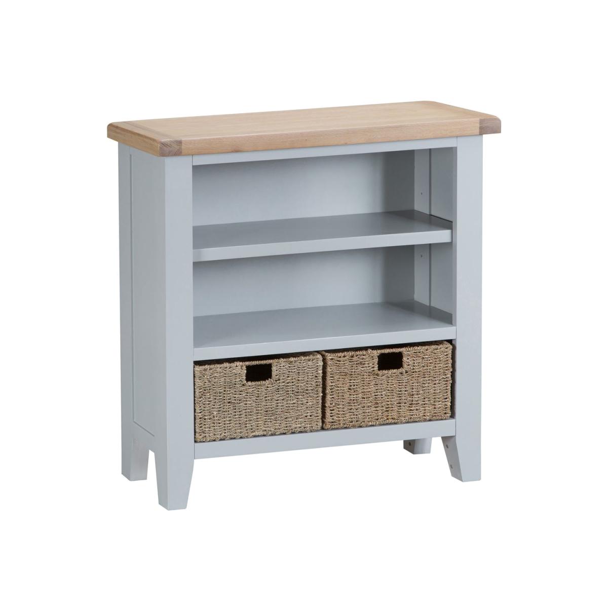 Suffolk Grey Painted Oak Small Wide Bookcase with Wicker Baskets
