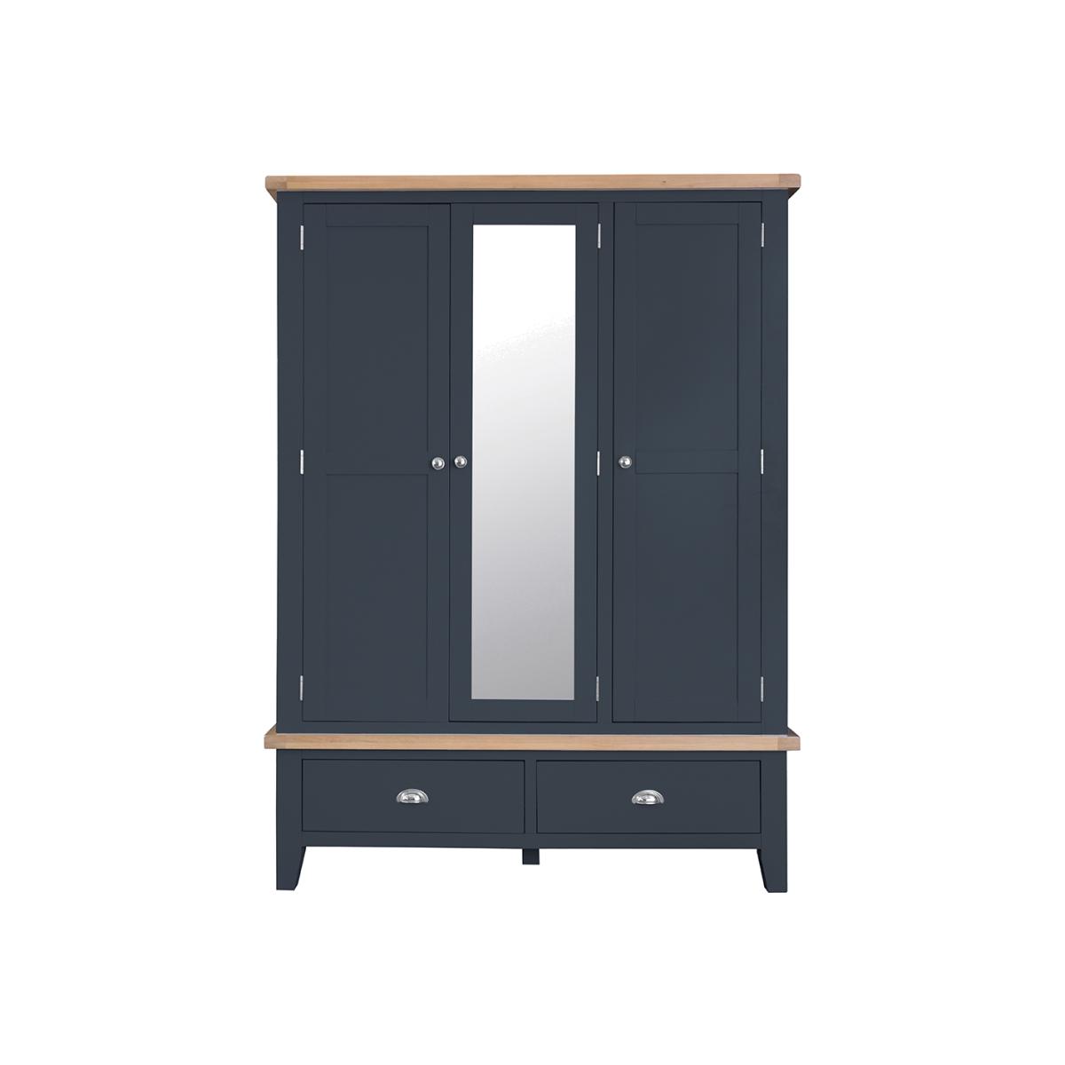Suffolk Midnight Grey Painted Oak 3 Door Wardrobe with Mirror