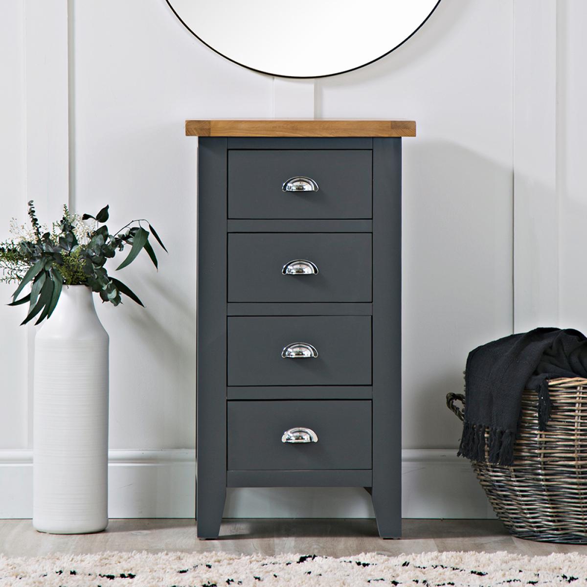 Suffolk Midnight Grey Painted Oak 4 Drawer Tallboy