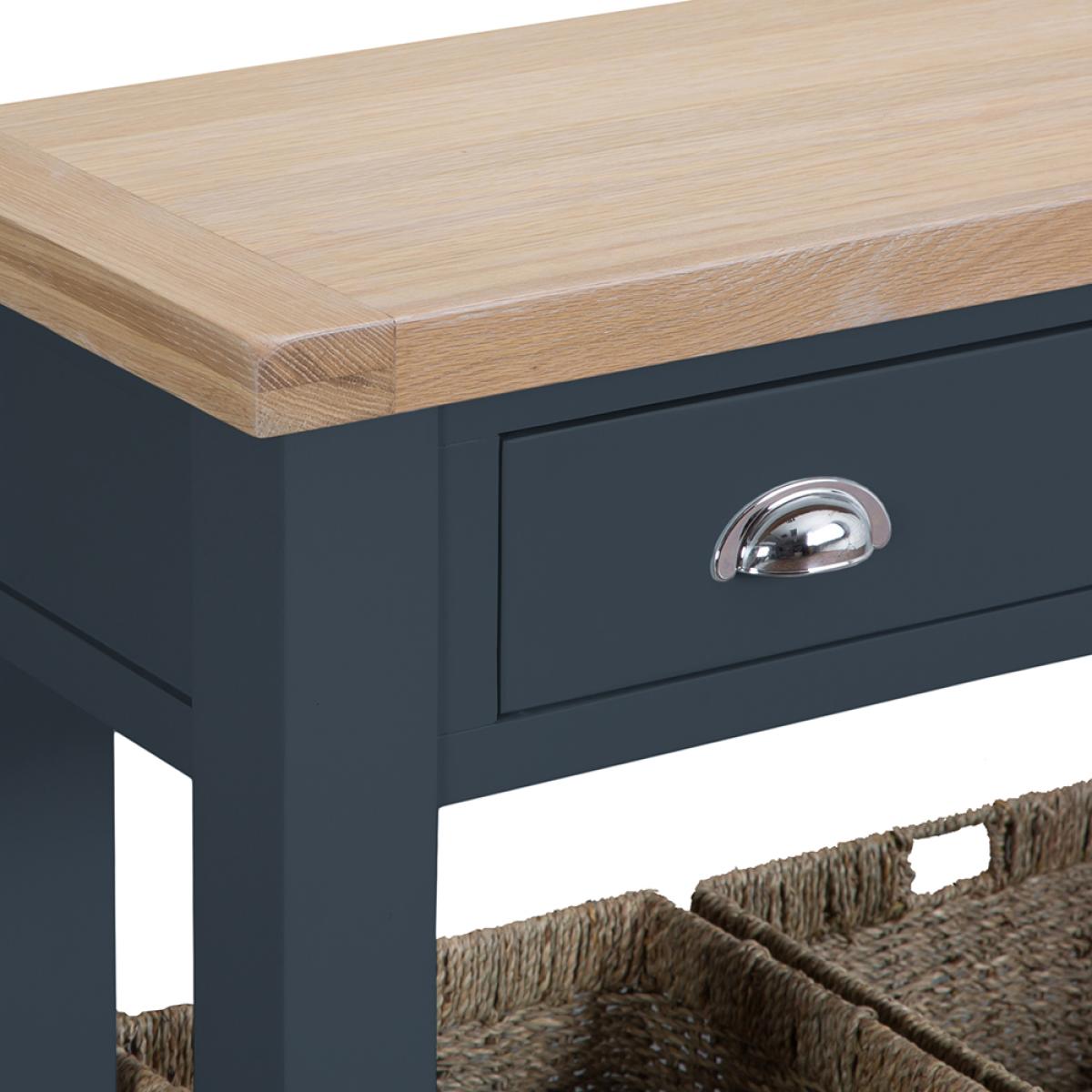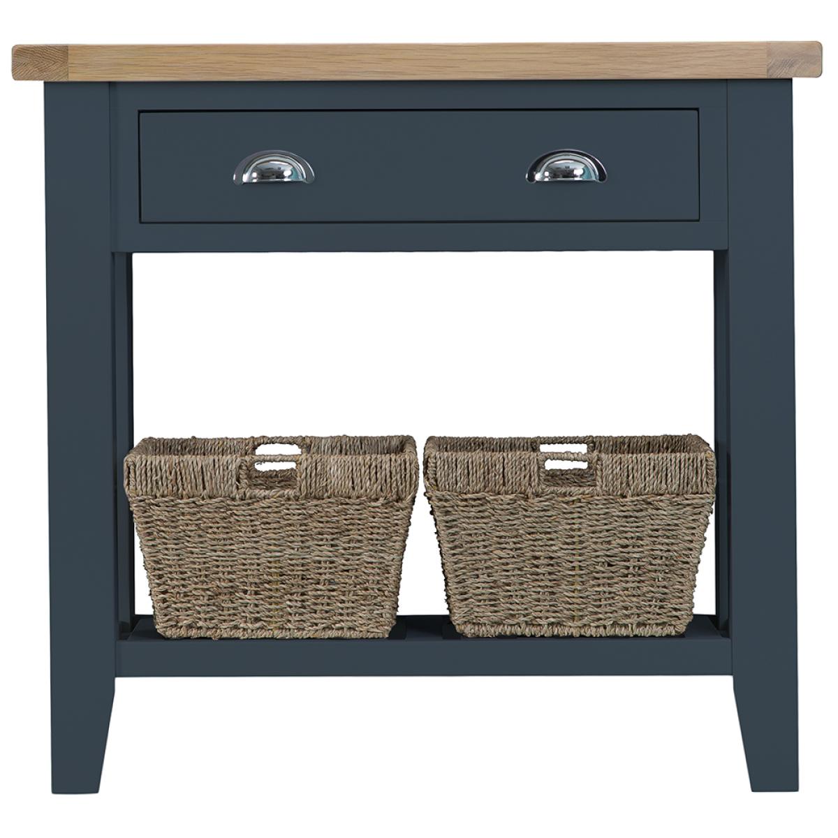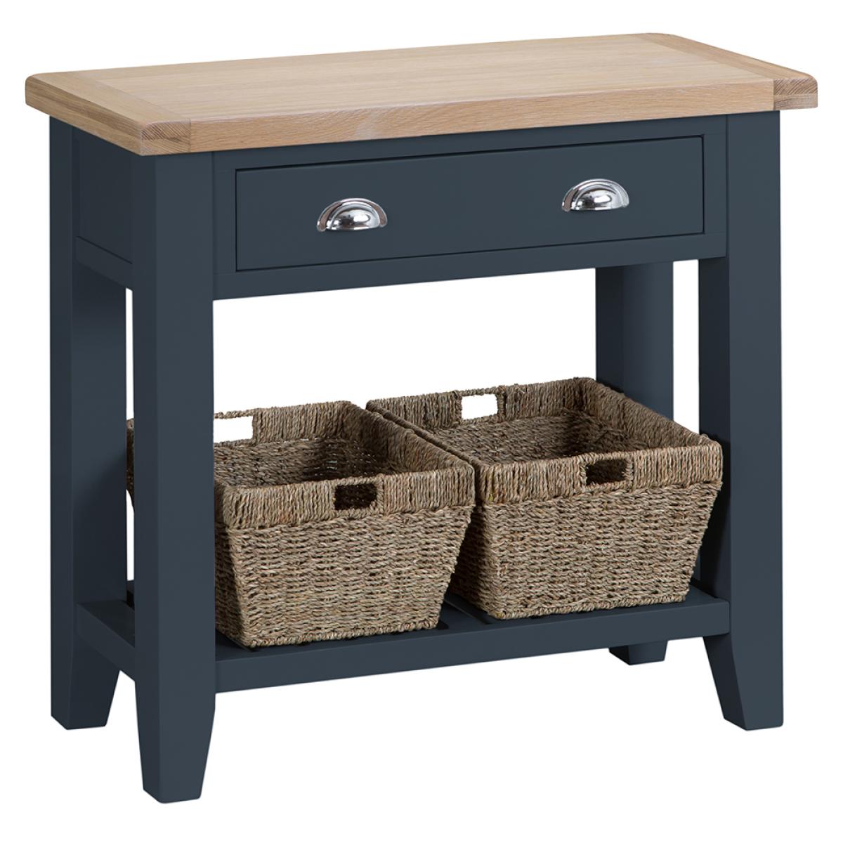 Suffolk Midnight Grey Painted Oak Console Table with Wicker Baskets