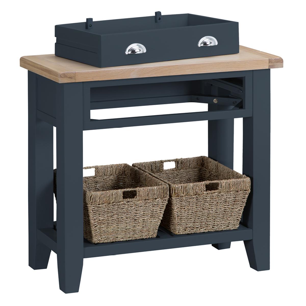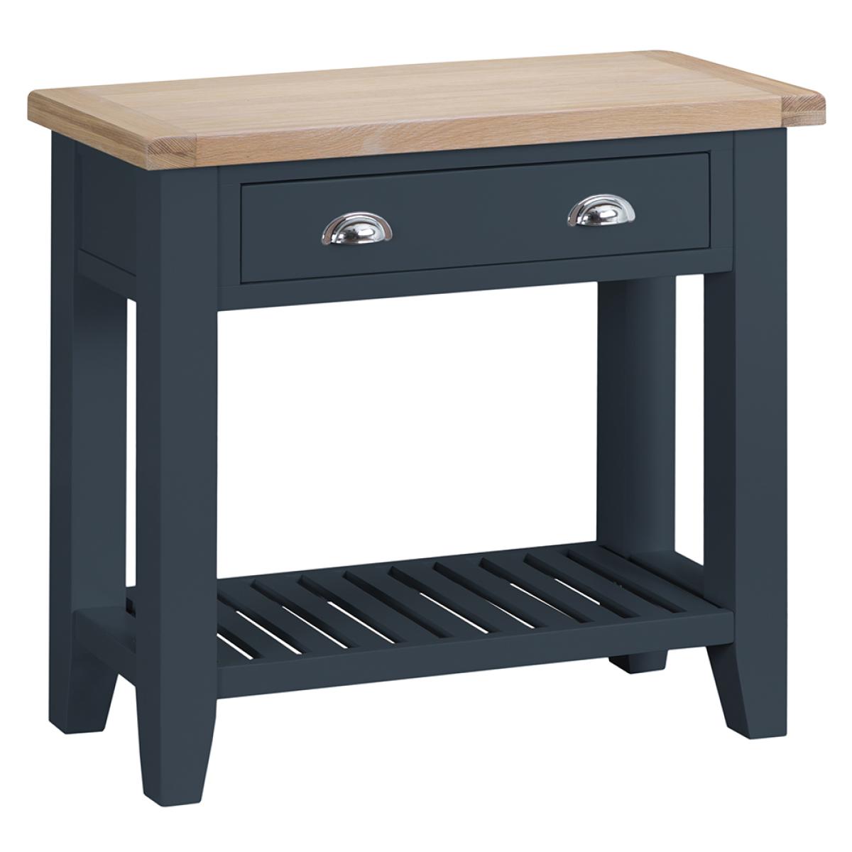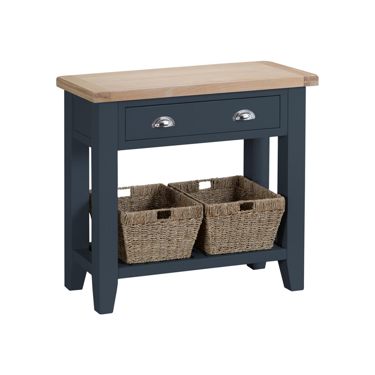Suffolk Midnight Grey Painted Oak Console Table with Wicker Baskets