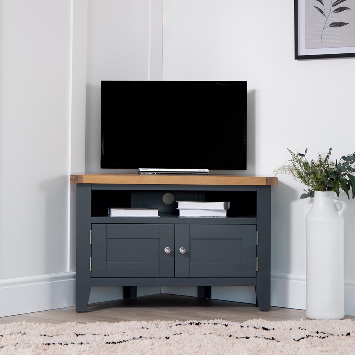Suffolk Midnight Grey Painted Oak Corner TV Unit