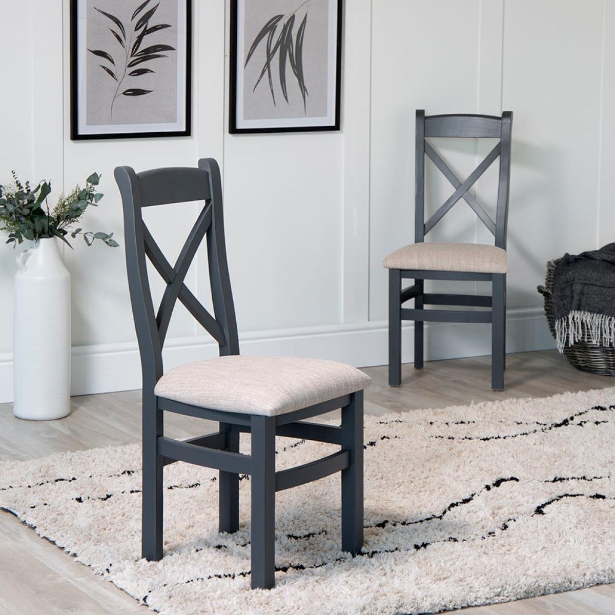 Suffolk Midnight Grey Painted Oak Crossback Chair With Fabric Seat