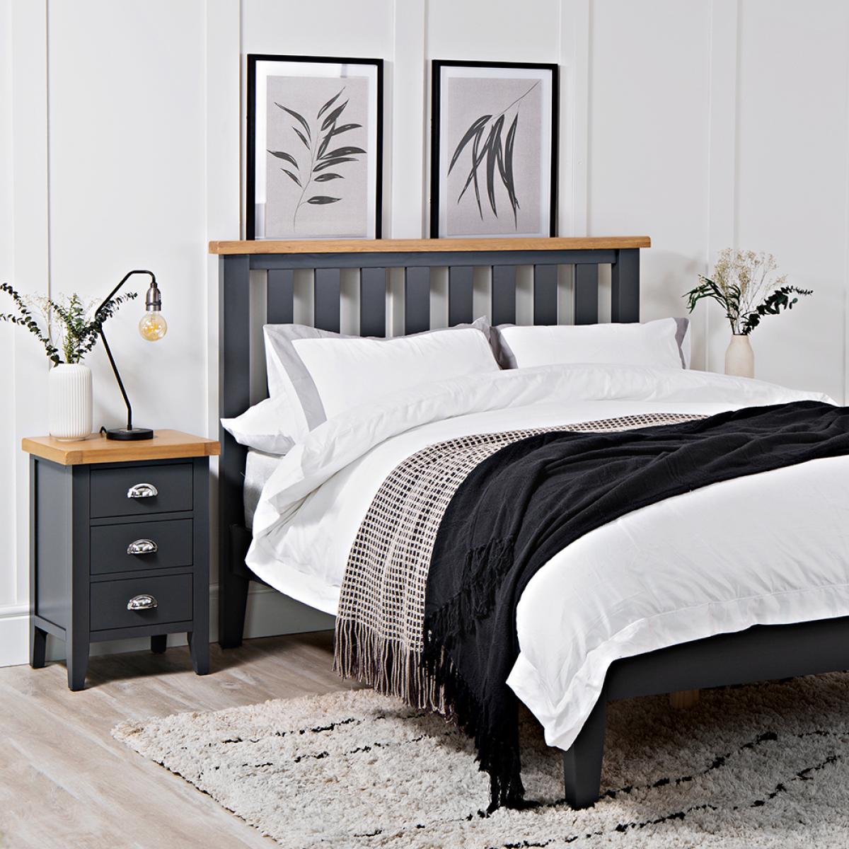 Suffolk Midnight Grey Painted Oak Double Bed Frame