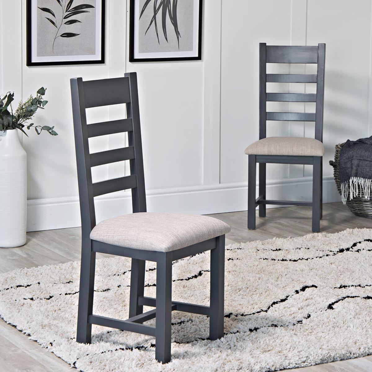 Suffolk Midnight Grey Painted Oak Ladderback Chair With Fabric Seat