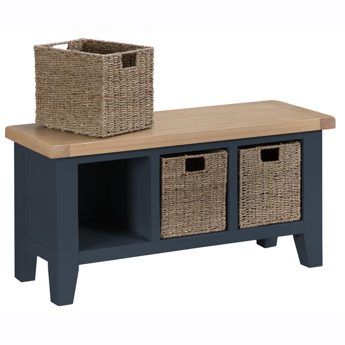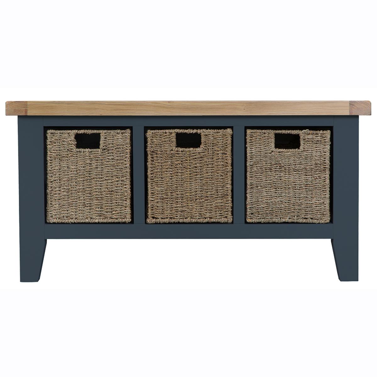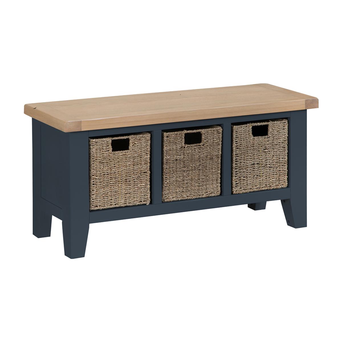 Suffolk Midnight Grey Painted Oak Large Hall Bench with Wicker Baskets