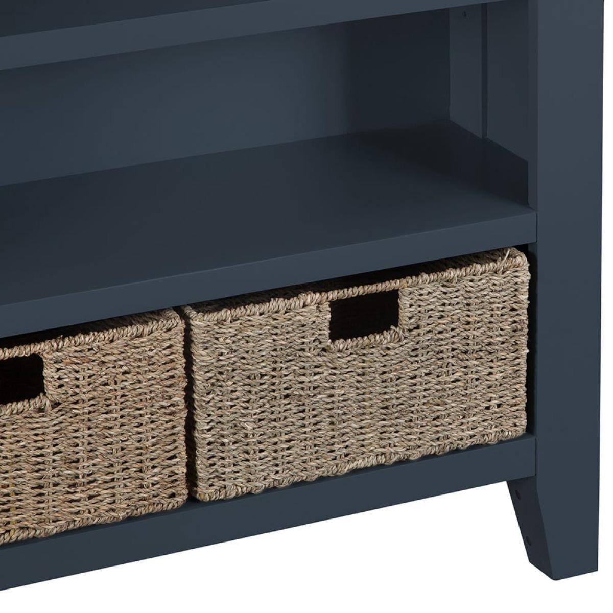 Suffolk Midnight Grey Painted Oak Small Wide Bookcase with Wicker Baskets