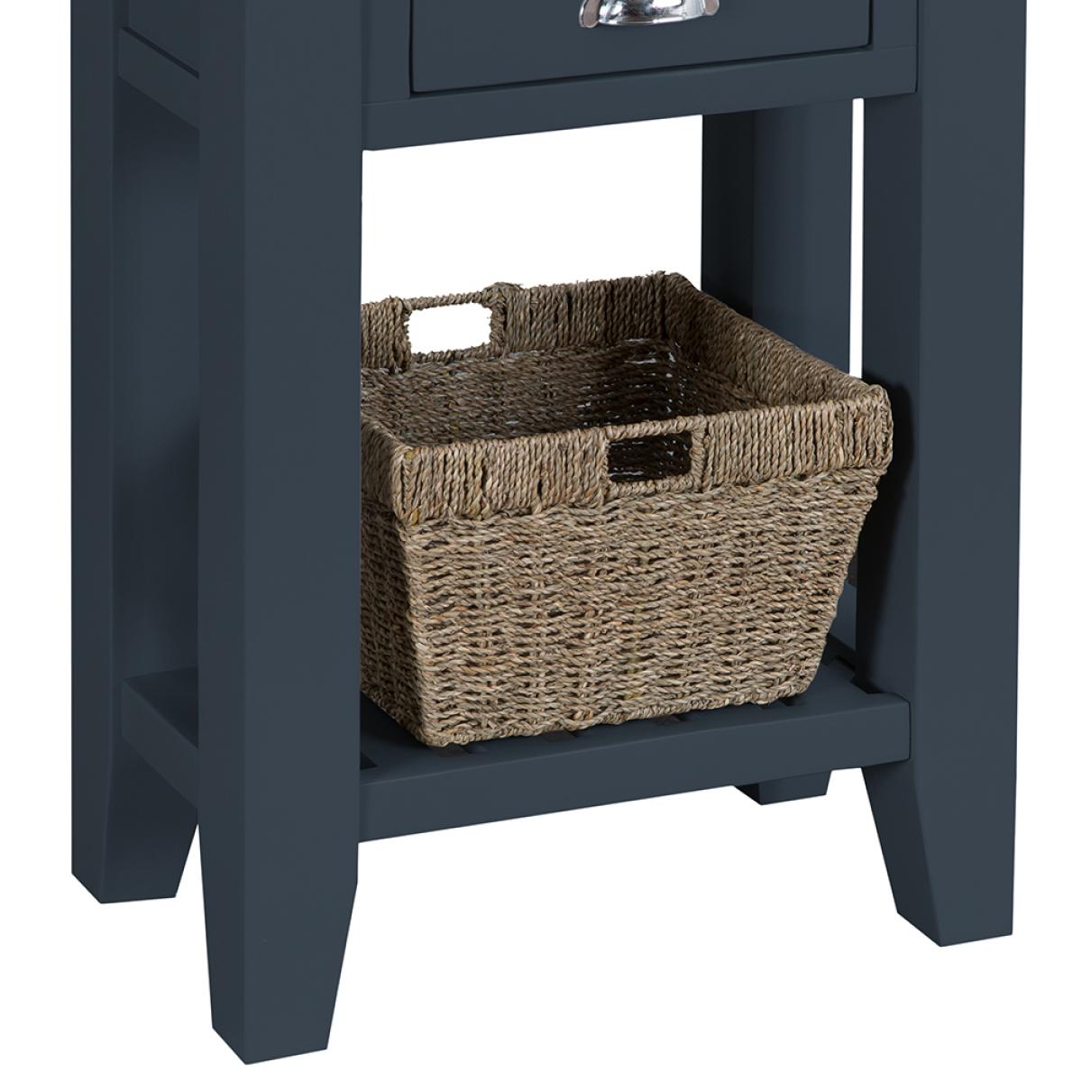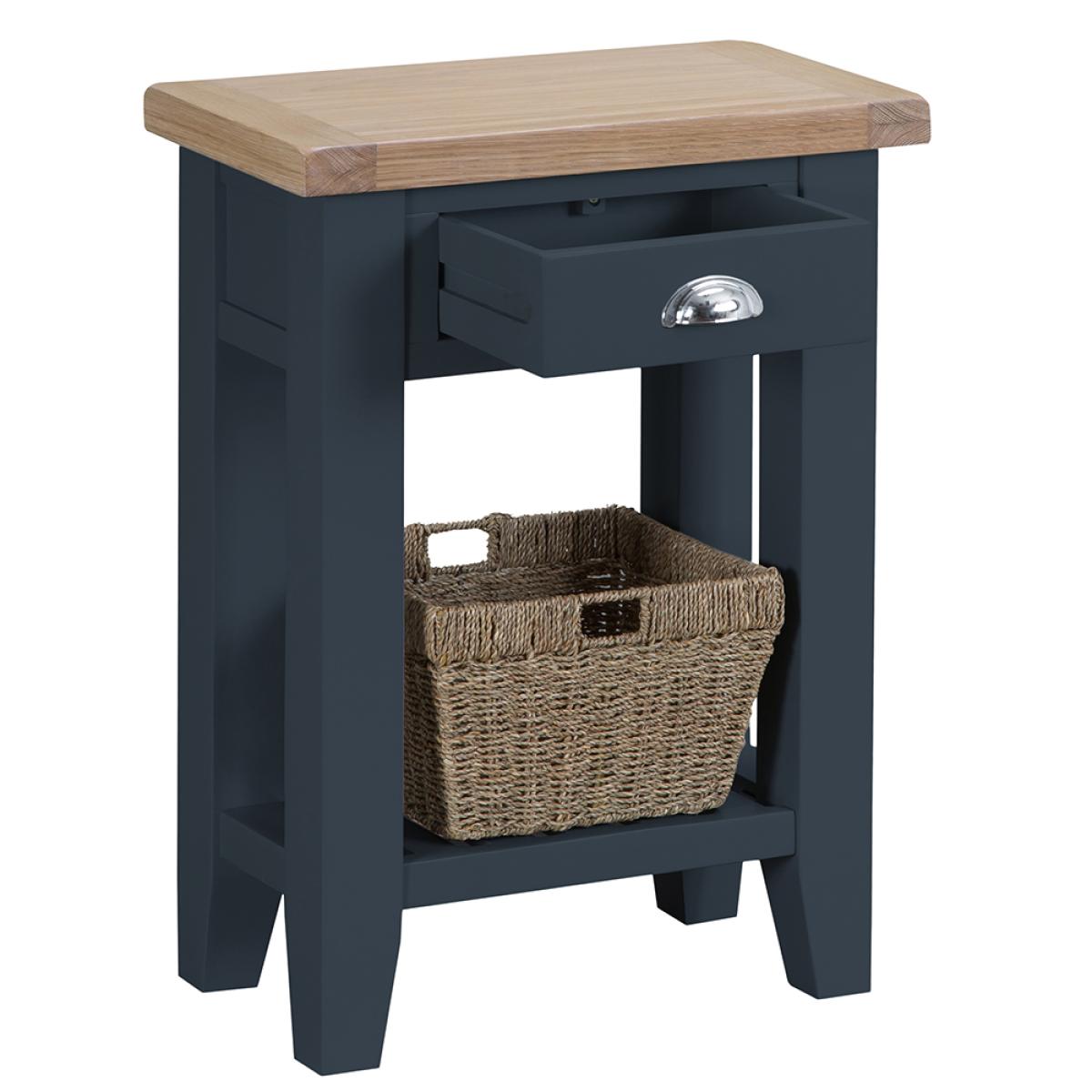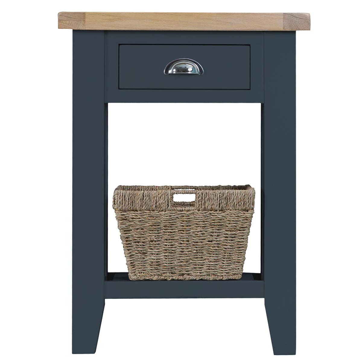 Suffolk Midnight Grey Painted Oak Telephone Table with Wicker Basket