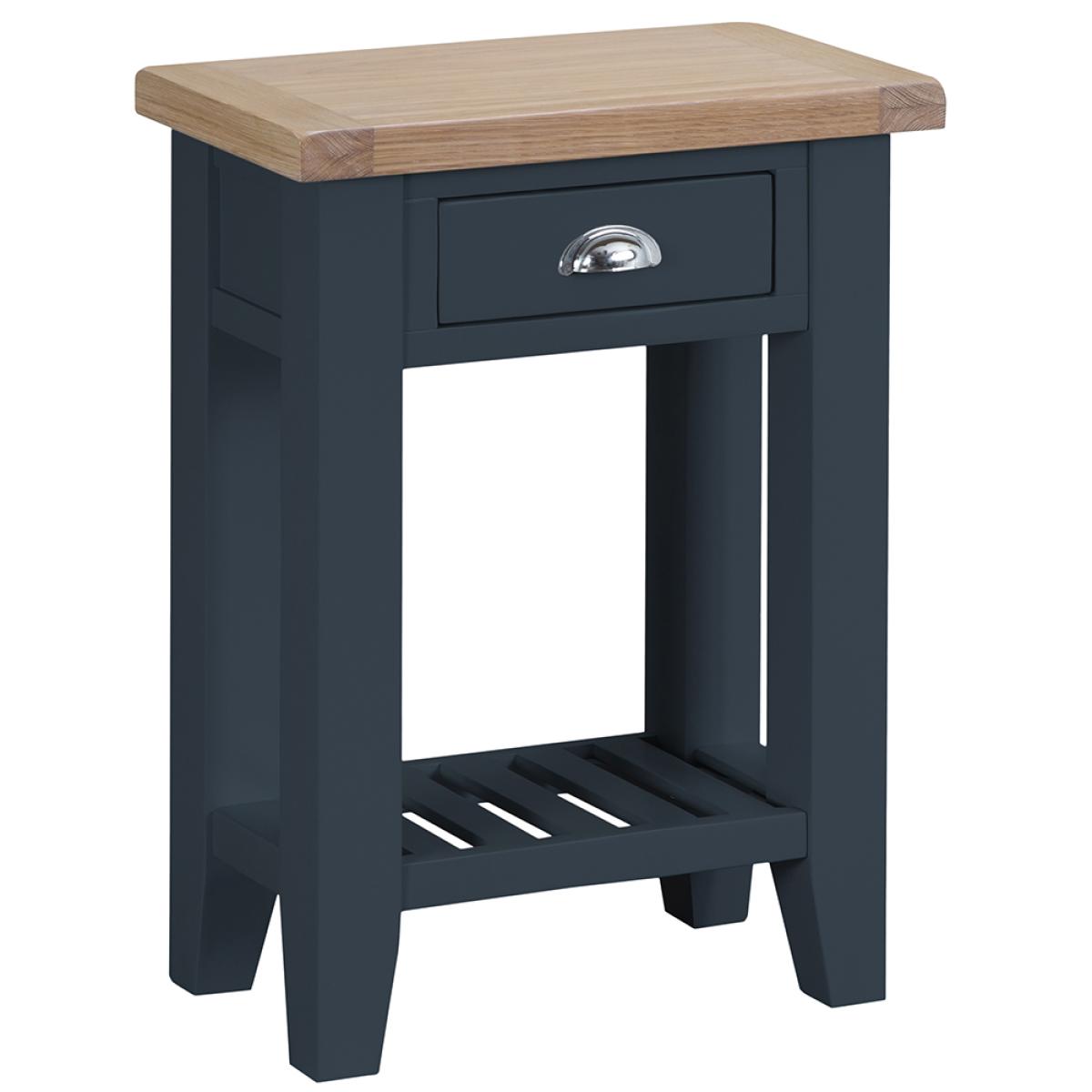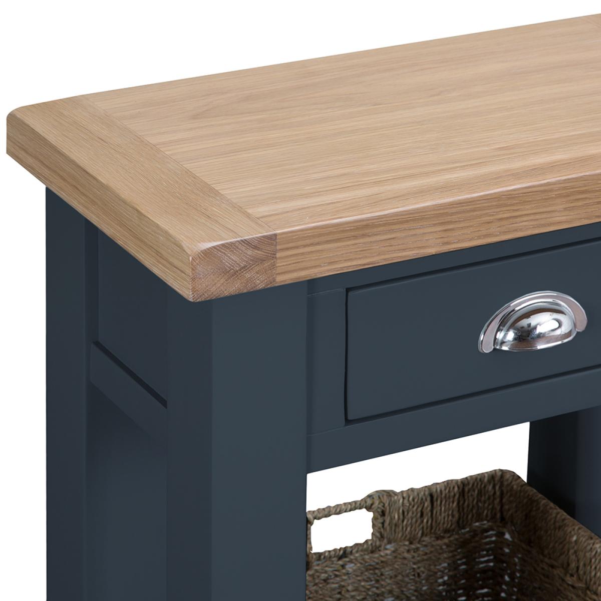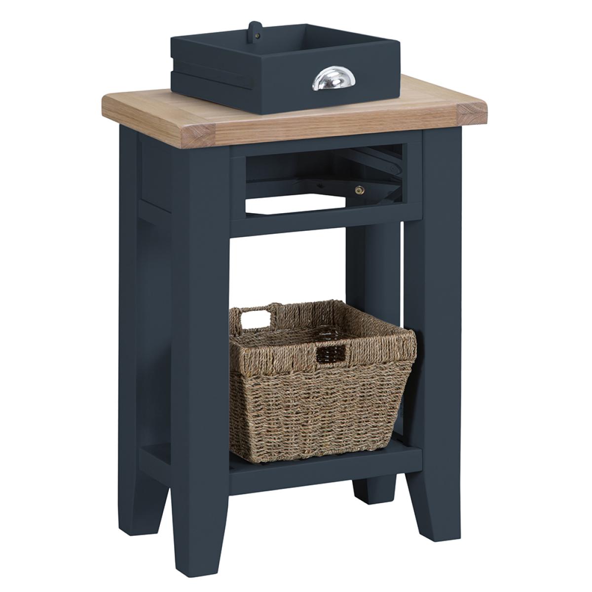 Suffolk Midnight Grey Painted Oak Telephone Table with Wicker Basket