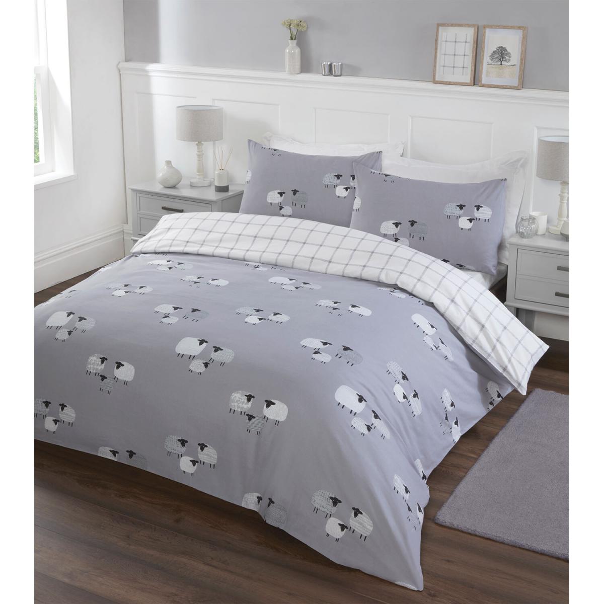 Suffolk Sheep Duvet Cover and Pillowcase Set - Grey / Double