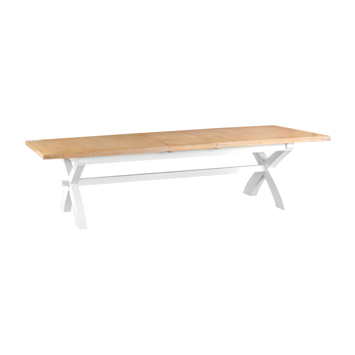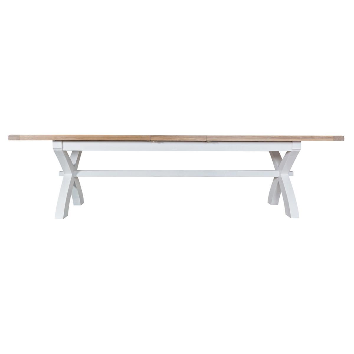 The biggest of all the tables in this range, the Suffolk White Painted Oak 2. 5m Cross Extending Table is the perfect piece for any dining room as it’s built to handle absolutely any occasion you can imagine, due to its generously sized oak and real oak veneer top which is normally 250cm but can extend to a very impressive 300cm, allowing it to seat an incredible 10-12 people. Far from just practical, this piece is also incredibly stylish, featuring timeless crossed legs and a gorgeous white painted solid pine frame, which puts this item on everyone’s wish list. Feel like you need something a bit smaller? Be sure to check out the 1. 2m, 1. 6m and 1. 8m Butterfly Extending Tables in this range. This item is also available in Grey from Chiltern Oak Furniture in our Suffolk Grey Painted Oak Collection.