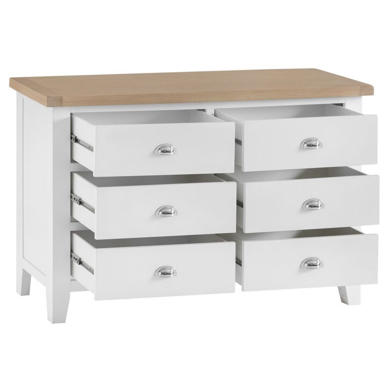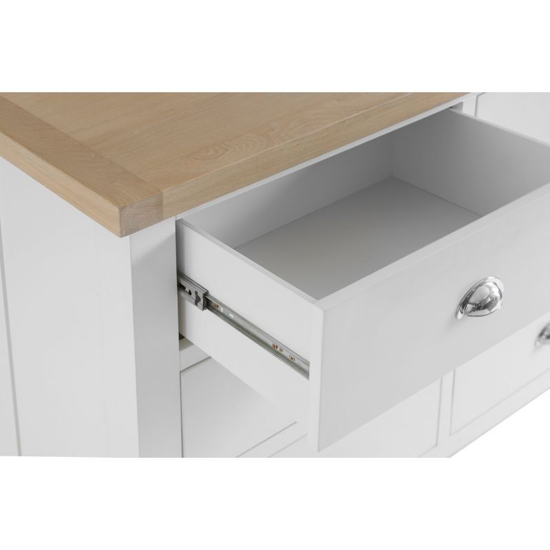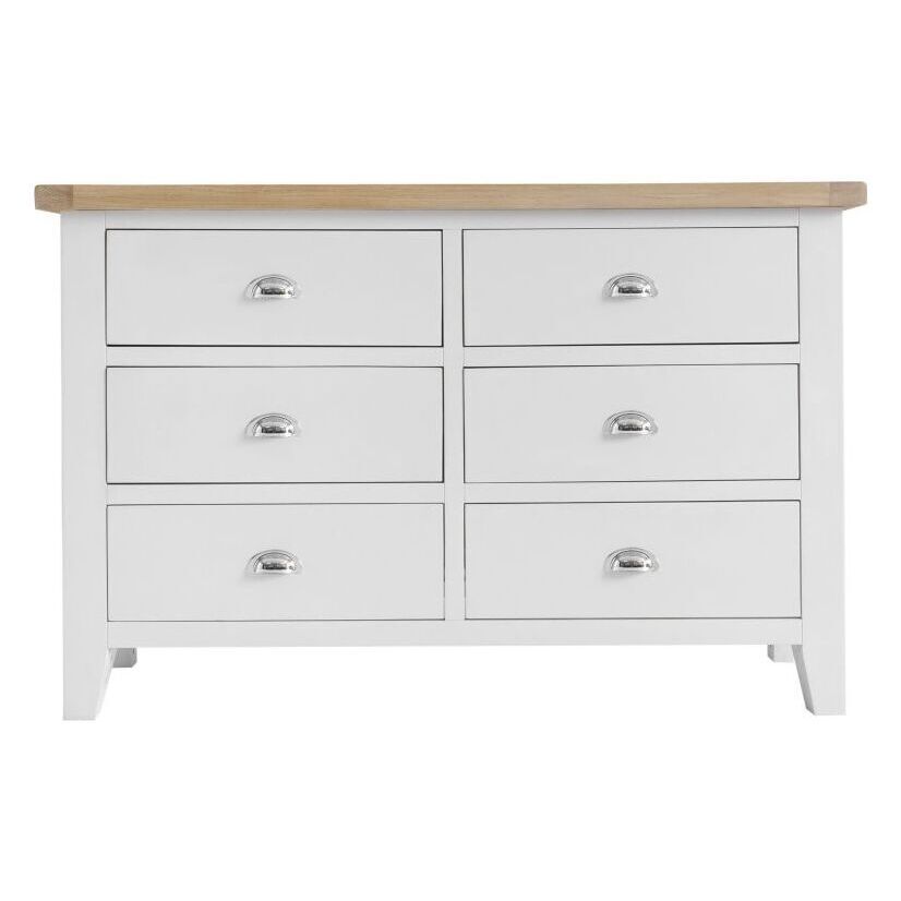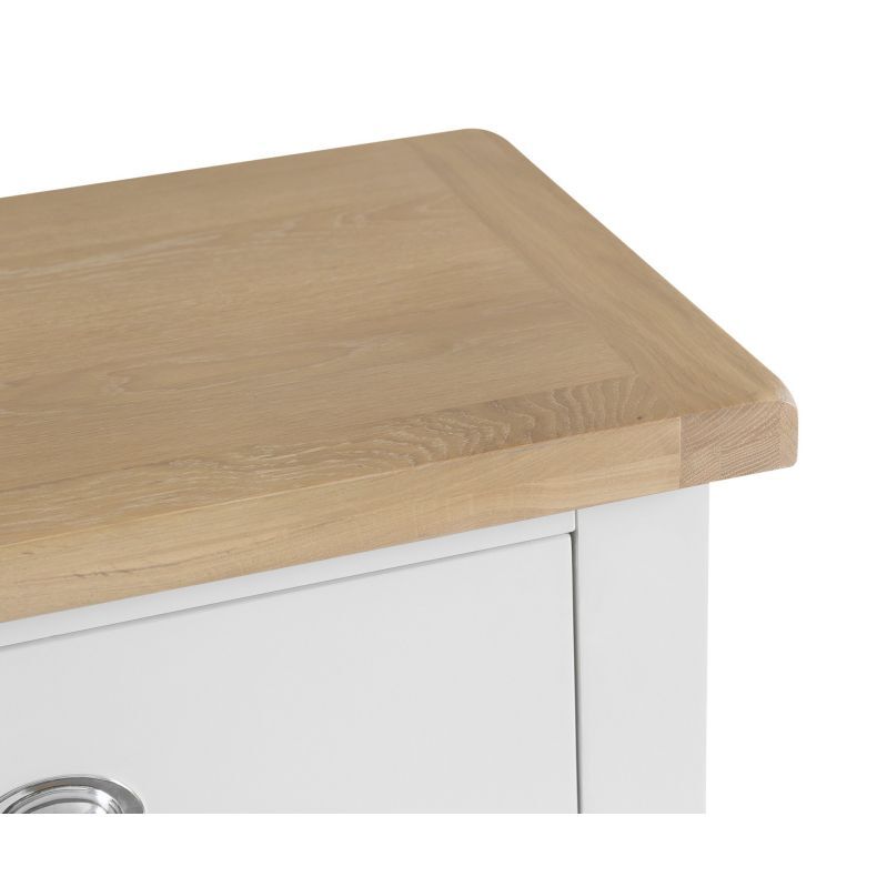I'm sure you've seen Farmhouse-style furniture in the past that combines stunning oak tops with smooth painted bases, but have you seen one quite as gorgeous as this? The incredible Suffolk White Painted Oak Collection is one of the finest examples we've seen of a classic/contemporary blend that's just perfect if you're looking to lighten up your home. The tops of this furniture are chunky, a lot thicker than many similar alternatives and the smooth chrome cup handles add the contemporary twist that really makes this range stand out from the rest.