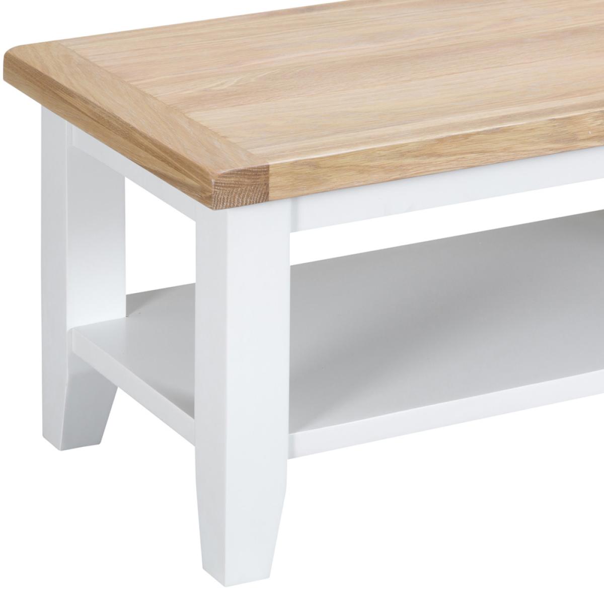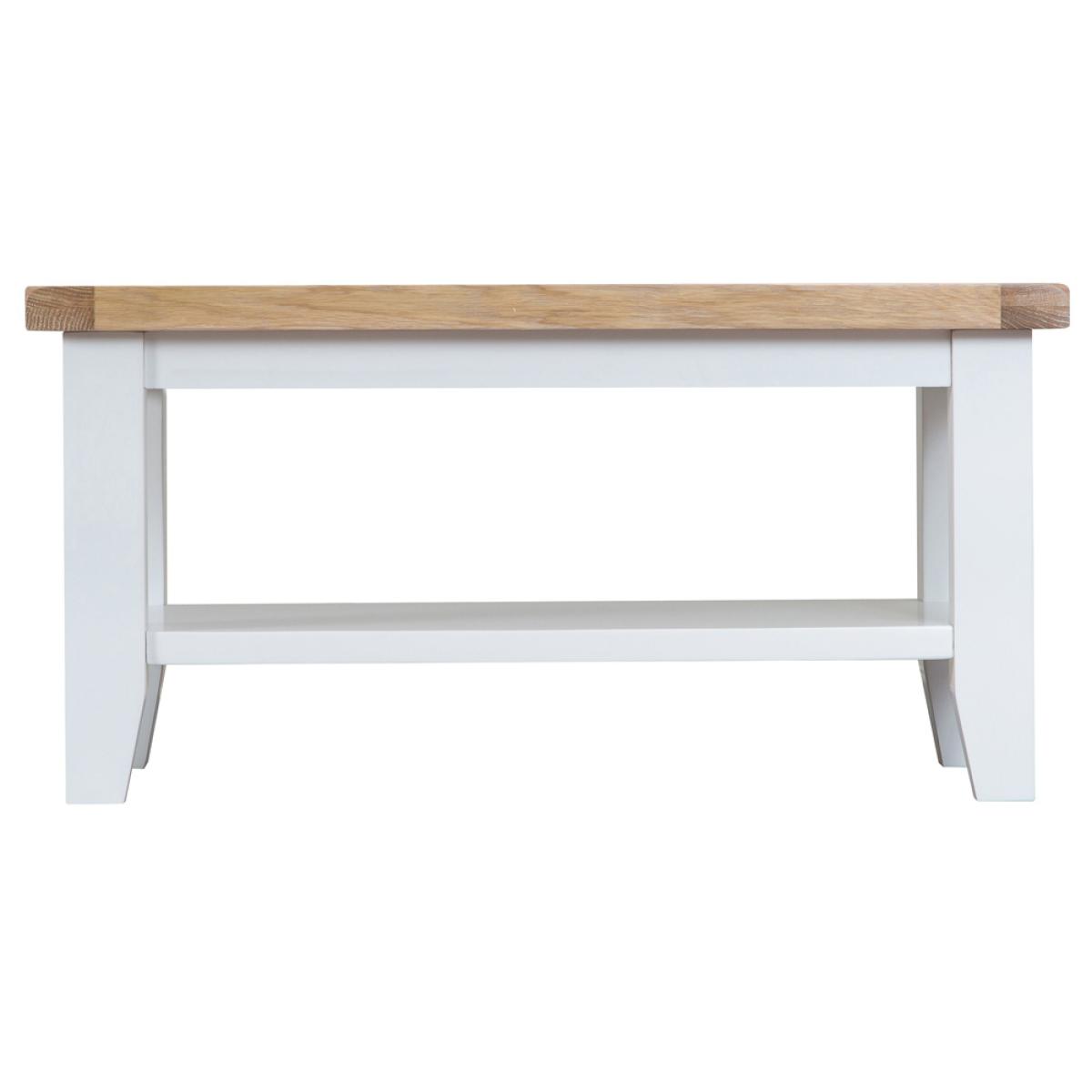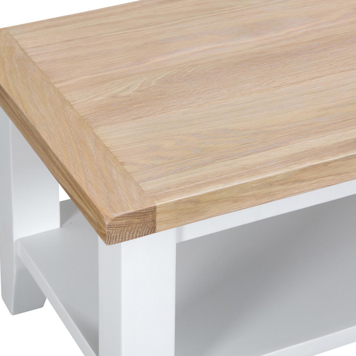 A mainstay of any living room, I’m sure you’ve seen many farmhouse-style coffee tables before, but have you ever seen one as gorgeous as this? Introducing the Suffolk White Painted Oak Small Coffee Table, the perfect centrepiece for your living room. Featuring a breath-taking fusion between classic and contemporary furniture styles, with an exquisite white painted solid pine frame and a striking thick oak and real oak veneer top, this coffee table is aesthetically stunning. Furthermore, this piece also has excellent practicality and build quality, with a generous surface area, which serves as both an excellent table and the perfect foot-rest, while extra thick table legs provide sturdiness. Feel like you might need something a bit bigger? Be sure to check out the Large Coffee Table in this range. This item is also available in Grey from Chiltern Oak Furniture in our Suffolk Grey Painted Oak Collection.