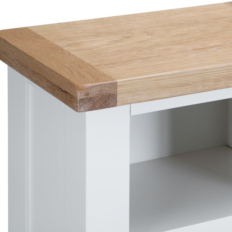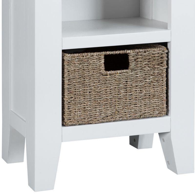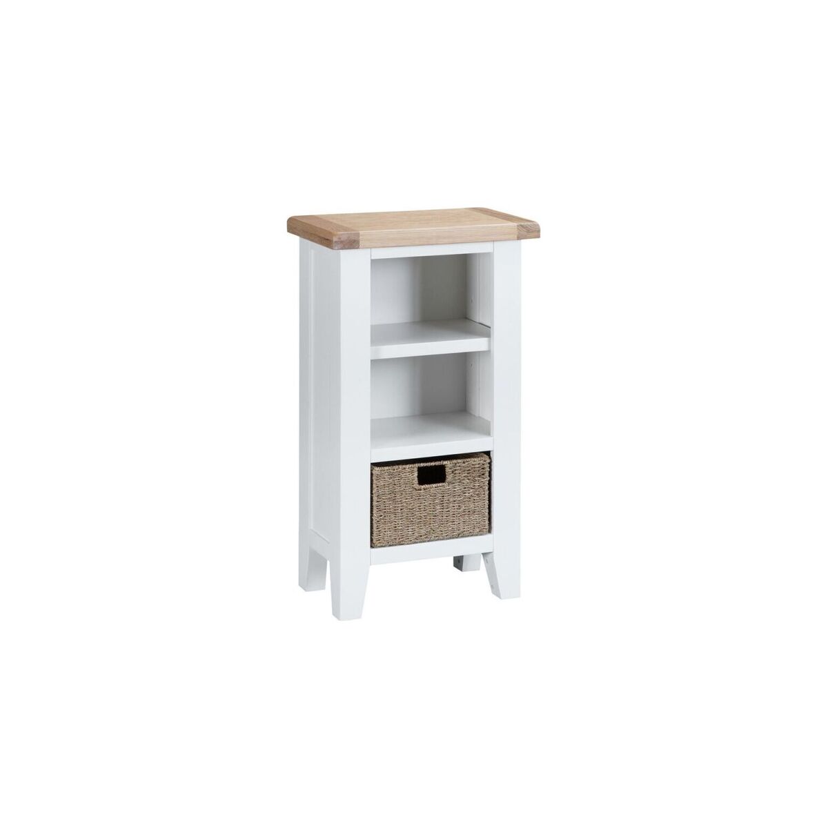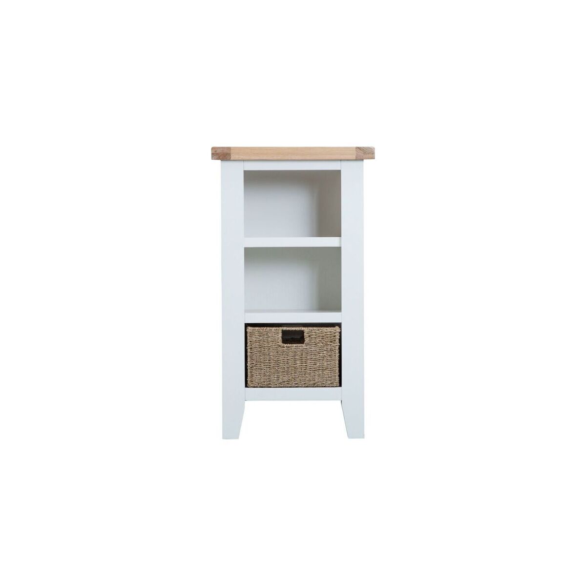 Introducing the Suffolk White Painted Oak Small Narrow Bookcase, the perfect piece for any room where space is at a premium. At 50cm wide and 90cm high, this Bookcase may seem small but there's more than meets the eye as this piece is also extremely practical. Featuring plenty of shelving which is perfect for your books or even DVD's, a generous surface area and a gorgeous rustic wicker basket which is perfect for storing those bits-and-pieces we all find. As well as being practical this piece is also aesthetically pleasing, featuring an elegant white painted solid pine frame and a stunning thick oak and real oak veneer top, which is a mainstay of this beautiful range. The best bit? This item arrives fully assembled so as soon as it's been delivered you're good to go. Feel like you need something a bit bigger? Be sure to check out the Small Wide Bookcase and Large Bookcase in this range. This item is also available in Grey from Chiltern Oak Furniture in our Suffolk Grey Painted Oak Collection.