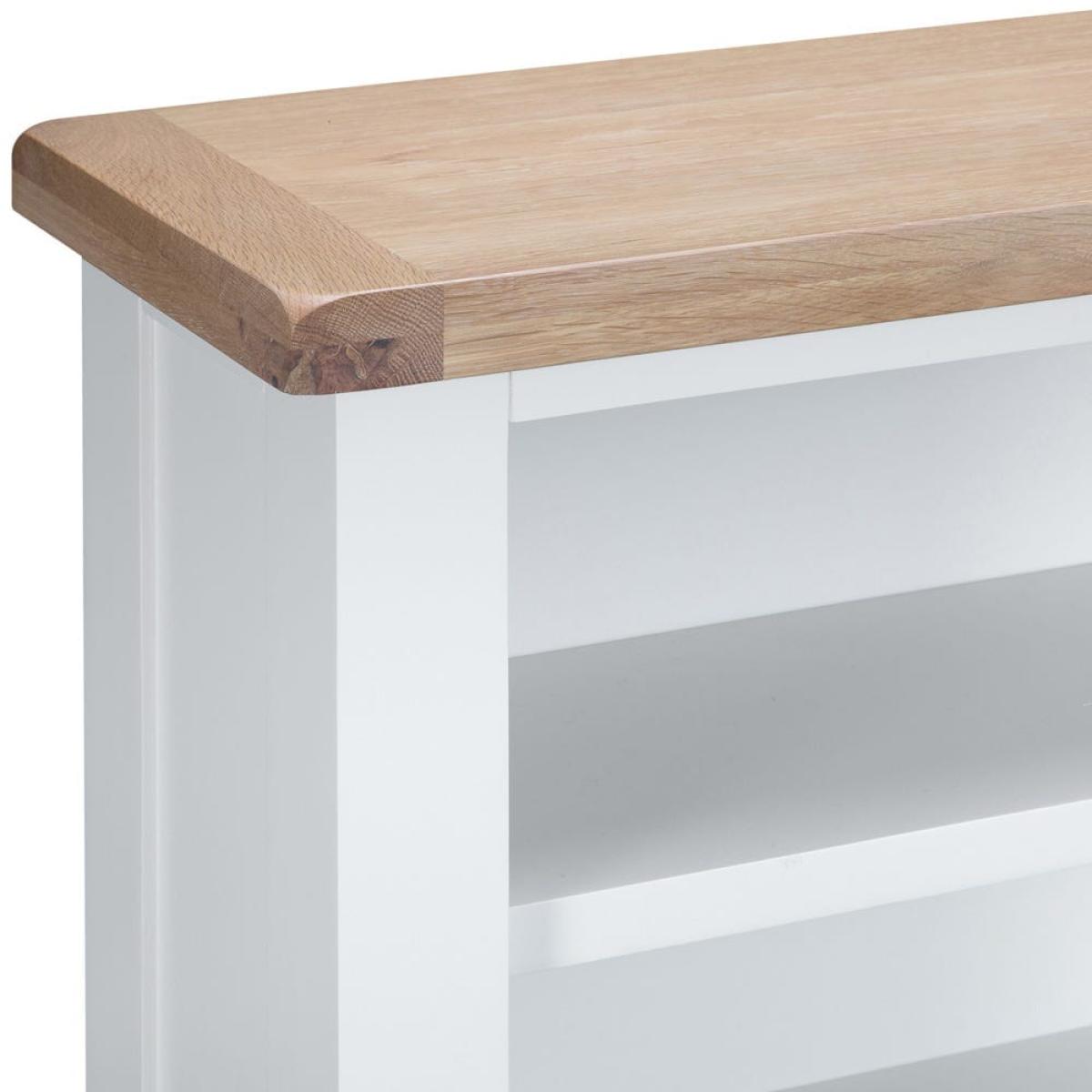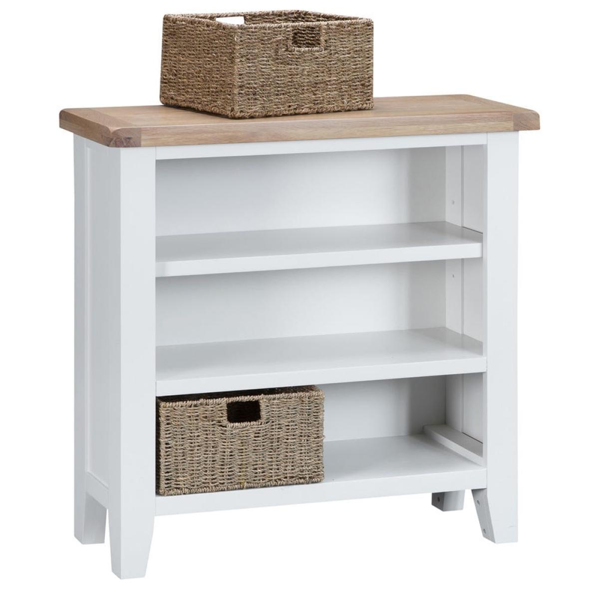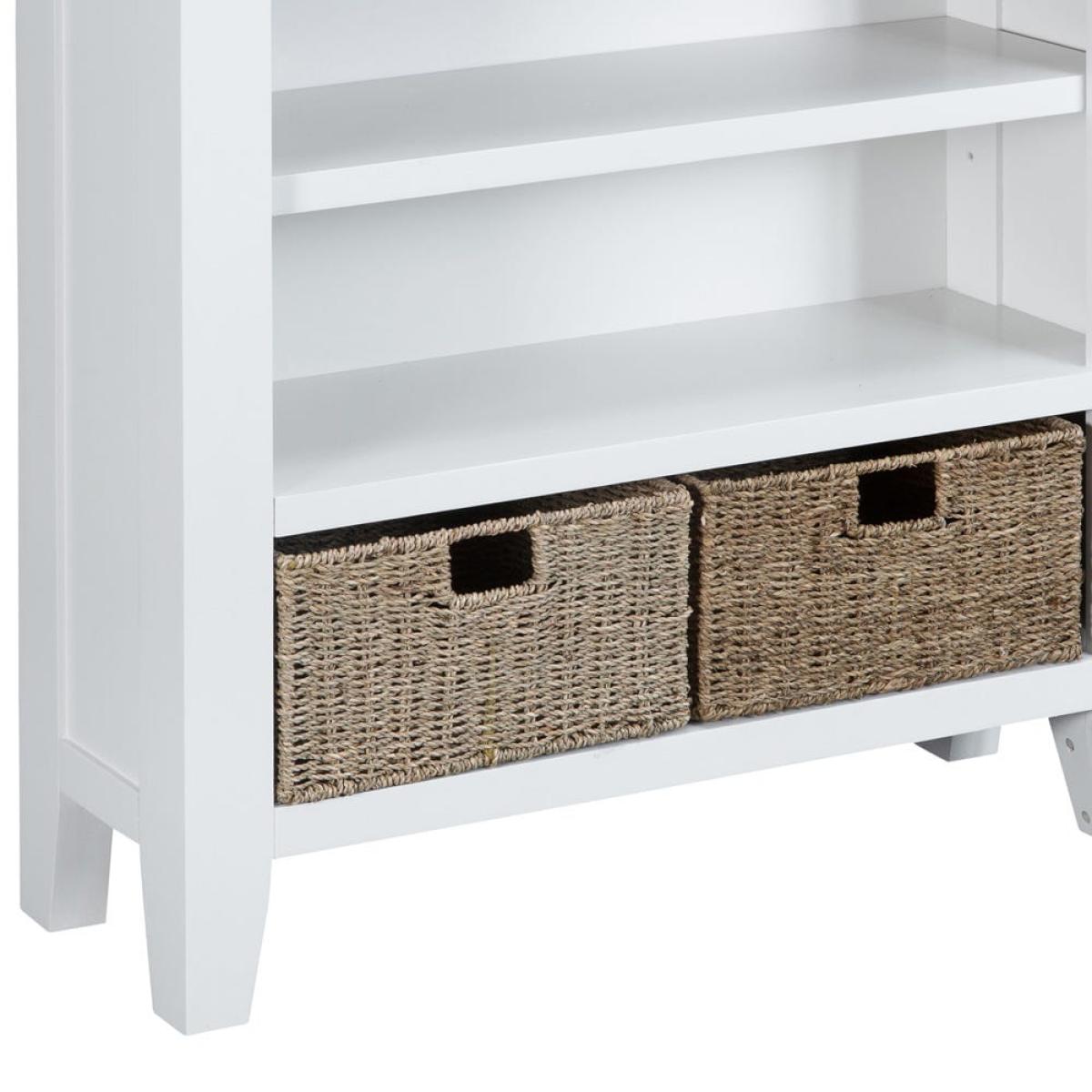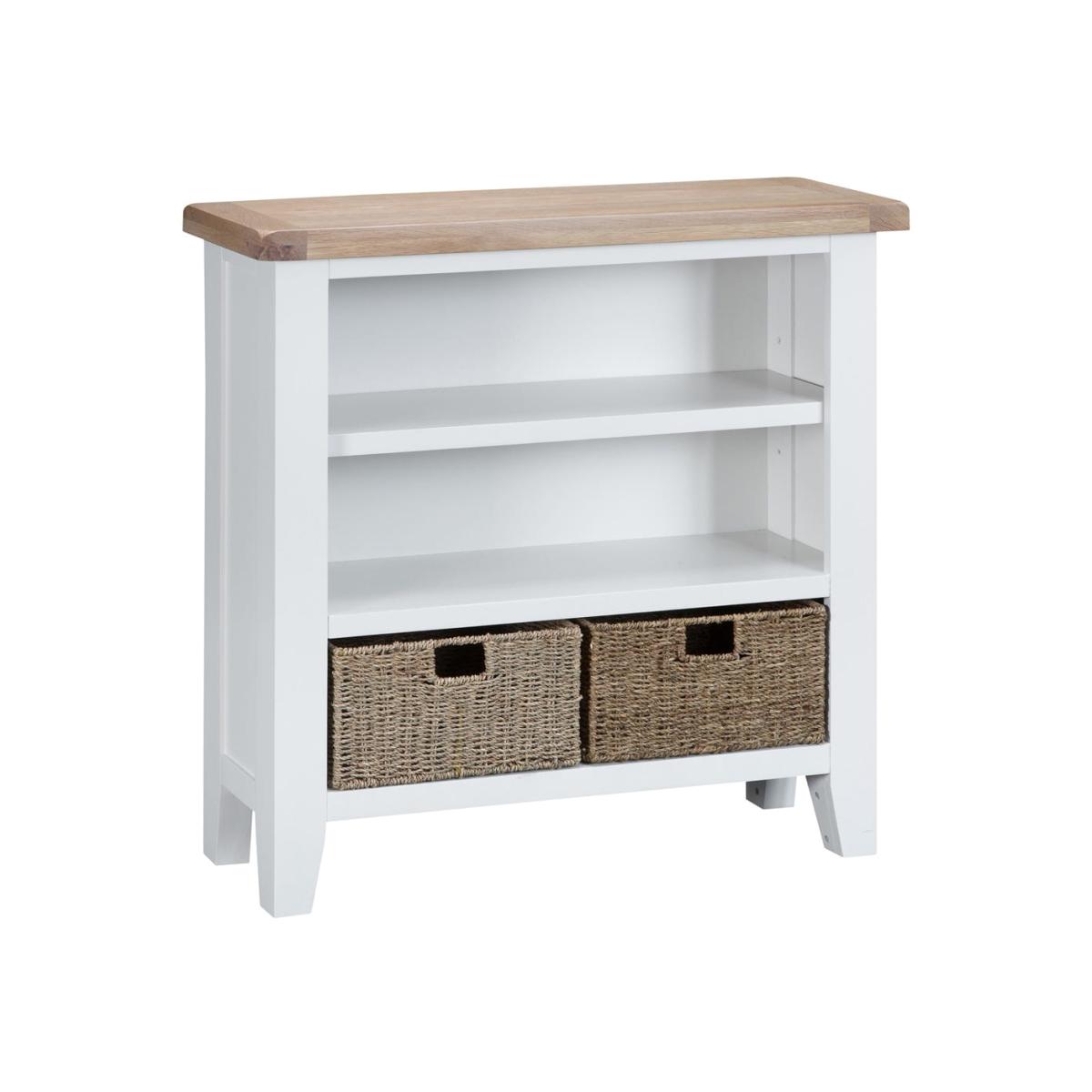 Suffolk White Painted Oak Small Wide Bookcase with Wicker Baskets