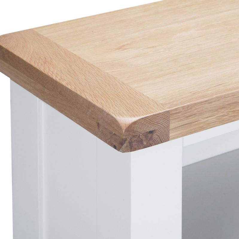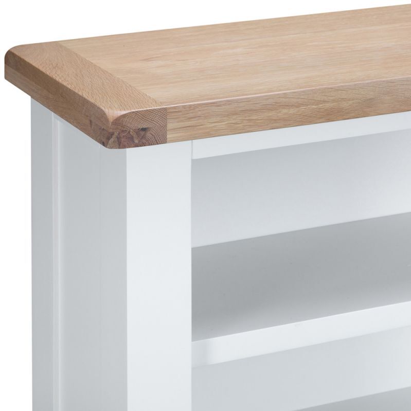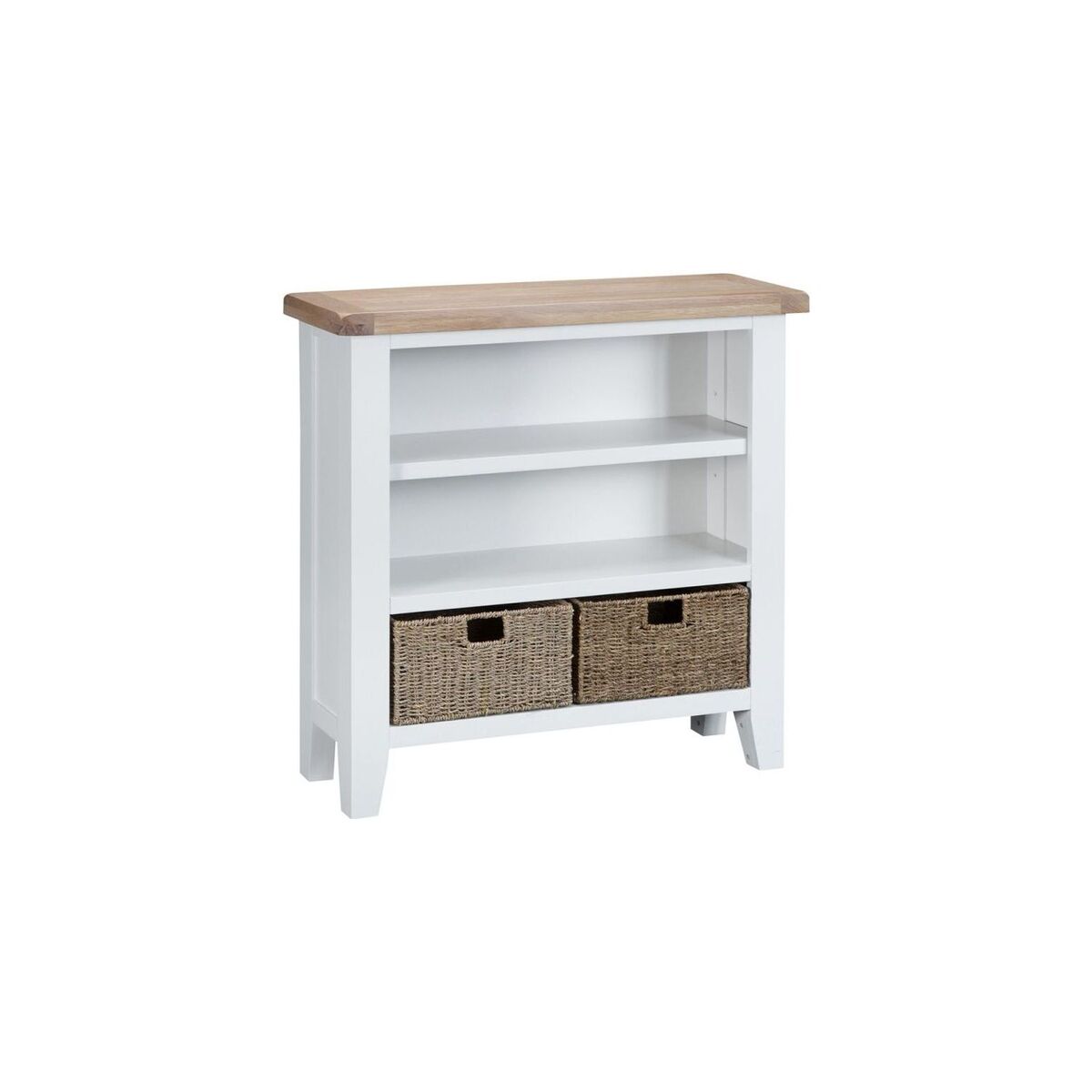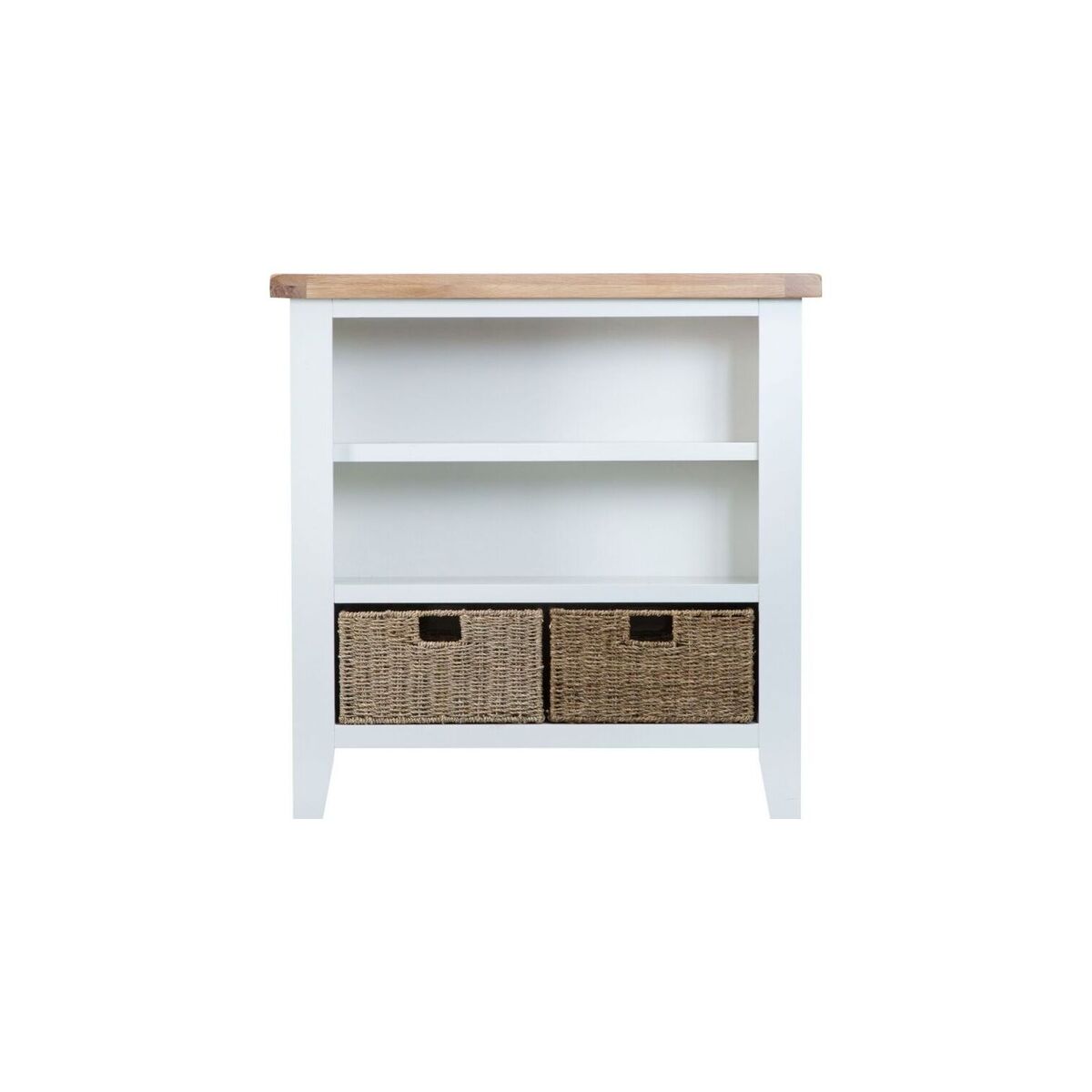 Looking for a product with plenty of width, but not a lot of height? Well, you're in the right place. Introducing the Suffolk White Painted Oak Small Wide Bookcase, a piece that fits this bill perfectly. Featuring a gorgeous fusion between classic and contemporary furniture styles, with a striking chunky oak and real veneer top and a stunning white painted solid pine frame, this Bookcase in on everyone's wish-list. As well as this there is plenty of shelving which is perfect for storing everything from books to CD's, a generous surface area and a rustic wicker basket. The icing on the cake? This product arrives fully assembled so as soon as it's been delivered you're good to go. Feel like you need something bigger? Be sure to check out the Large Bookcase in this range. Or perhaps you want something a bit smaller? Take a look at the Small Narrow Bookcase. This item is also available in Grey from Chiltern Oak Furniture in our Suffolk Grey Painted Oak Collection.