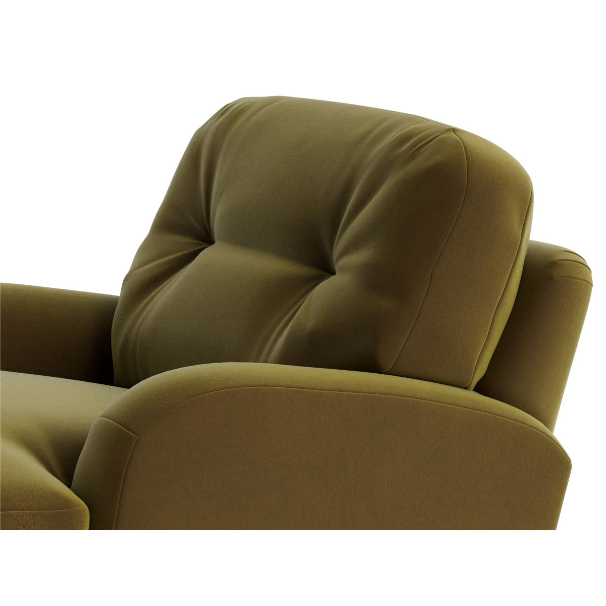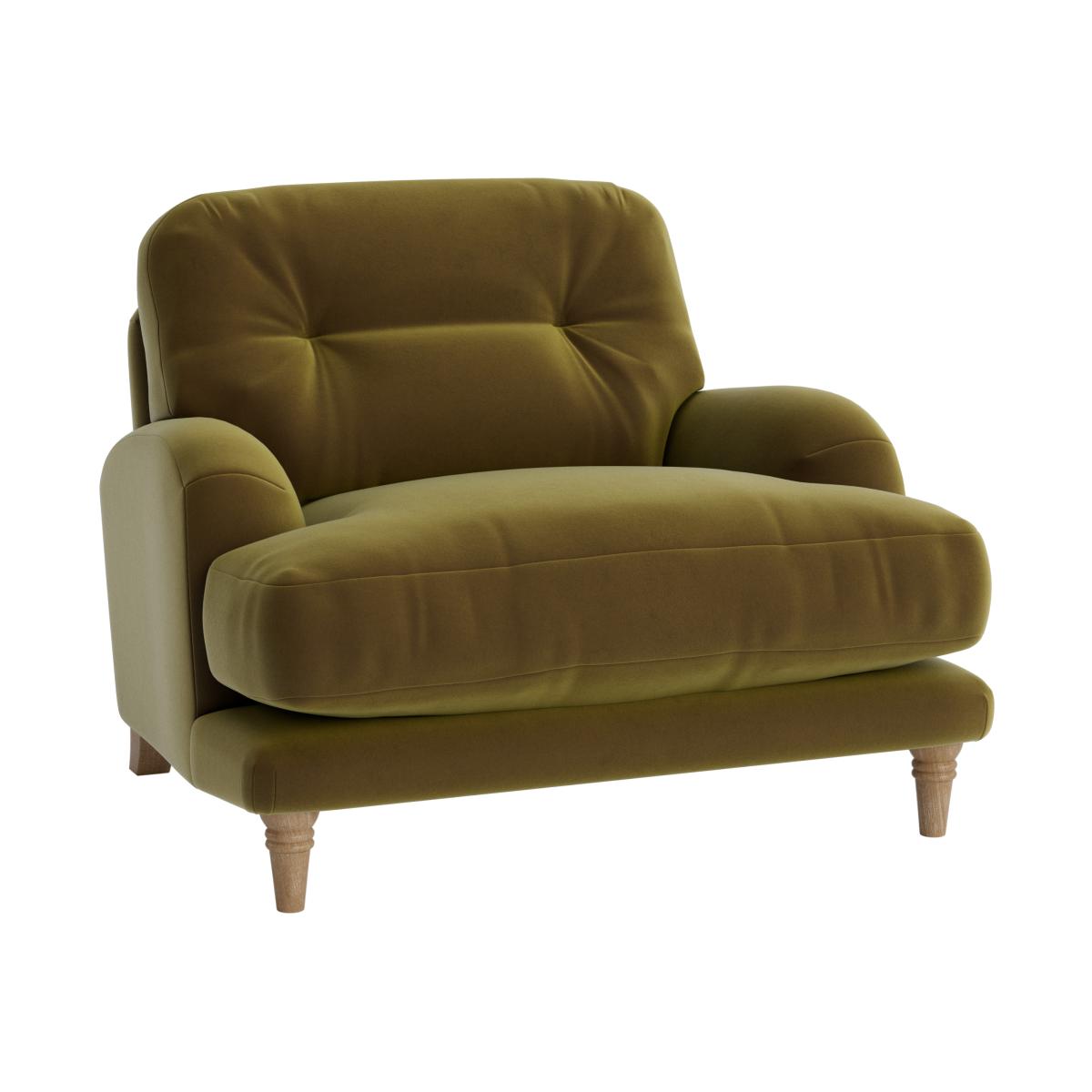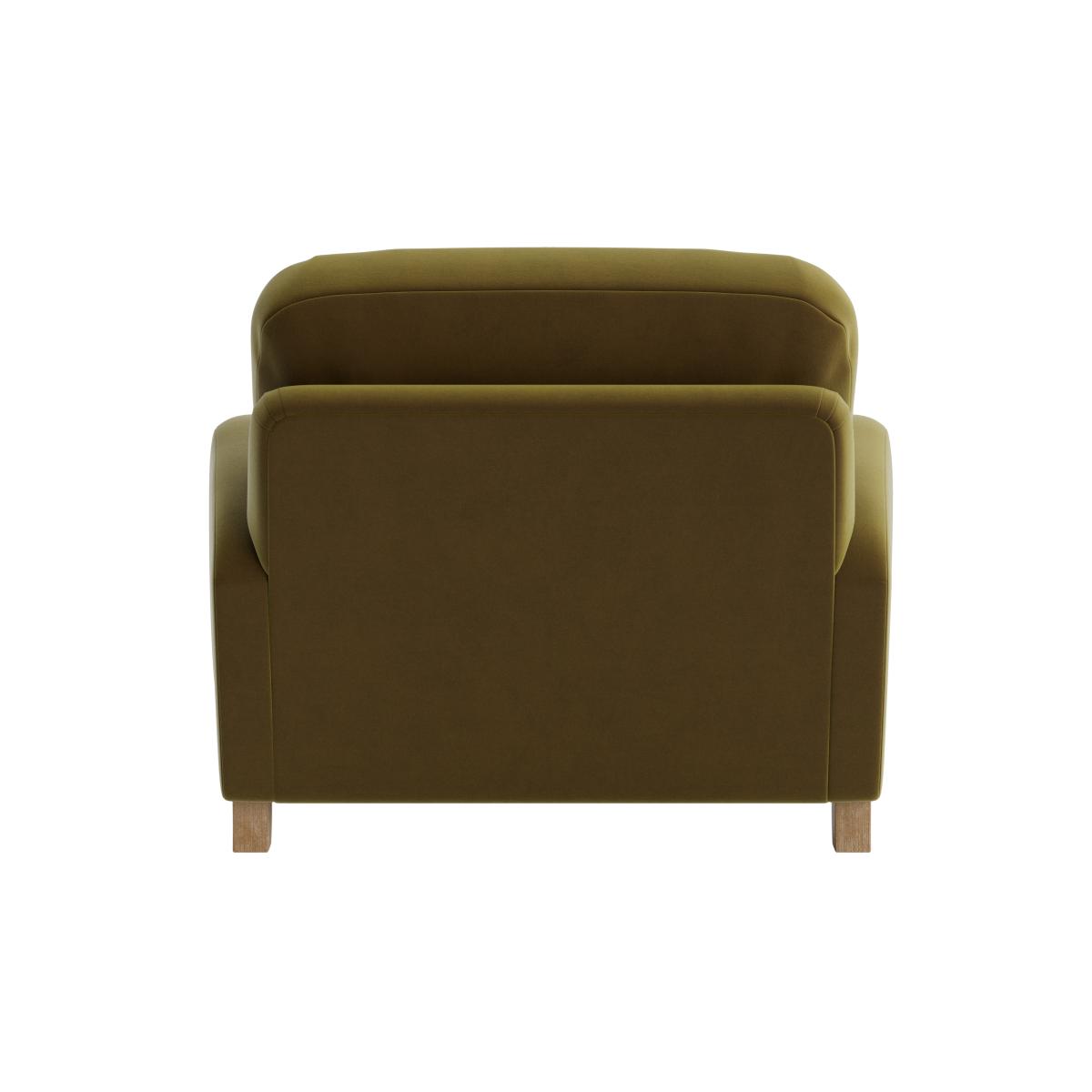 I love this little armchair for its retro charm and cosy appeal - it suits both modern and vintage-inspired interiors. The olive-green velvet adds a touch of luxe while remaining practical, as velvet tends to be more forgiving of casual use. It works well in small living rooms or bedrooms, providing an inviting spot to sit without overwhelming a space. For styling, pair it with warm, textured cushions, perhaps in contrasting shades or patterns, to create visual interest. It also looks fantastic with mid-century coffee tables or bohemian rugs for a layered, lived-in look. Keep accessories minimal to let the rich fabric and shape of the chair shine.