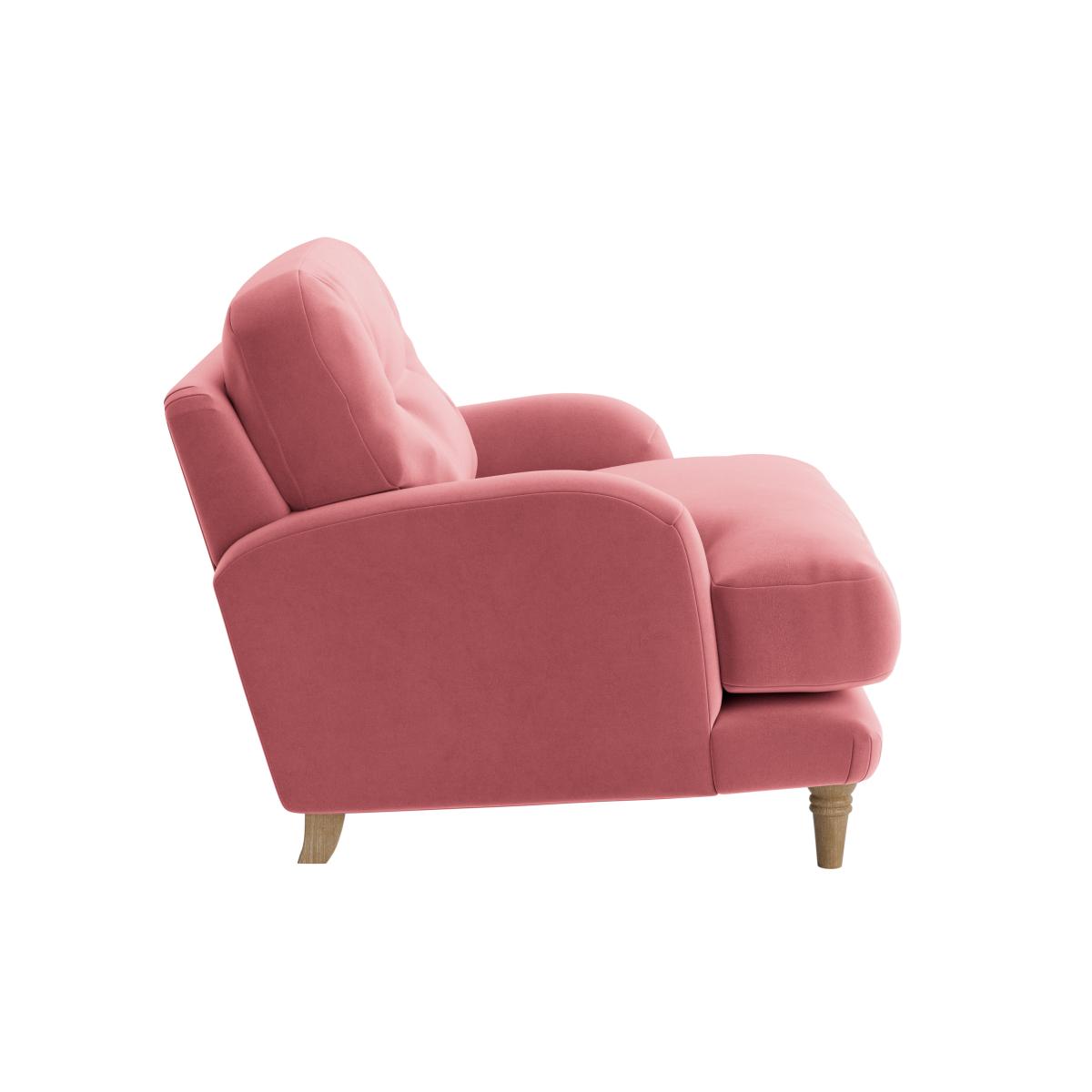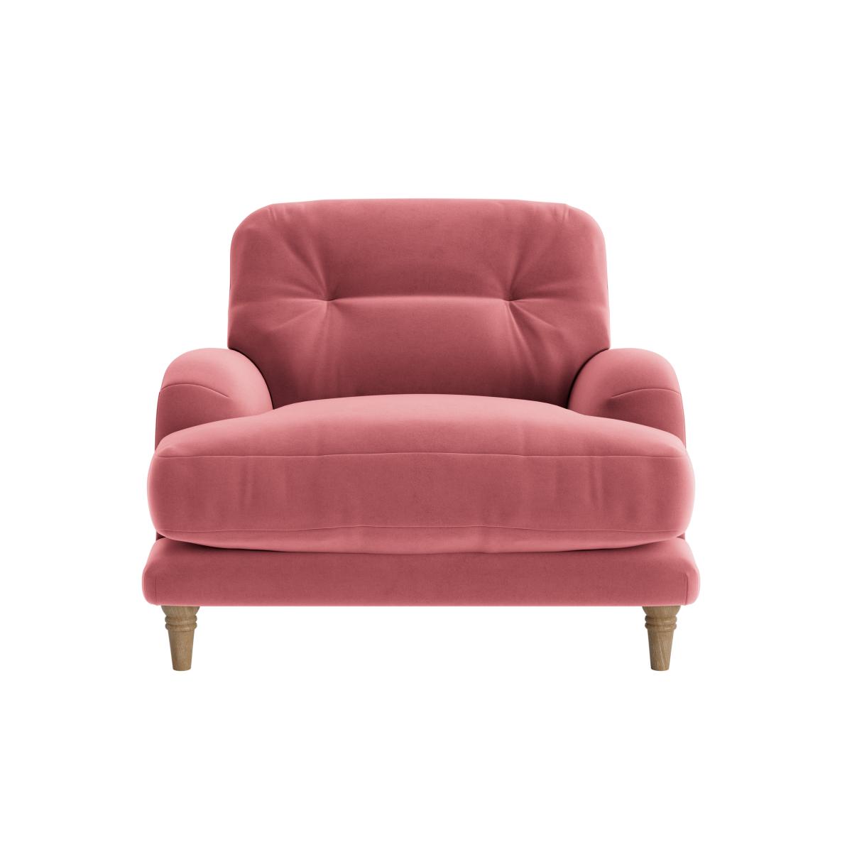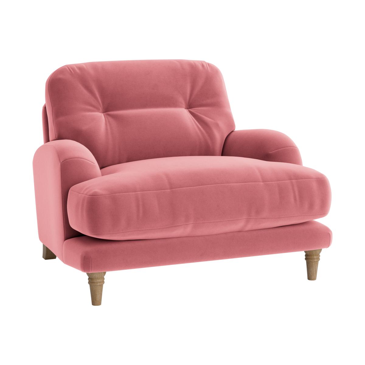 I love this armchair because of its cosy, inviting shape and the soft pink hue, which makes it a great statement piece in a variety of interiors. It works particularly well in contemporary or Scandinavian-style rooms, where its playful colour can be balanced with neutral tones, or in vintage-inspired schemes for a touch of nostalgia. Practical styling tips include pairing it with a textured throw or a couple of patterned cushions to add depth, and positioning it in a corner or beside a side table to create a comfortable reading nook. Its rounded form and plush fabric make it an ideal addition to living rooms or bedrooms that prioritise comfort and a touch of charm.