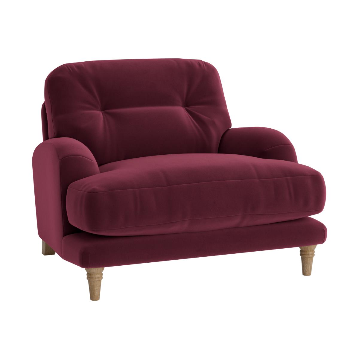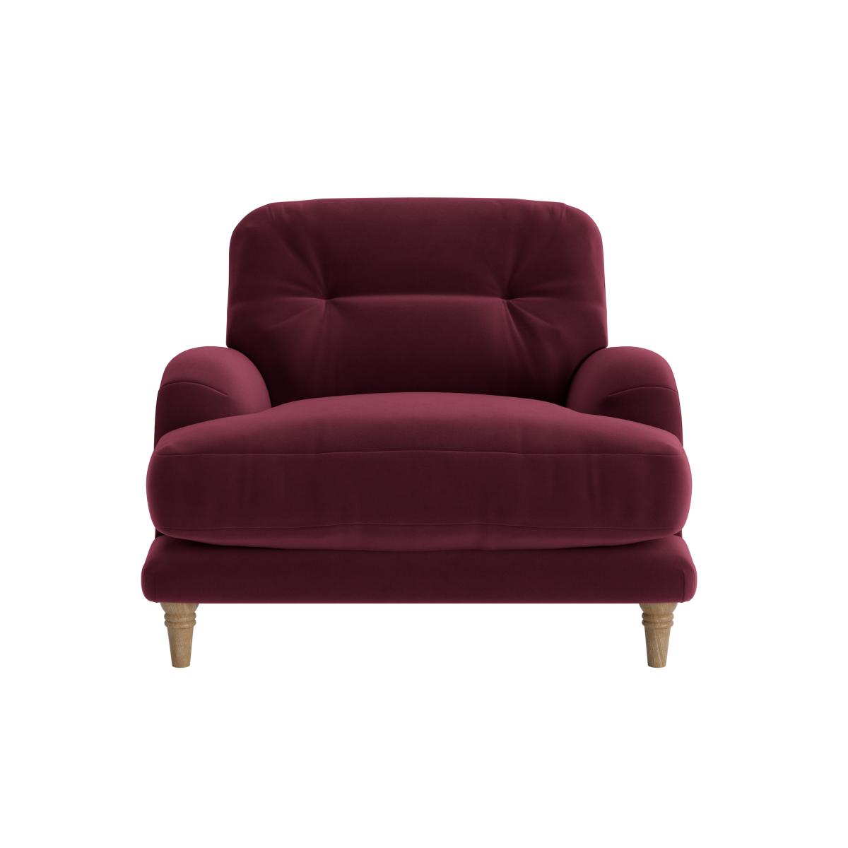 I love the sugar bum armchair for its rich colour and inviting, plush texture, making it a striking statement piece in any lounge or cosy nook. It works particularly well in eclectic or modern interiors where colour pops or in vintage-inspired schemes, thanks to its retro silhouette. To style it effectively, consider pairing it with neutral or patterned cushions to add interest and balance the bold fabric. Practical tips include placing it near a coffee table or beside a floor lamp for added functionality, and keeping the surrounding decor fairly simple to let the chair shine as the focal point. Its comfort and character make it a versatile addition that can elevate both relaxed living spaces and more curated interiors.