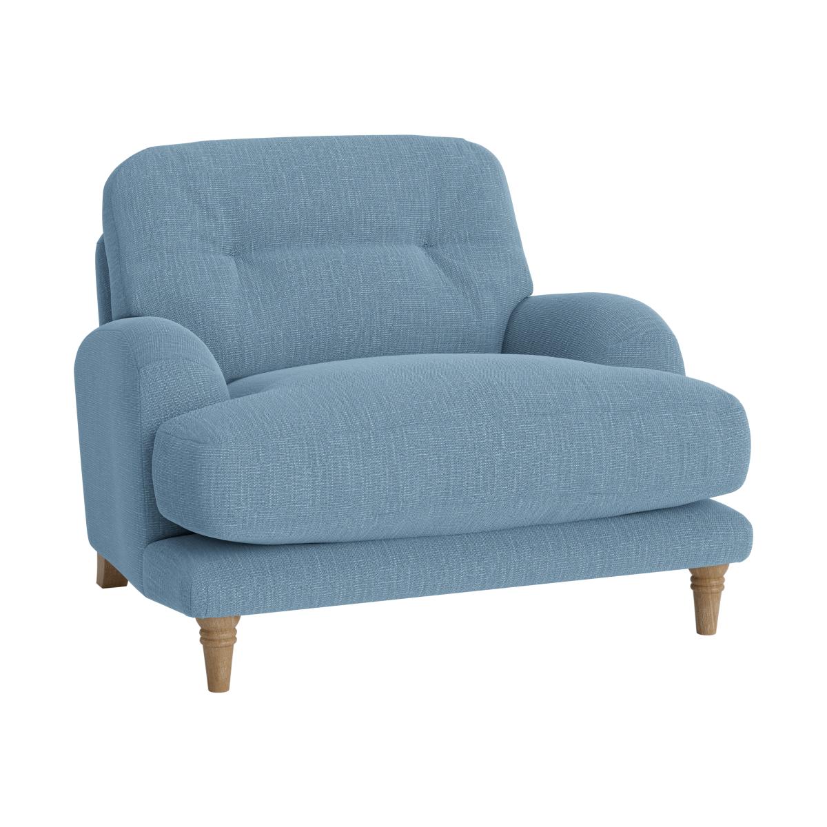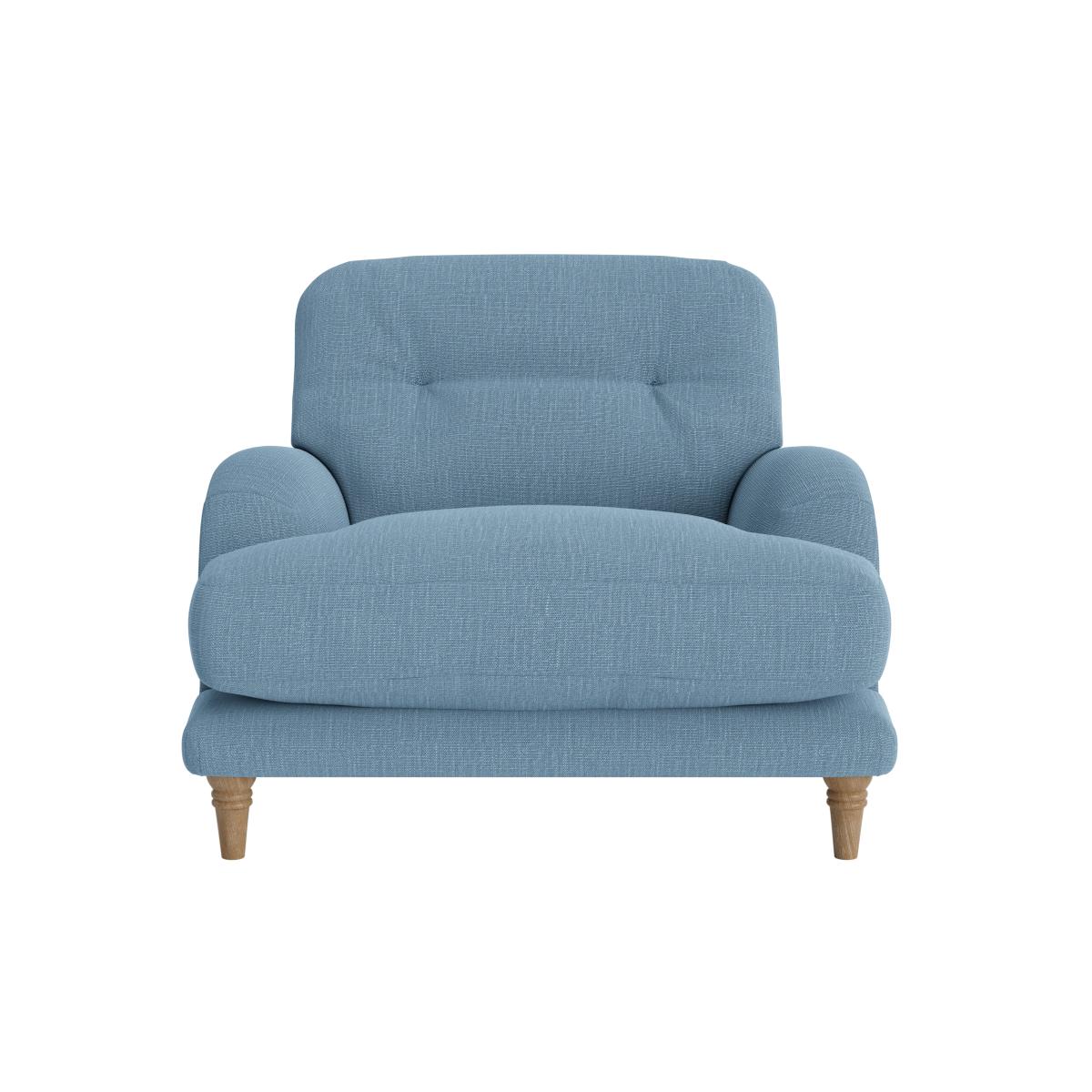 The Sugar Bum armchair is a charming piece that combines comfort with a playful, vintage-inspired look. I love how its soft blue hue can brighten up a neutral space or complement more colourful surroundings. It works particularly well in cosy living rooms, reading nooks, or even a relaxed bedroom corner. For styling, try pairing it with textured cushions or a patterned throw to add depth, and position it near a side table with a statement lamp for a functional yet inviting vibe. Its compact size also makes it versatile for smaller spaces or as an accent chair in larger rooms.