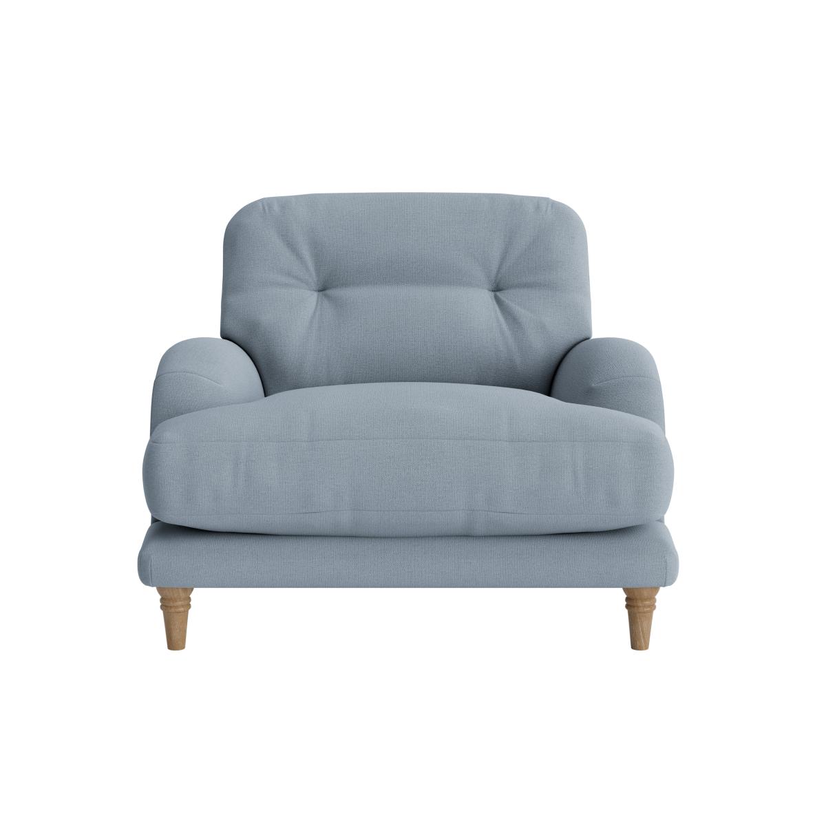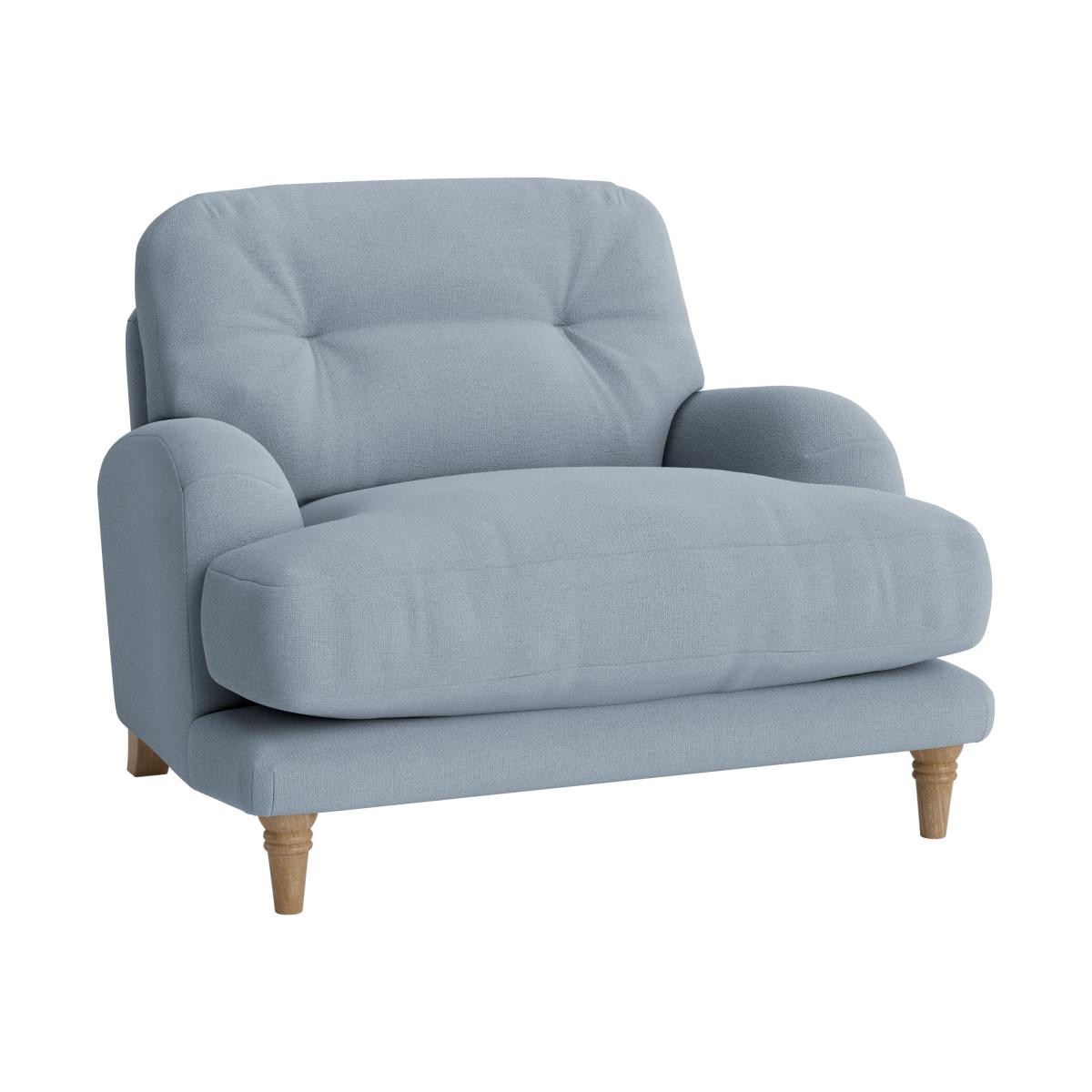 I love this armchair for its cosy, inviting silhouette and soft pastel tone, making it perfect for adding a touch of colour to neutral interiors. The rounded, cushioned design works well in both traditional and contemporary spaces, especially in cosy living rooms, reading nooks, or bedrooms. For styling, consider pairing it with a textured throw and a mix of patterned cushions for a layered look. It's also practical to place it near a side table and a warm lamp for a welcoming, functional setup. Its versatile size makes it suitable for smaller rooms without overpowering the space, offering comfort and style in equal measure.