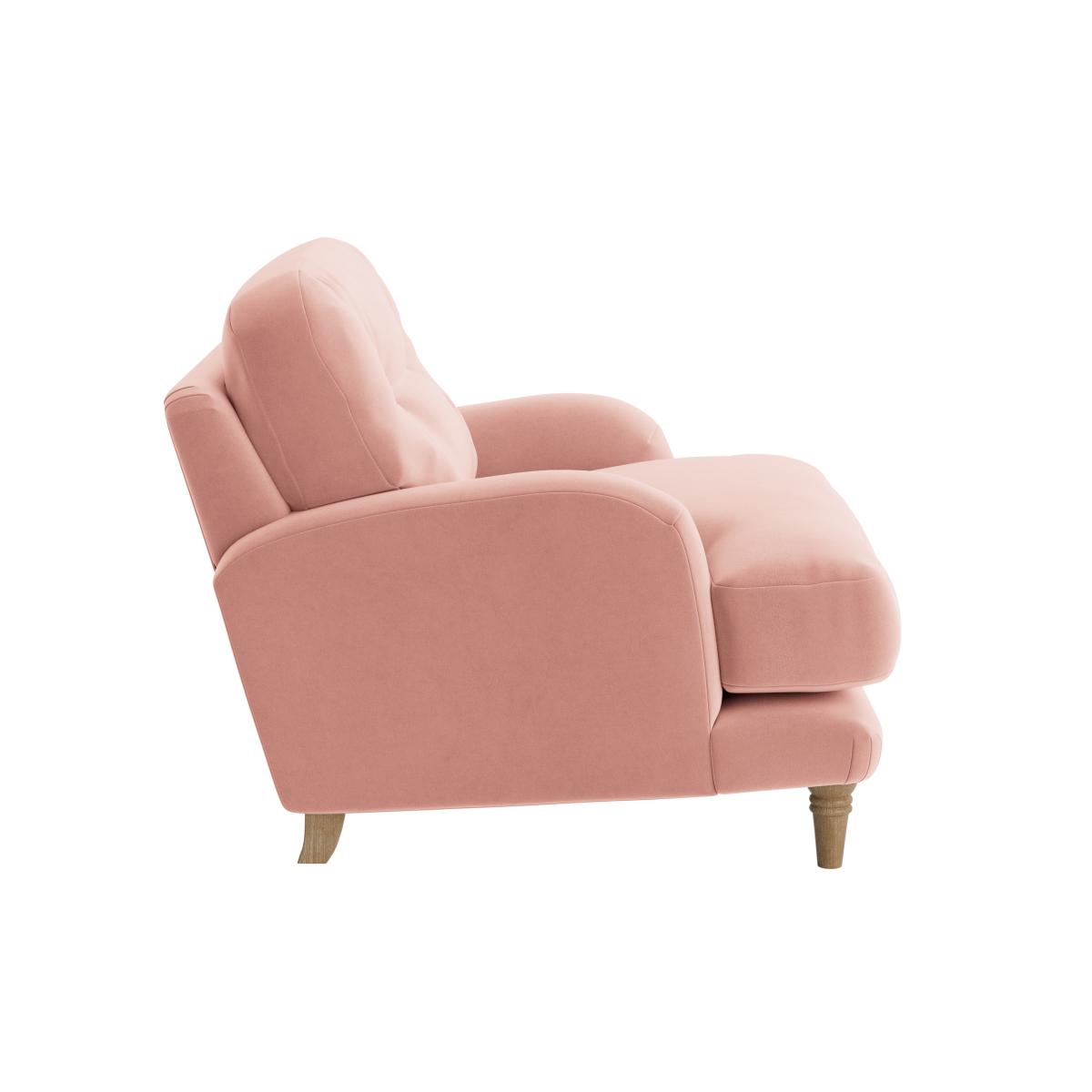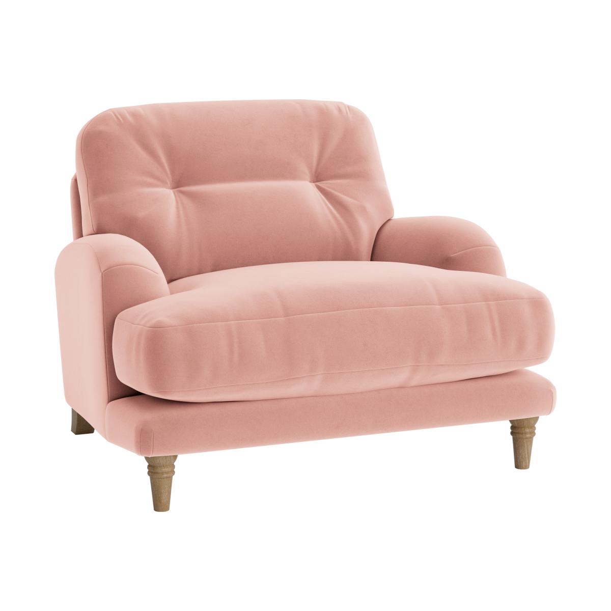 I love this armchair for its playful yet versatile design-it’s a real statement piece that can soften the mood of any room. The soft pink hue is perfect for adding a subtle colour pop in neutral or muted interiors, but it also works well styled with bold patterns or contrasting textures. It’s ideal for cosy corners in living rooms or bedrooms, and works equally well in a vintage-inspired or contemporary space. For styling tips, consider pairing it with a layered rug and simple throw cushions to create a welcoming vibe, or add a sleek side table nearby to enhance its practicality. Its approachable size and inviting look make it a great addition that balances style with comfort.