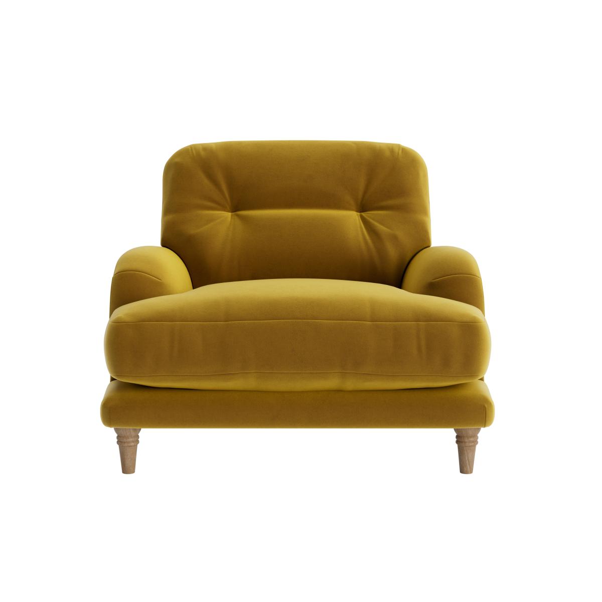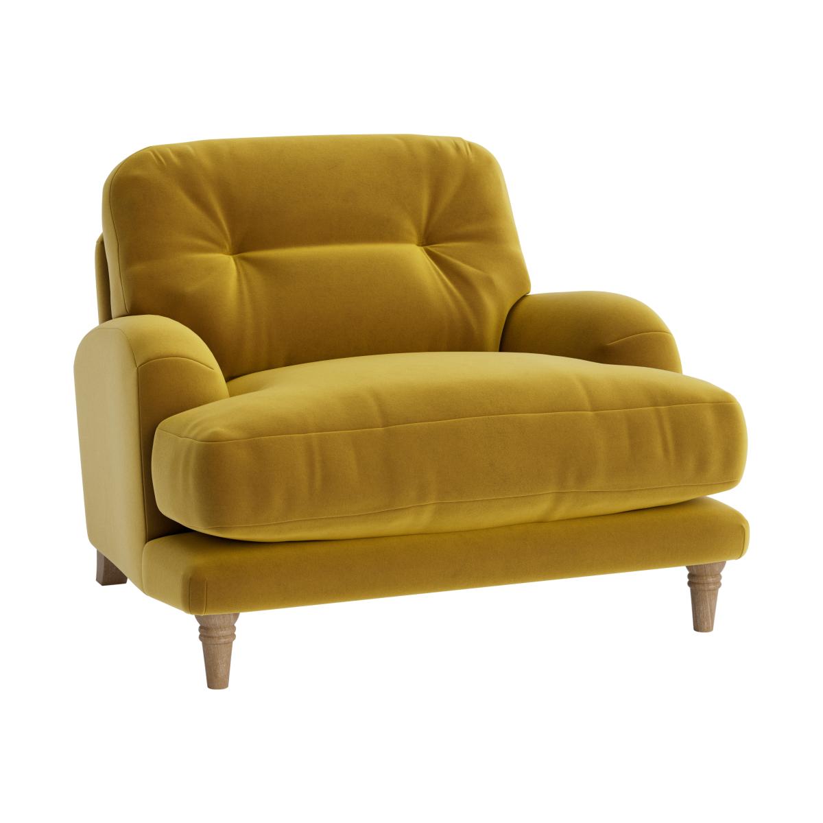 I love this armchair for its playful yet versatile style. The mustard hue adds warmth and character, making it a great statement piece, especially in eclectic or mid-century inspired interiors. It works well in both living rooms and bedrooms, where it can serve as a cosy reading nook or an accent seat. When styling, consider pairing it with neutral or patterned cushions to create depth, and add a textured throw for extra comfort. Its compact size also makes it ideal for smaller spaces, and I’d suggest pairing it with wooden or metal accents to enhance its vintage charm. Overall, it’s a lively addition that can instantly elevate a room’s character while remaining practical and welcoming.