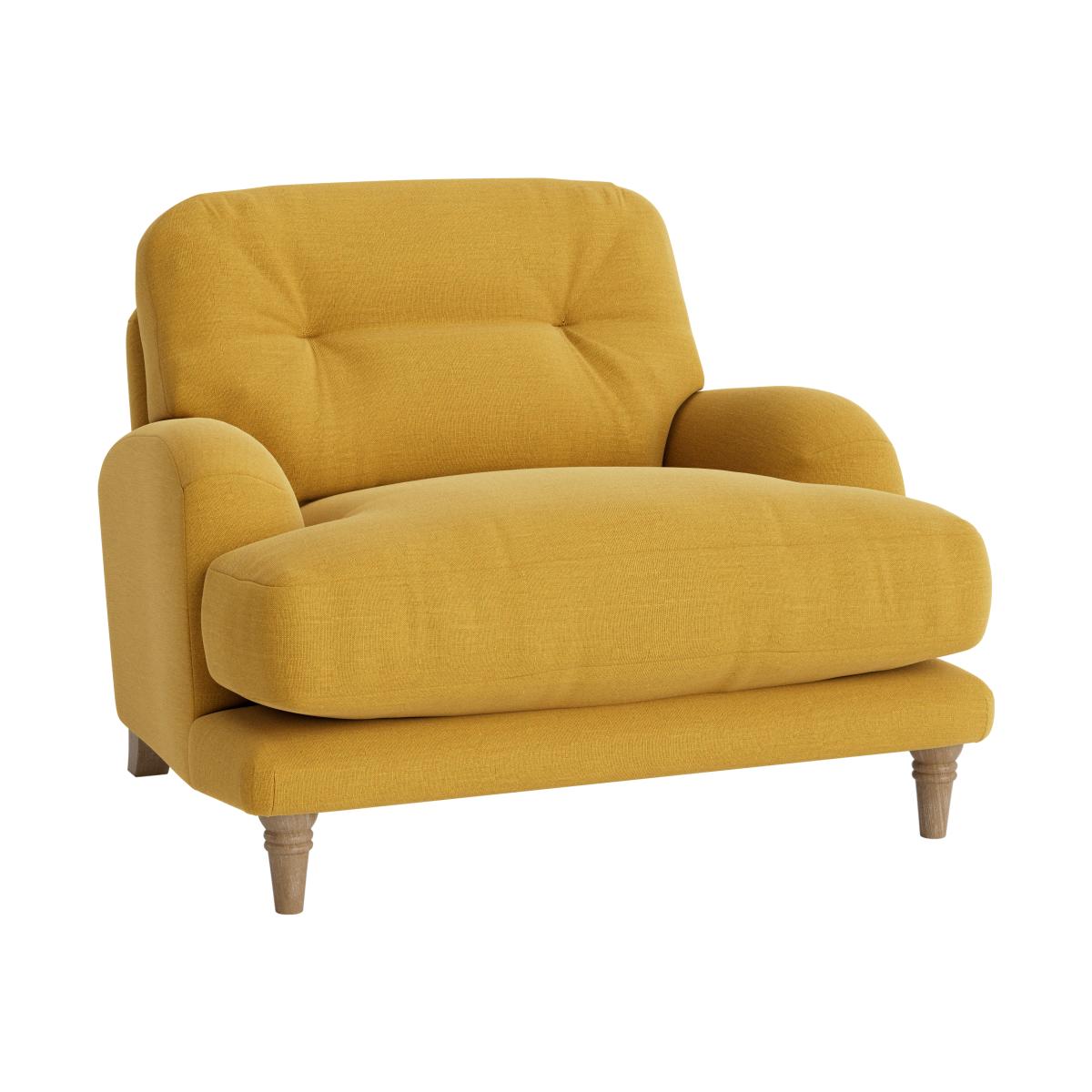 I love this armchair because of its bold, sunny colour and approachable design, making it a great statement piece without overwhelming a space. The Sugar Bum has a cosy yet modern silhouette, which works beautifully in both contemporary and vintage-inspired interiors. It pairs well with neutral tones for a pop of colour, or with other vibrant shades in a playful, eclectic scheme. For styling tips, try layering with textured cushions or a throw to soften its look, and position it in a corner to create a inviting reading nook or focal point in a living room. It’s versatile enough to mix with wood, brass, or matte black accents, making it adaptable to various interior styles.