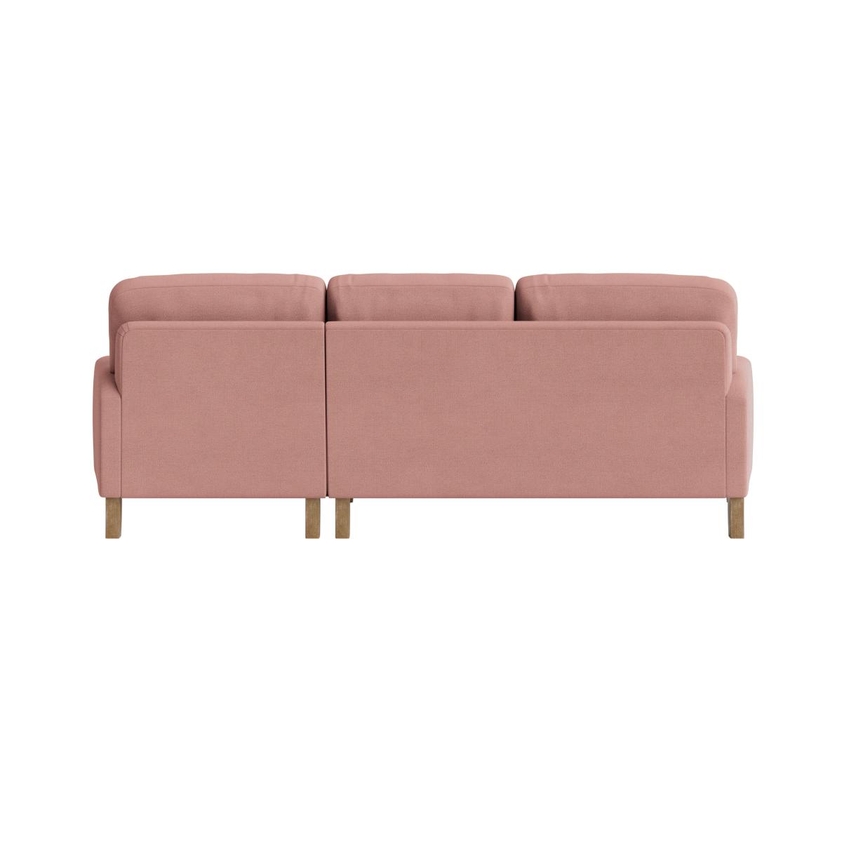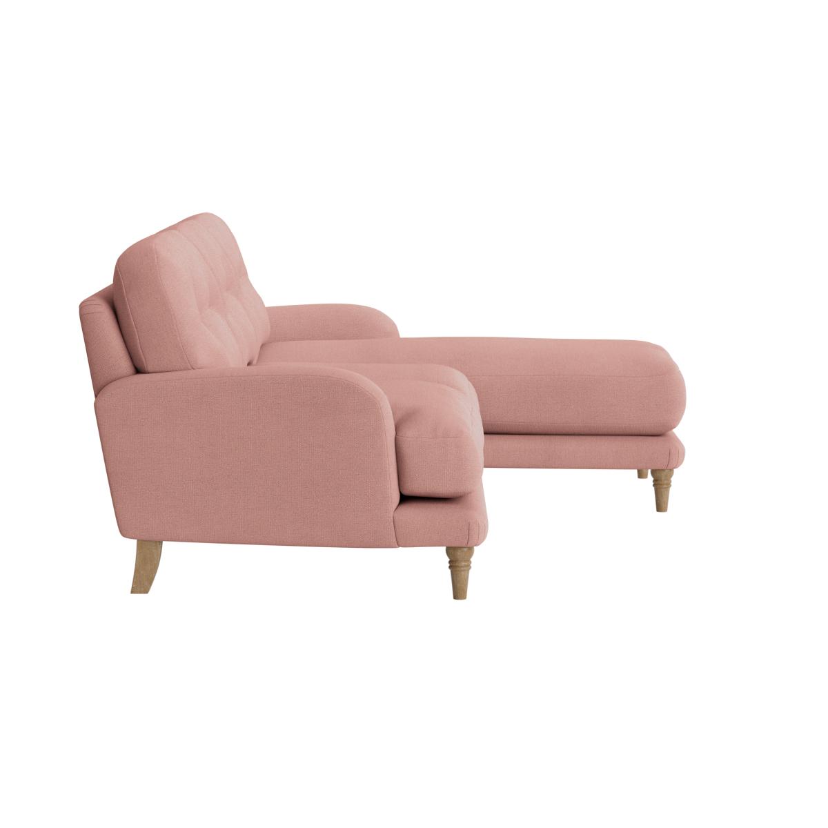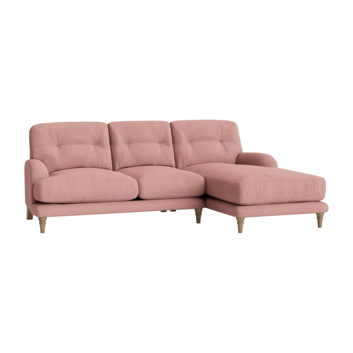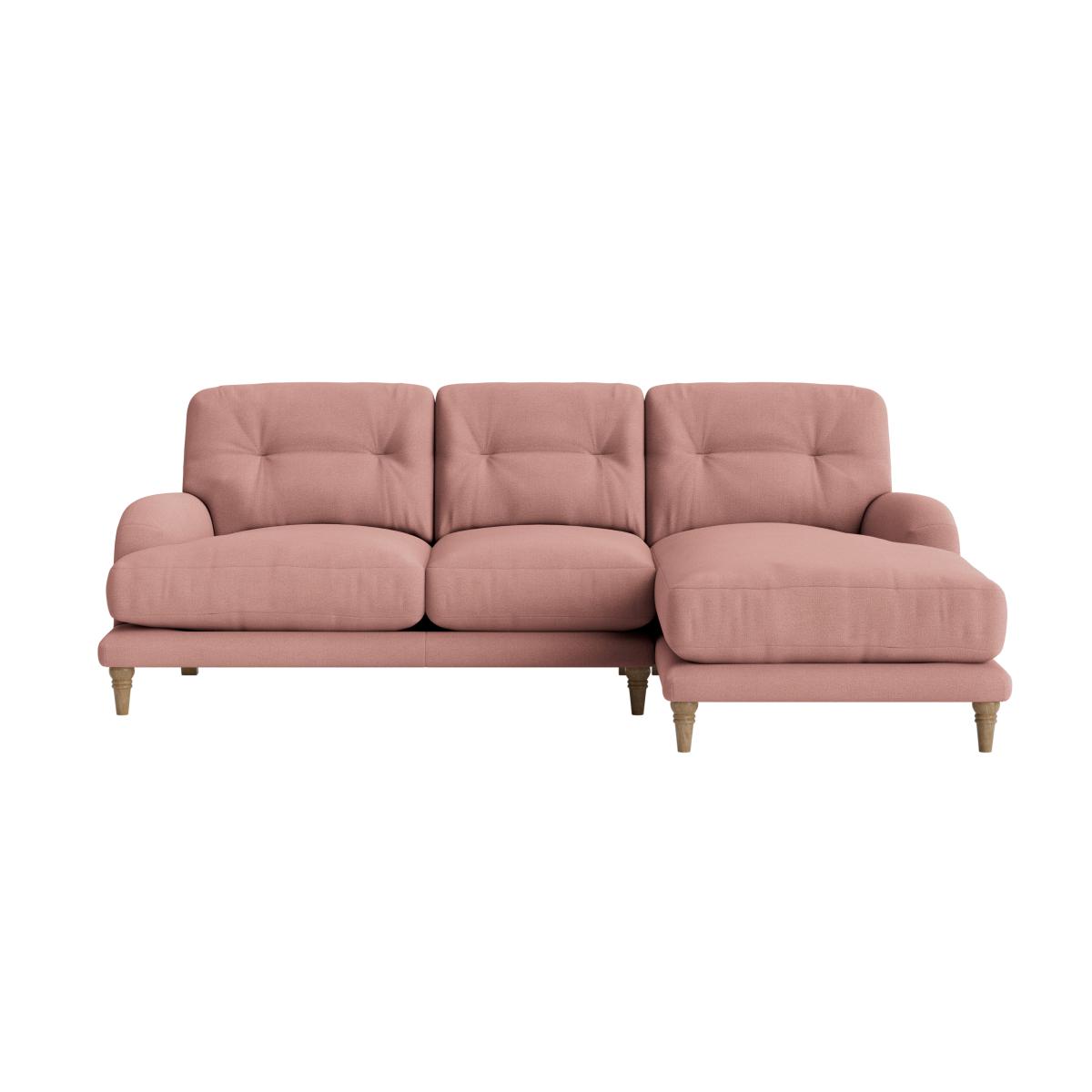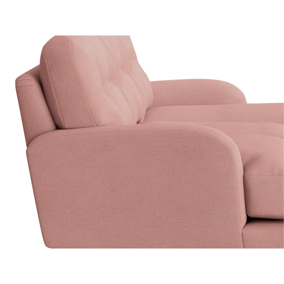 I love this pink corner sofa for adding a touch of softness and femininity to a variety of interiors. Its relaxed, modern silhouette makes it versatile enough for both contemporary and Scandinavian-inspired spaces, but it also works beautifully in eclectic or vintage settings when paired with bold accessories. Practical styling tips include opting for cushions in contrasting textures or colours to create visual interest, and layering throws for added comfort. This piece is ideal for cosy family rooms or open-plan living areas, where its generous shape encourages socialising. To keep the overall look balanced, keep surrounding decor simple and let the sofa be the statement piece.