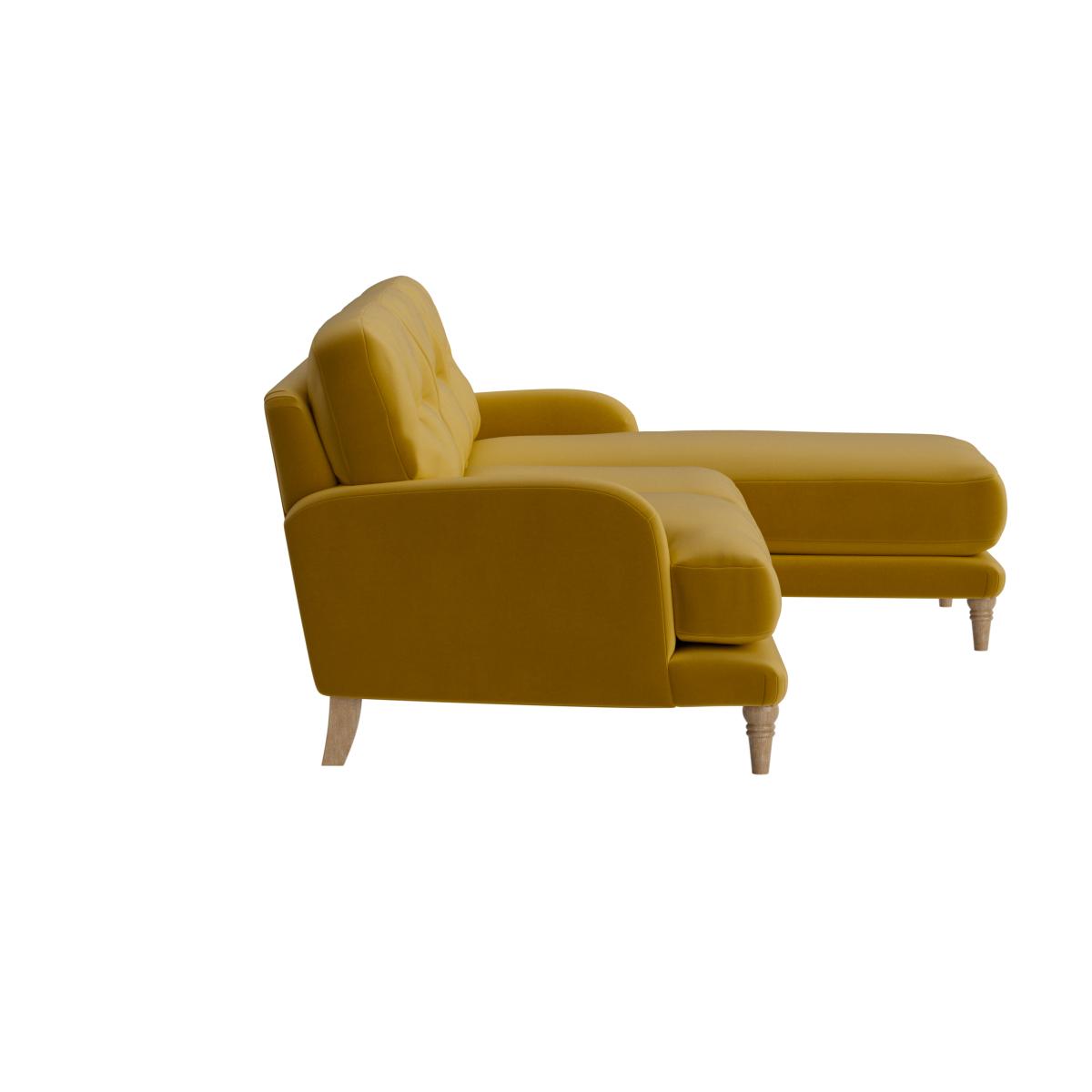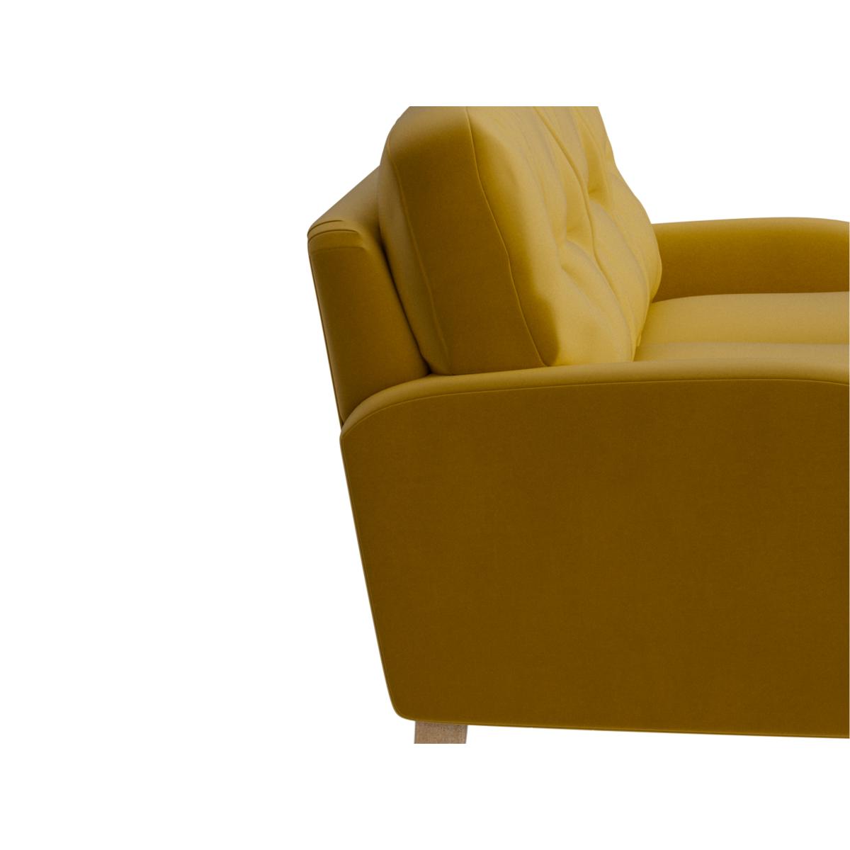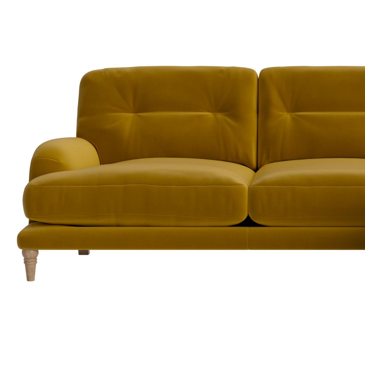 The Sugar Bum is a vibrant choice for those looking to add a focal point to a living space. Its bold mustard tone works well in contemporary interiors, especially when paired with neutral or muted tones to let the sofa stand out. Ideal for larger rooms, this corner sofa maximises seating and encourages socialising, making it perfect for family rooms or open-plan living areas. When styling, consider adding textured cushions or throws in complementary colours to soften the look and create visual interest. Its streamlined silhouette and wooden legs give it a modern yet timeless feel, making it adaptable across a variety of schemes from mid-century modern to eclectic.