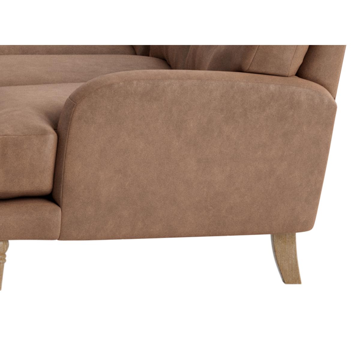 I love this sofa’s cosy, inviting vibe - it’s perfect for creating a lived-in, relaxed feel in both modern and eclectic interiors. The neutral, warm tone lends itself well to layered textiles, like patterned cushions or a plush throw, to add personality. It works especially well in open-plan living spaces or larger rooms where you want to maximise seating without overwhelming the space. Practical styling tips include pairing it with a mix of vintage and contemporary accents, and using a textured rug underneath to anchor the look. Its sleek wooden legs give it a light, airy feel, making it versatile enough to suit various decor styles while still being a statement piece.