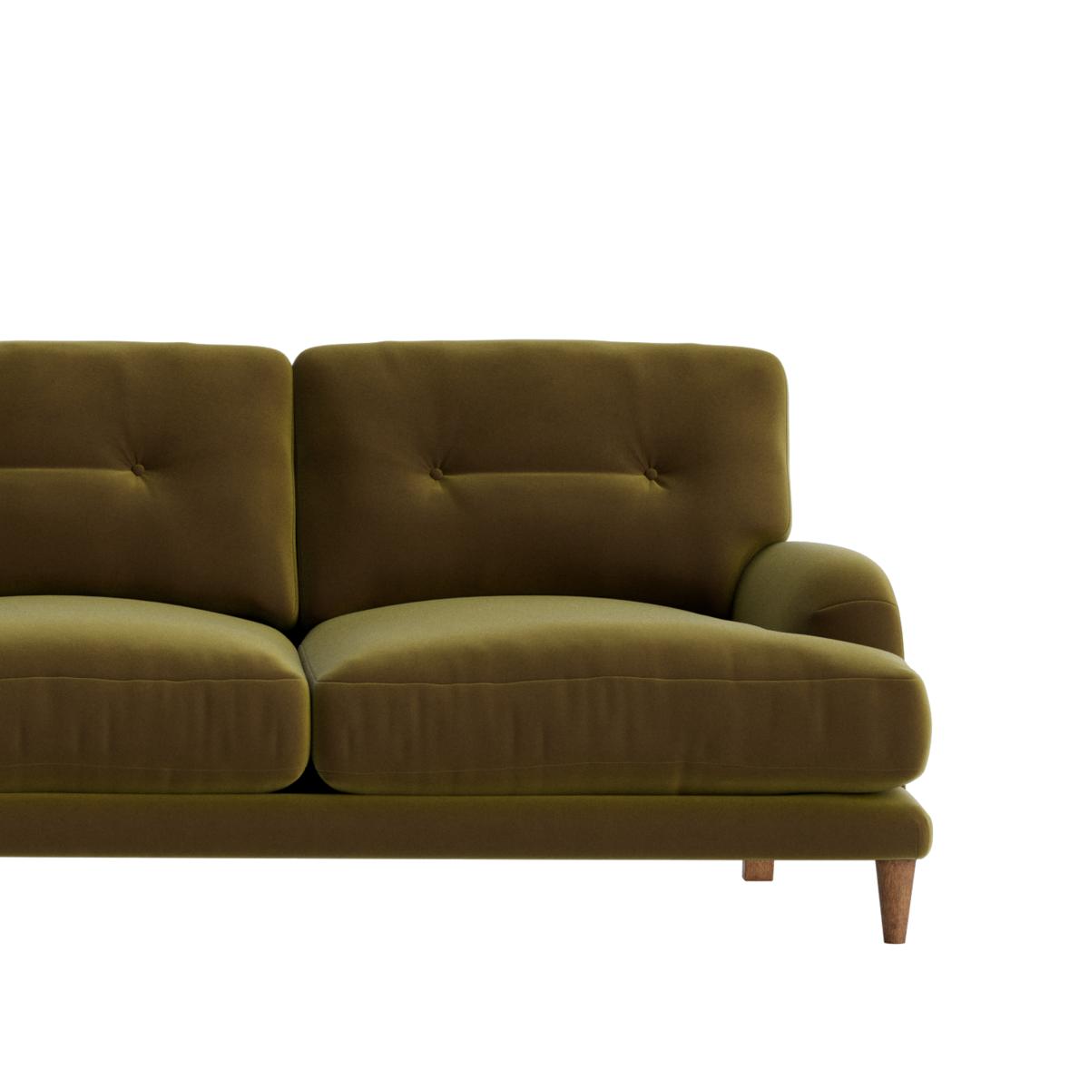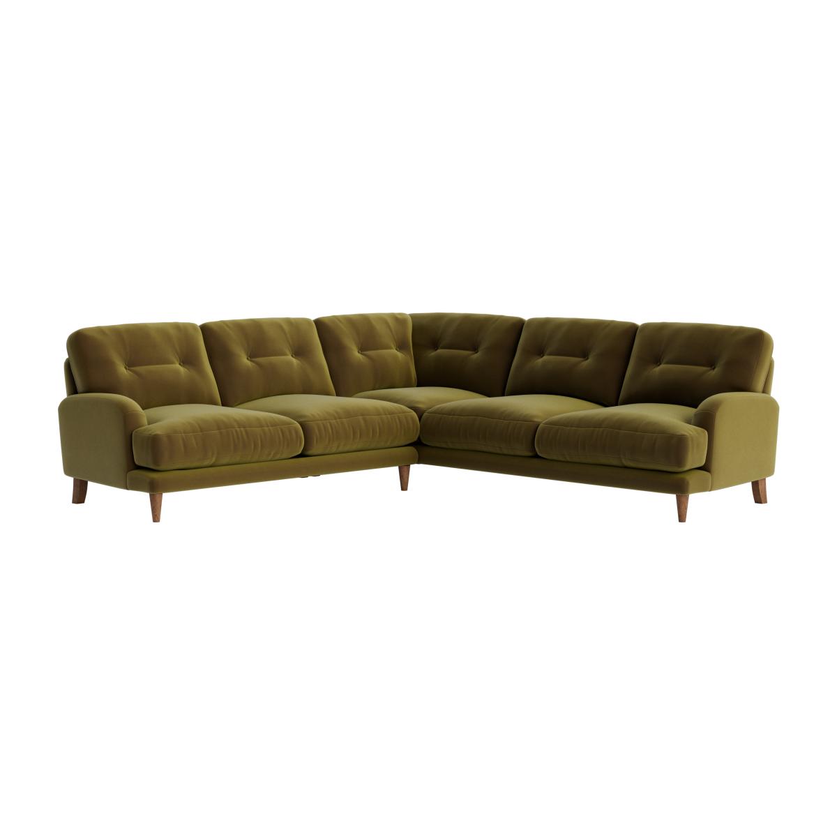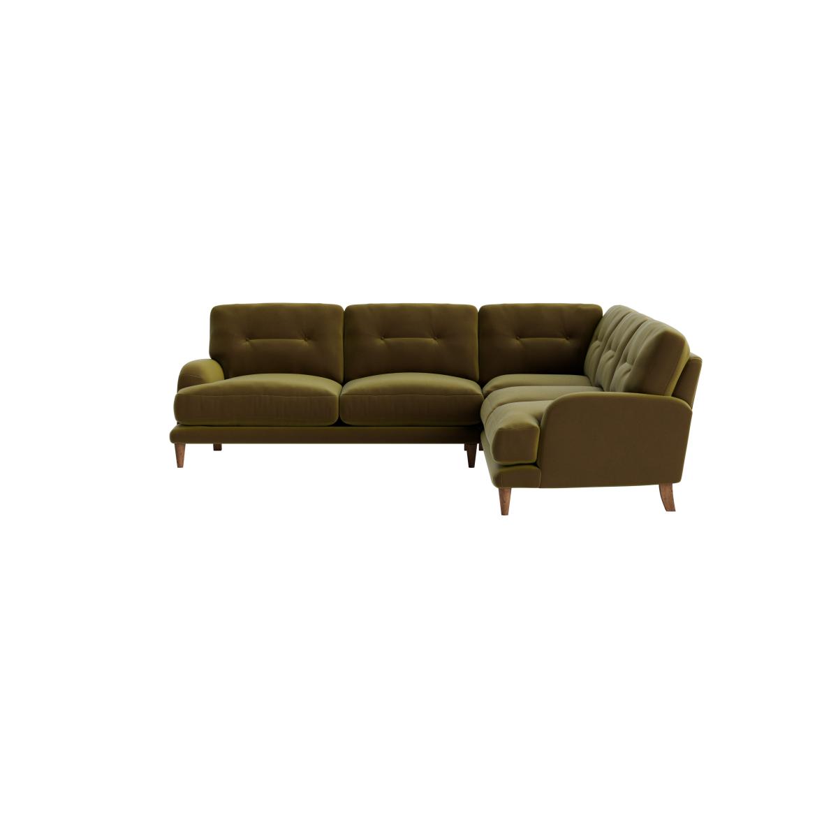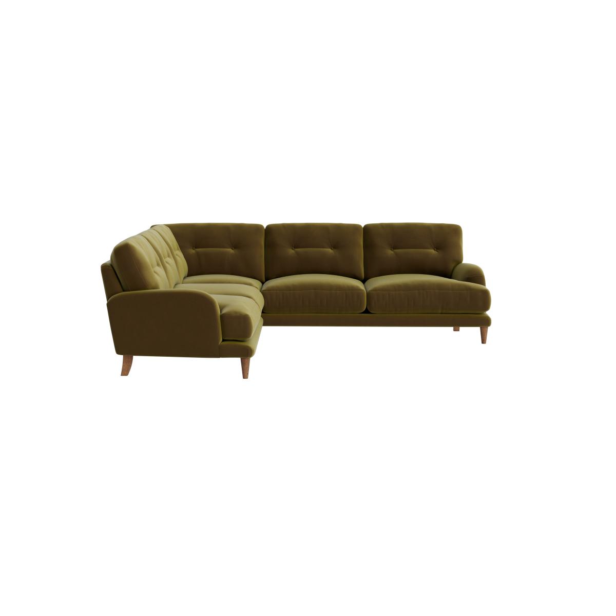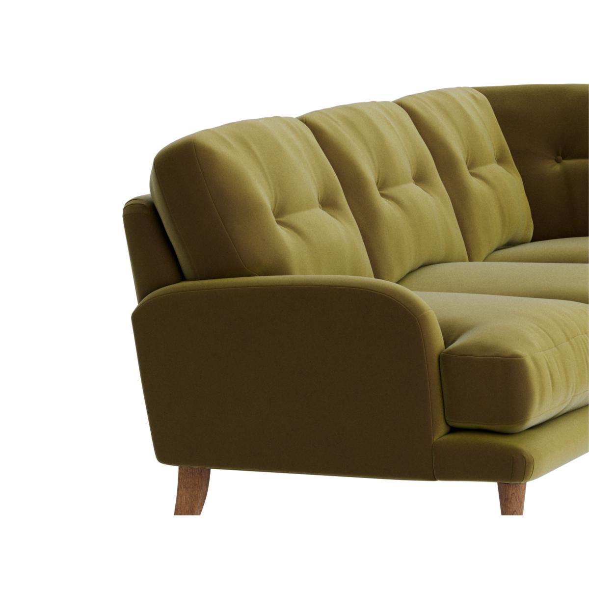 I love this corner sofa for its retro-inspired vibe and versatile shape, making it a great anchor piece for a variety of interiors. It works particularly well in mid-century, boho, or eclectic styles thanks to its tufted detailing and soft olive hue. To style it effectively, consider adding a mix of textured cushions and throws in complementary colours to create a cosy yet stylish look. Keep the surrounding decor simple to let the sofa stand out or add a statement rug beneath to define the seating area. Its curved form invites relaxed lounging, so pair it with low coffee tables and some lush plants for a welcoming, lived-in feel.