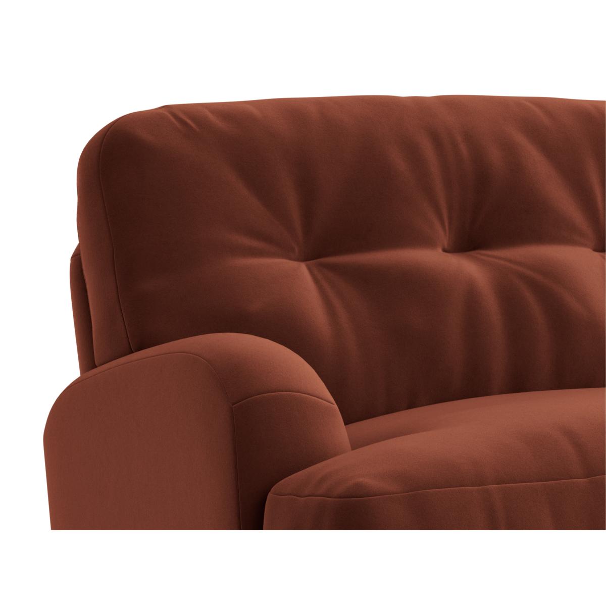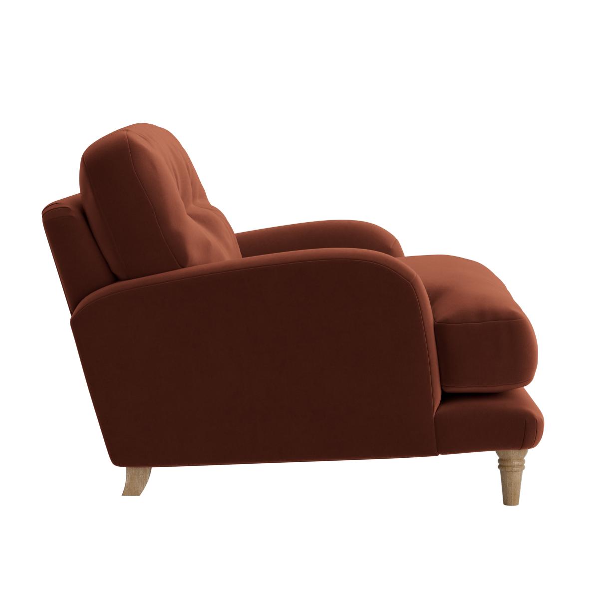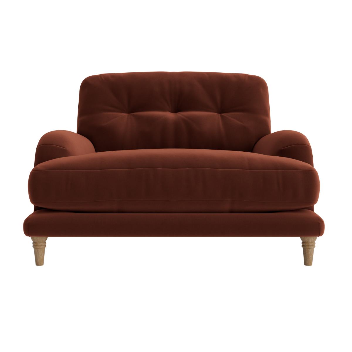 I love the sugar bum because of its inviting, vintage-inspired design that works beautifully in both classic and contemporary interiors. Its warm, inviting colour is very versatile and pairs well with neutral tones or richer, layered palettes. The slightly curved arms and soft upholstery make it perfect for cosy living rooms, especially when styled with textured cushions or throws for added comfort. Practical styling tips include placing it alongside a small side table or lamp to enhance its cosy feel, and balancing it with a mix of pattern and texture in surrounding accessories. It works particularly well in eclectic, boho, or mid-century spaces where its characterful shape can be showcased without competing with other statement pieces.