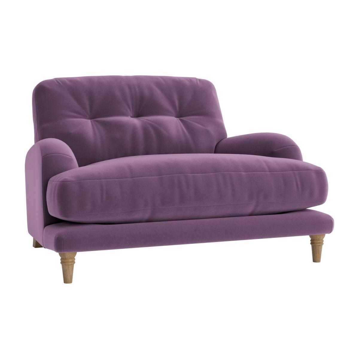I love this little love seat for its cosy, inviting form and versatile colour. It works particularly well in eclectic or modern interior styles, adding a splash of personality without overwhelming the space. Its soft, plush fabric makes it perfect for creating a relaxed seating corner, especially in smaller living rooms or quiet reading nooks. Practical styling tips include pairing it with patterned cushions or adding a textured throw to introduce more layers of comfort. It also works well alongside neutral or bold wallpapered walls, where its colour can either be a statement piece or a complementary accent. Its compact size makes it ideal for maximising space without sacrificing style.