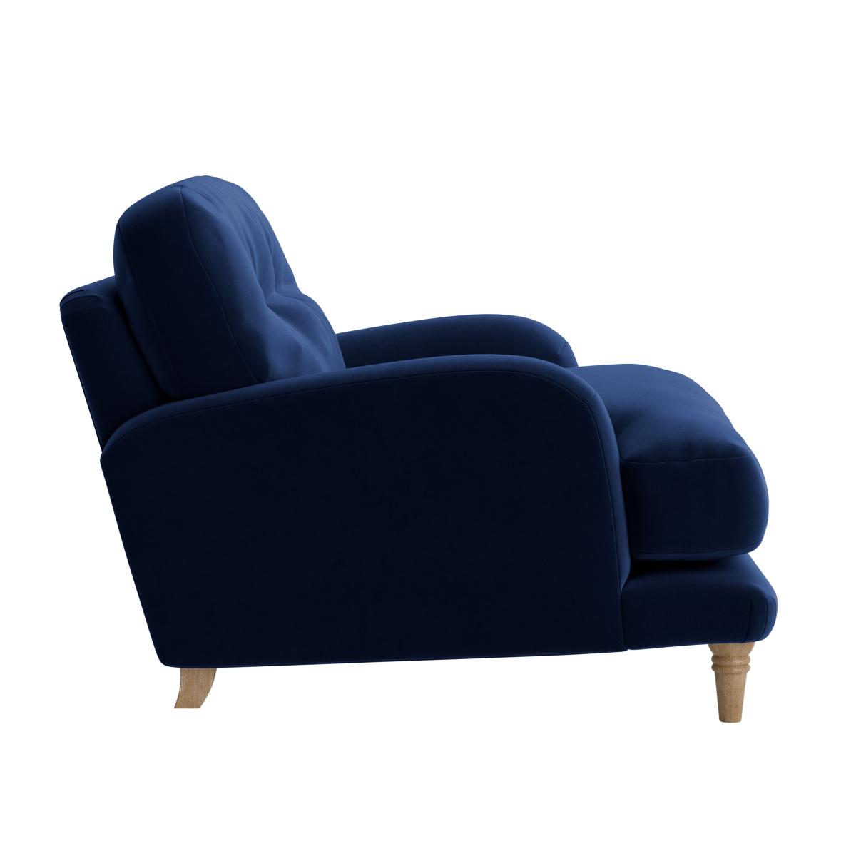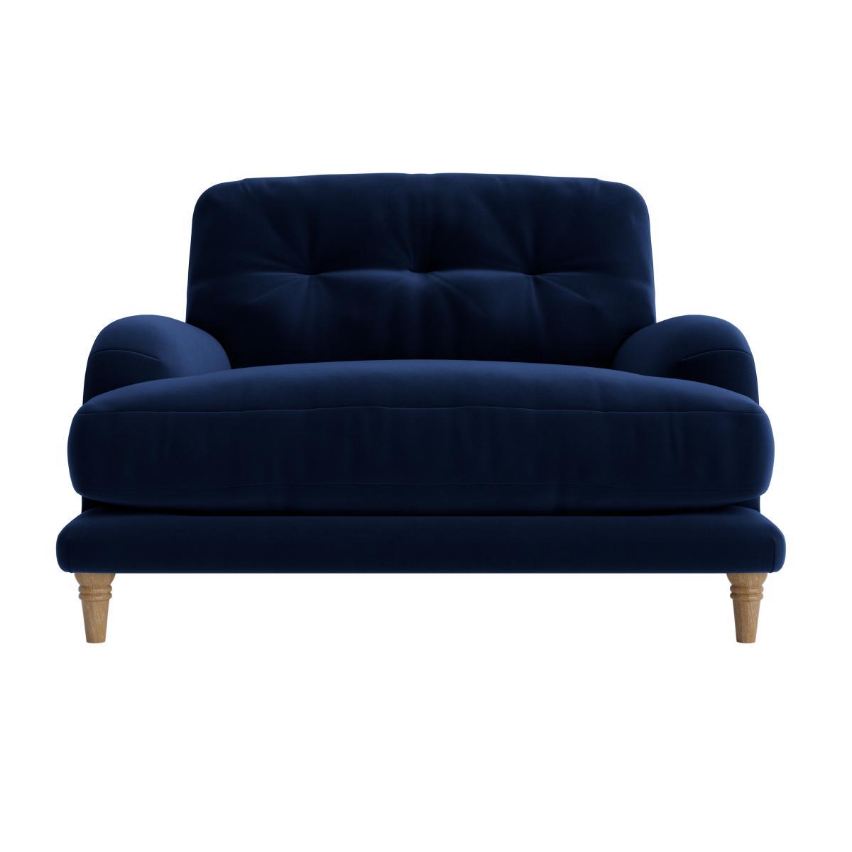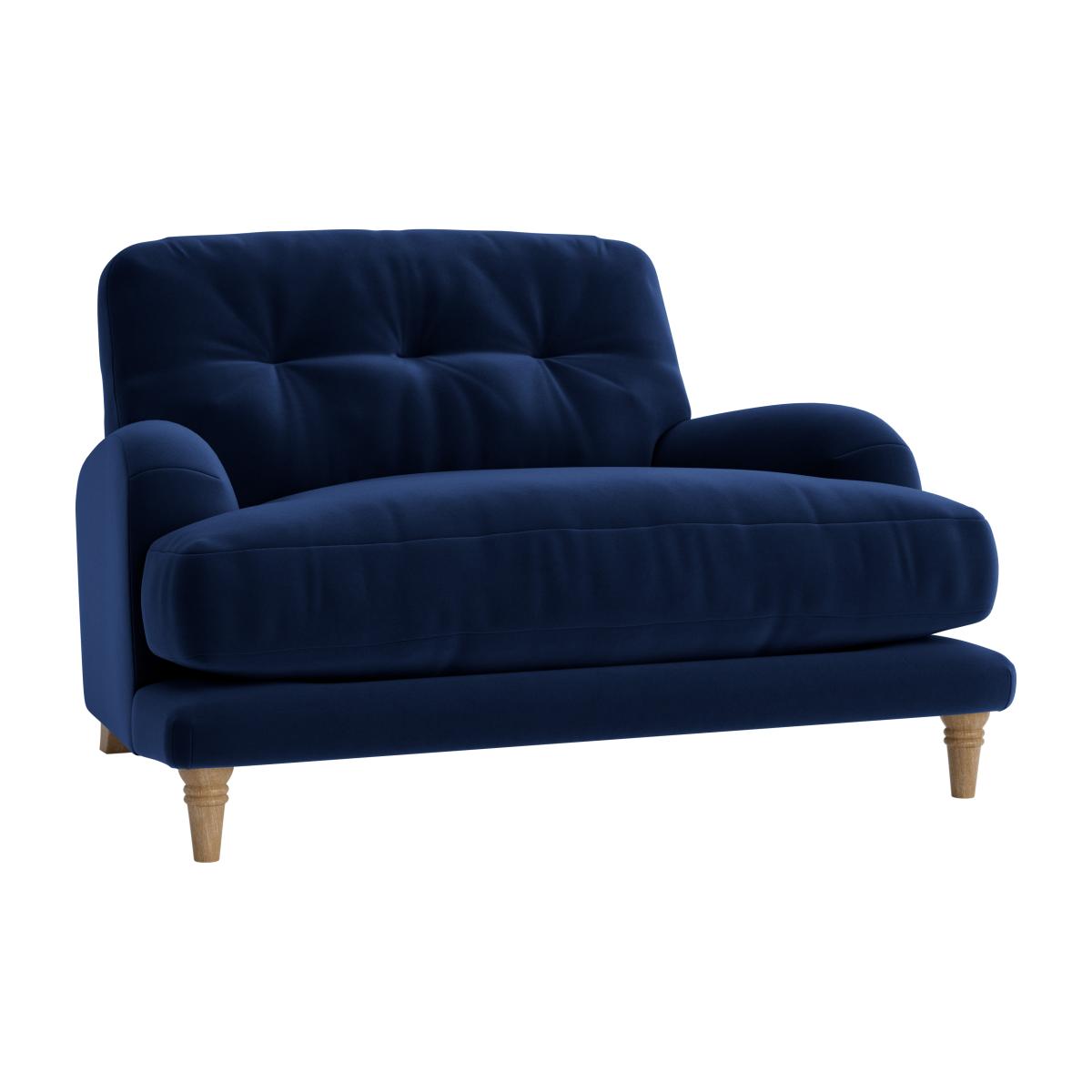 I love the snuggly charm of this love seat - it’s perfect for smaller living spaces or as a statement piece in a cosy corner. Its rich navy velvet adds a luxe touch, making it suitable for both modern and traditional interiors. To style it well, consider contrasting it with lighter cushions or throws to add colour and texture, or anchor it with a neutral rug for a balanced look. The classic wooden legs give it a slightly vintage feel, so it’s versatile enough to work in eclectic, contemporary, or retro schemes. Practical tip: since it’s a love seat, it’s ideal for pairing with a larger sofa or placing opposite a window to maximise its cosy appeal without overwhelming the room.