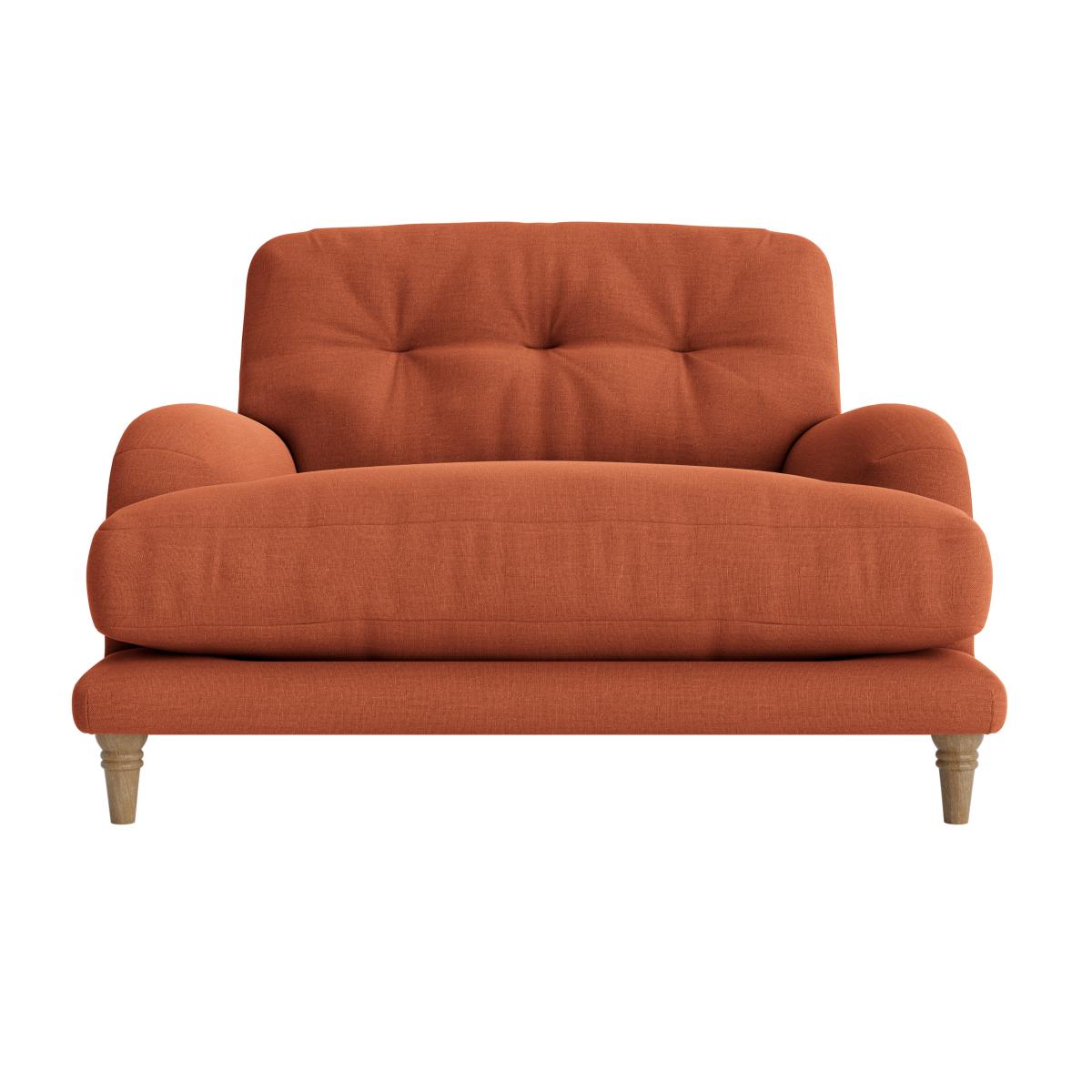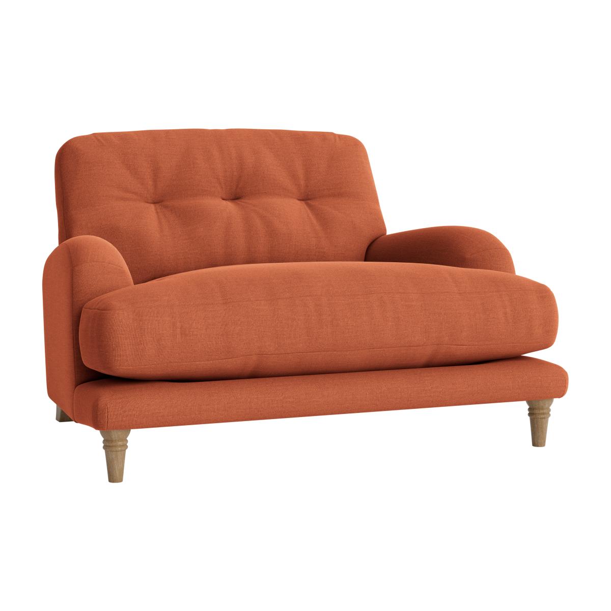 I really like the Bum Love Seat for its compact yet inviting silhouette, making it an excellent choice for smaller living spaces or cosy reading nooks. Its warm terracotta hue adds a beautiful splash of colour without overwhelming the room, so it works well in neutral, earthy, or even slightly eclectic interiors. To style it effectively, consider pairing with patterned cushions or a textured throw to add layers and visual interest. It also pairs nicely with wood or metal accents, helping to create a balanced, lived-in feel. Practical tip: due to its plush seating, it's great for relaxed zones, but pairing it with a simple, clean-lined coffee table can keep the overall look streamlined.
