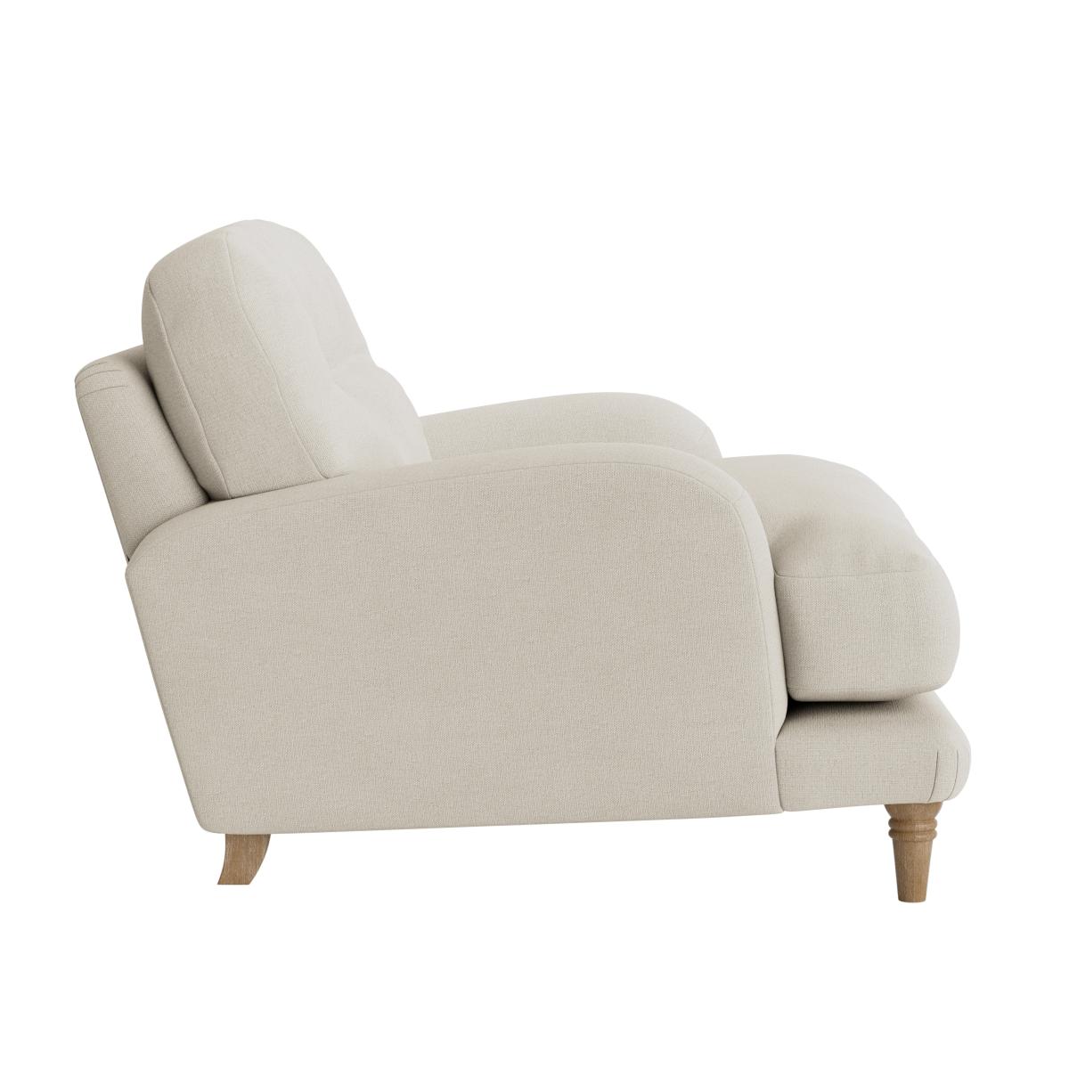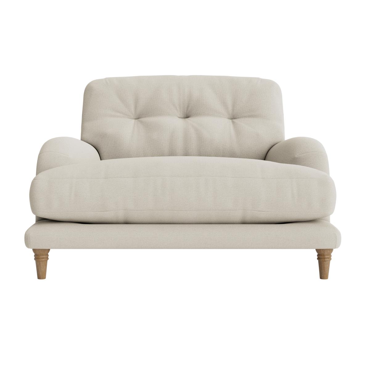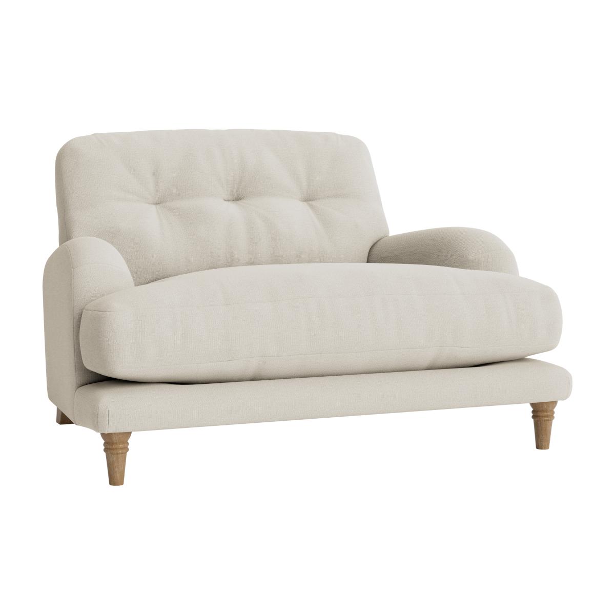 I love this little love seat for its classic yet cosy appeal, making it a versatile piece for various interiors. Its neutral colour and simple design mean it works well in both modern and traditional settings, especially when paired with textured cushions or throws for added comfort. It’s perfect for small living rooms, cosy corners, or even a relaxed bedroom seating area. Practical styling tips include layering with patterned cushions to introduce colour and pattern or placing it opposite a simple coffee table to create a welcoming social space. Its compact size also makes it easy to blend into schemes that aim for a light, airy feel or a soft, understated look.