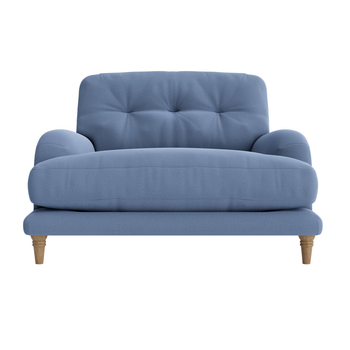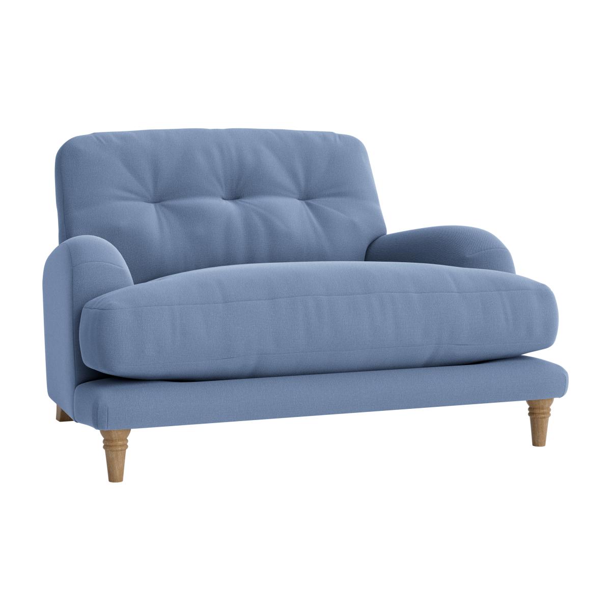 I love this little loveseat for its charming, vintage-inspired design and versatile shade of soft blue. It works particularly well in cosy, eclectic, or retro-inspired interiors, where it can serve as a statement piece or a cosy spot for reading and chilling. Practical styling tips include pairing it with neutral or textured cushions to add comfort, or mixing with patterned rugs and soft lighting for a warm, inviting feel. Its compact size makes it ideal for smaller living spaces or as an additional seating option in larger rooms. Keep the surrounding decor simple to let the colour and shape stand out, or contrast it with bold, contemporary pieces for an eclectic look.