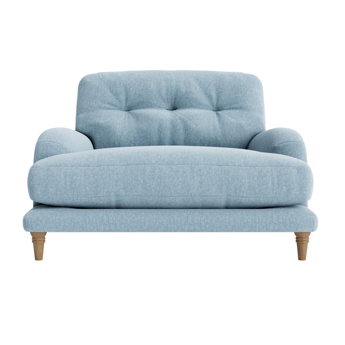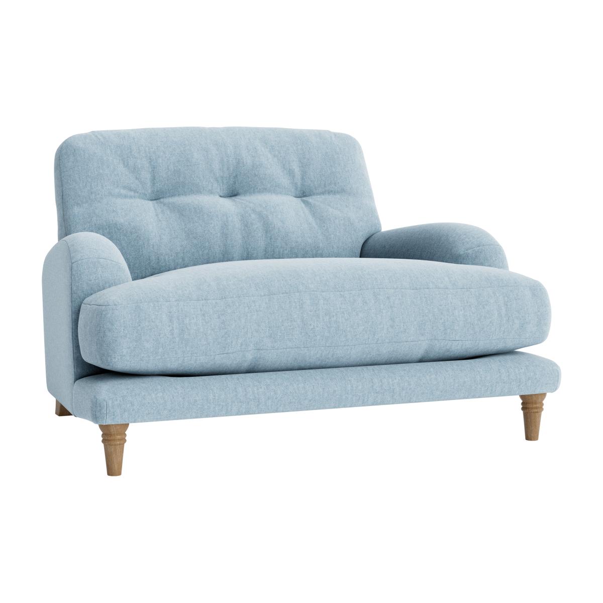 I love this little love seat for its compact yet inviting presence-it’s perfect for cosy corners or smaller living spaces. Its soft, pastel blue hue adds a gentle pop of colour that works well in Scandinavian, coastal, or modern boho interiors, especially when paired with neutral tones and textured accessories. Practical styling tips include adding layered cushions or throws to enhance comfort and visual interest, while placing it alongside a simple side table and a floor lamp can create a functional, welcoming nook. Its clean, rounded design makes it versatile, so it blends effortlessly with both contemporary and vintage-inspired decor schemes.