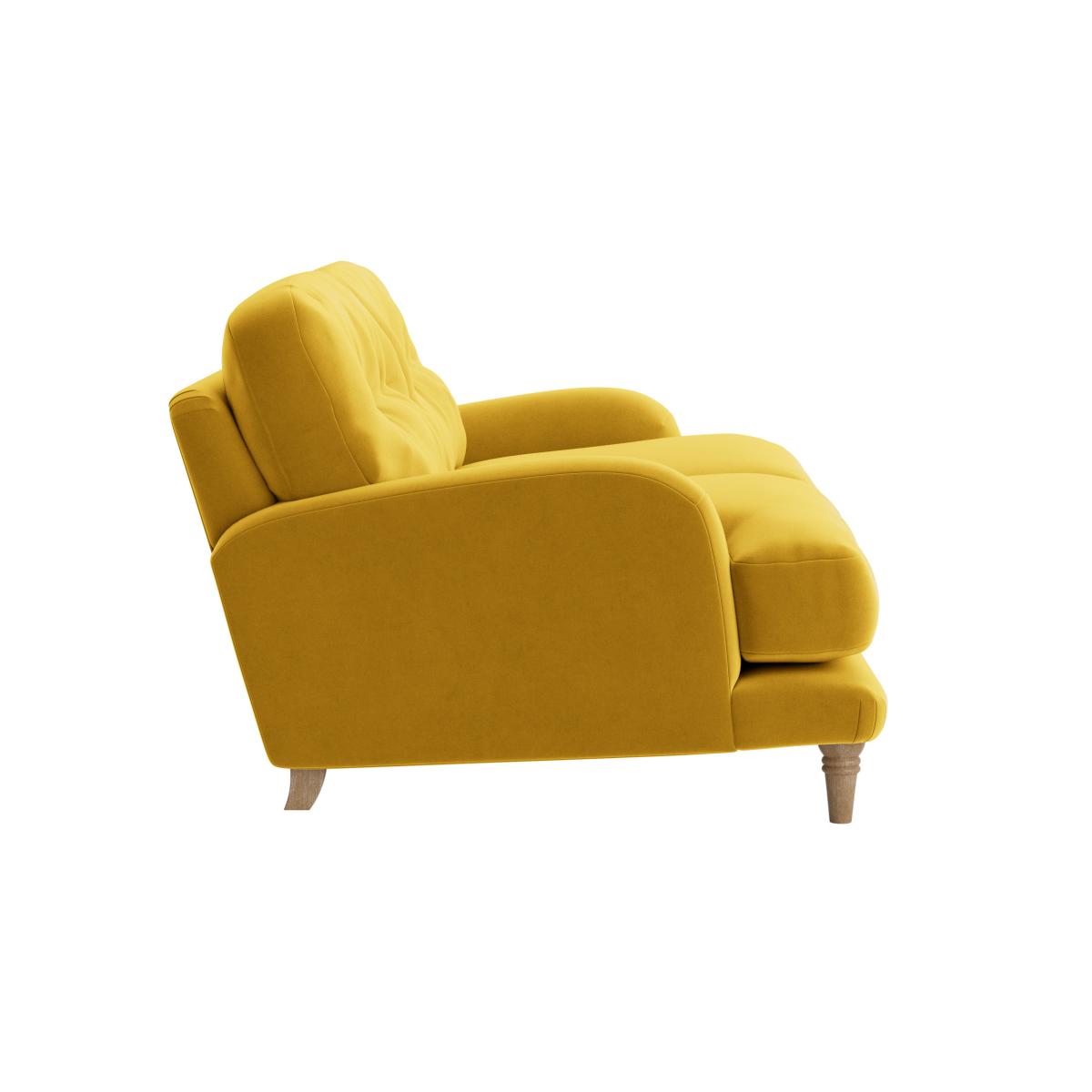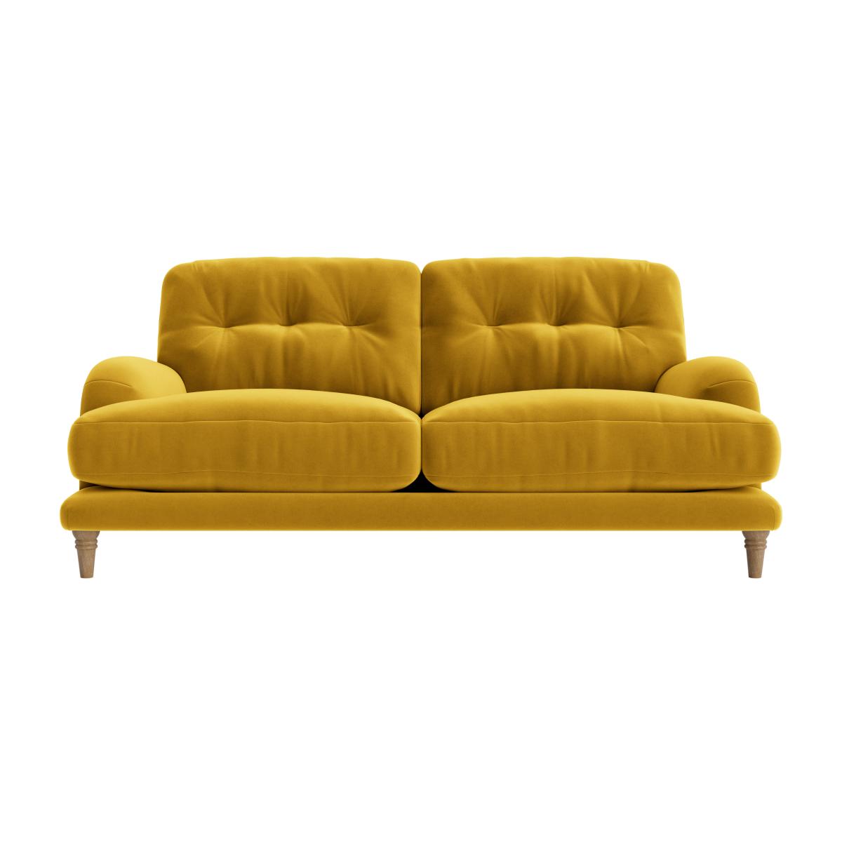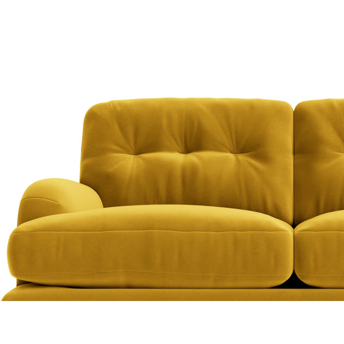I love this sofa for its bold colour and timeless design, making it a real statement piece in any living space. It works particularly well in eclectic or retro-inspired interiors, where its vibrant hue can be complemented with patterned cushions or vintage accessories. To style it practically, consider pairing with neutral-toned rugs and minimalist lighting to avoid overwhelming the room. The plush velvet lends itself to cosy layering with textured throws and cushions, creating an inviting feel. Its versatile shape makes it ideal for both smaller apartments and larger open-plan living areas, where it can sit comfortably as a focal point.